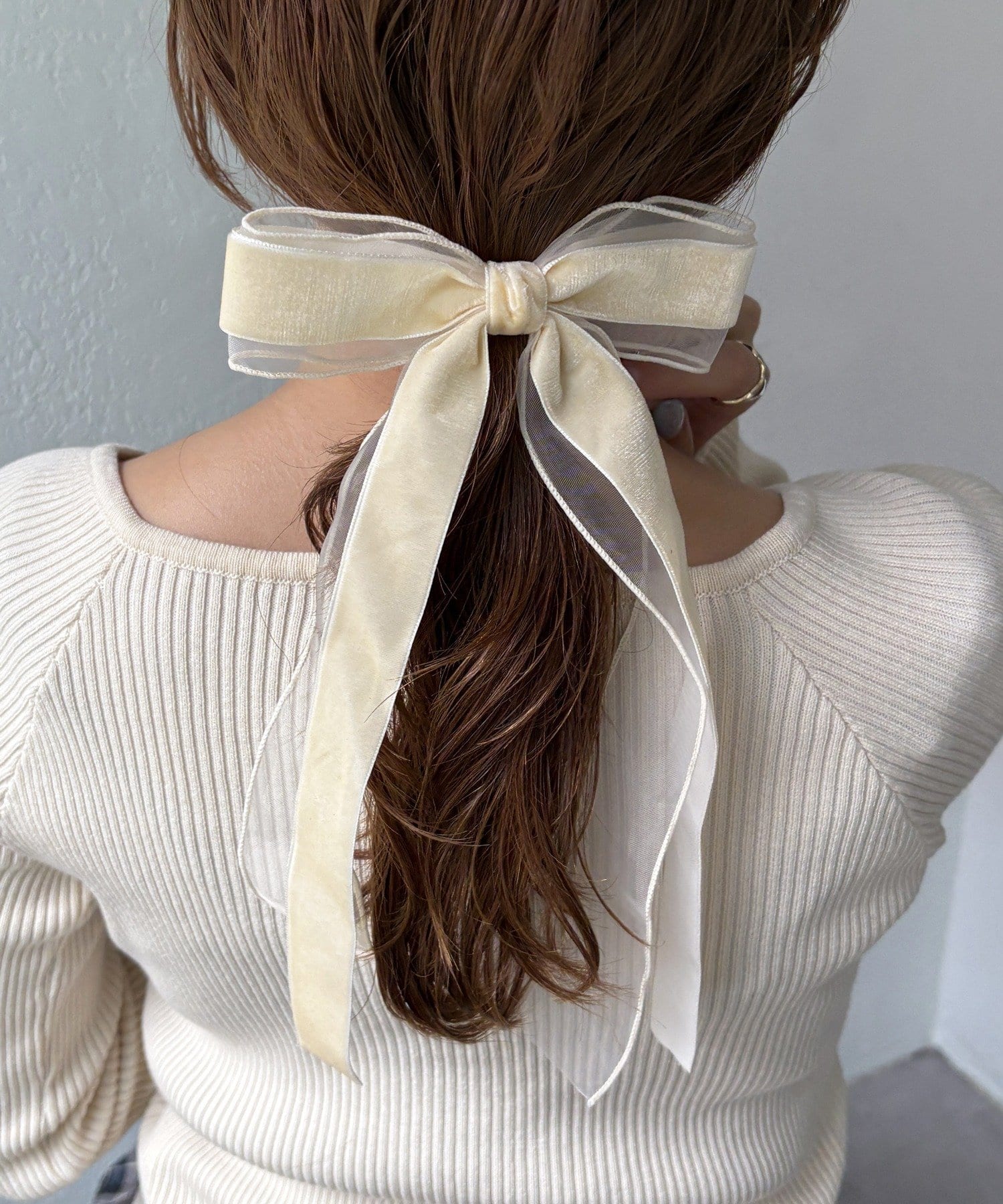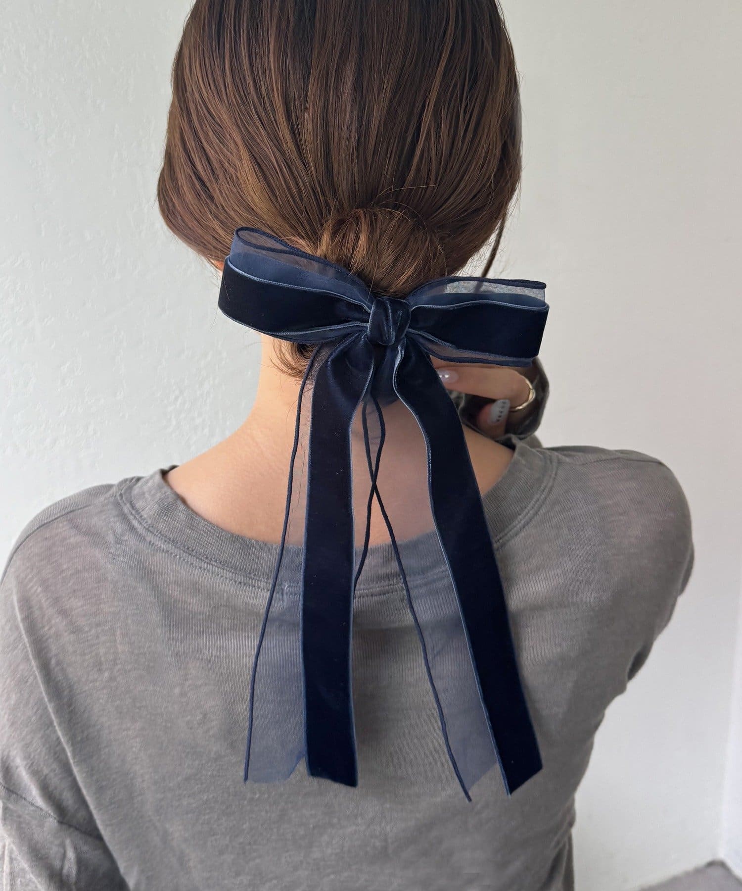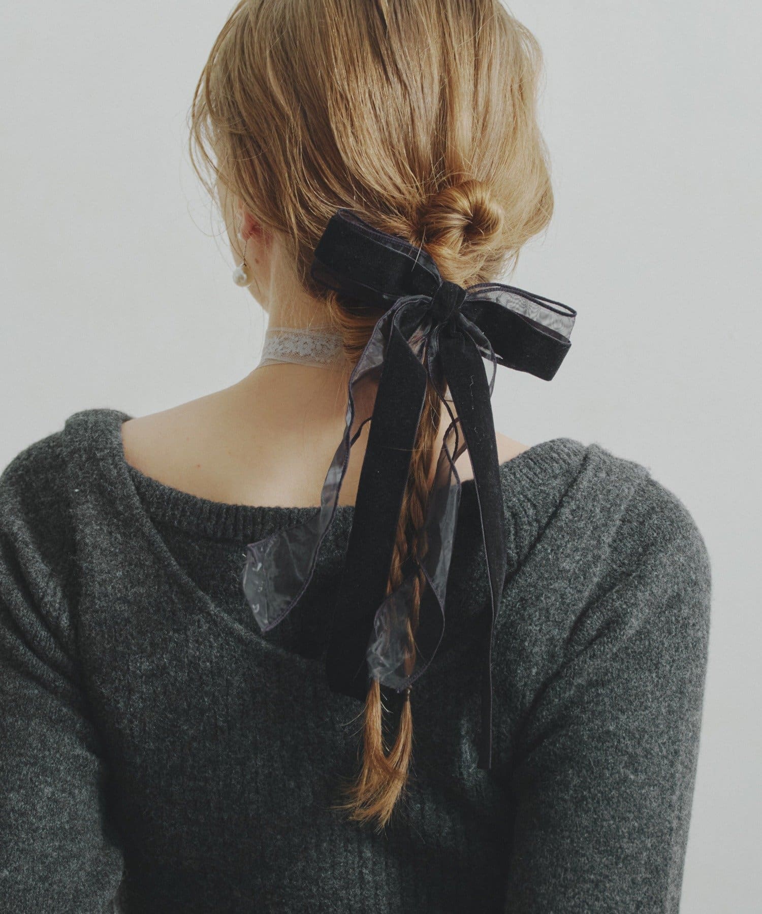 ベロアとシアーがミックスされたおしゃれなリボンバレッタ