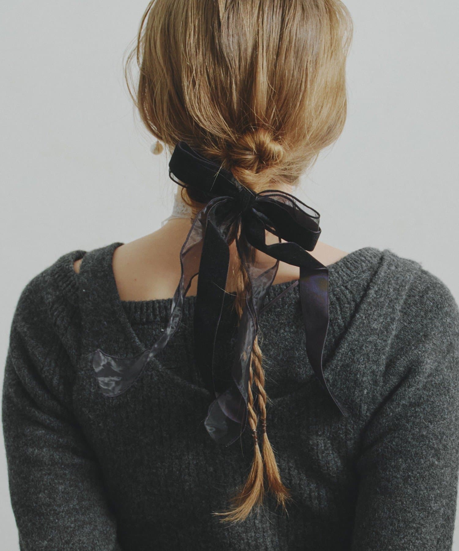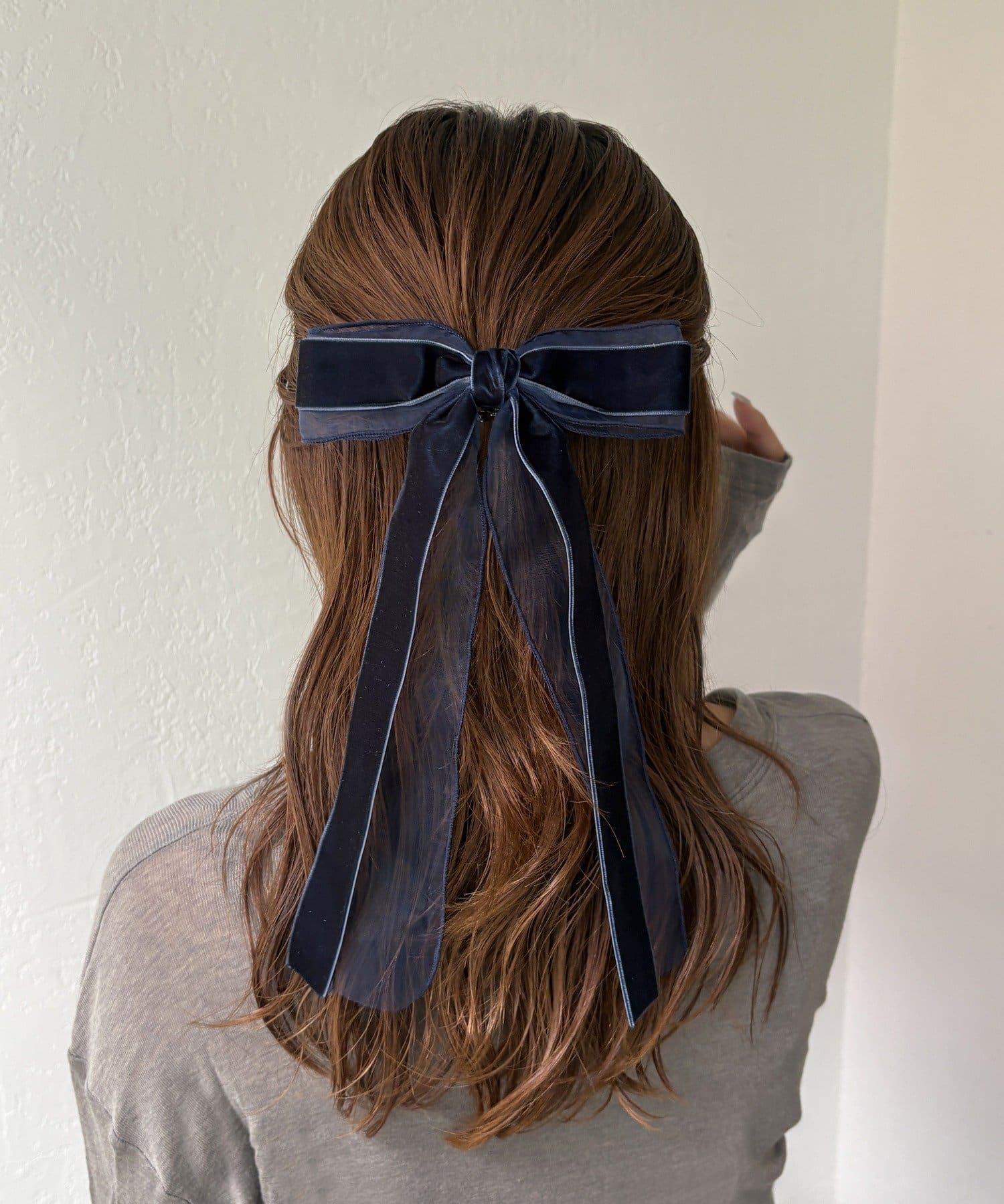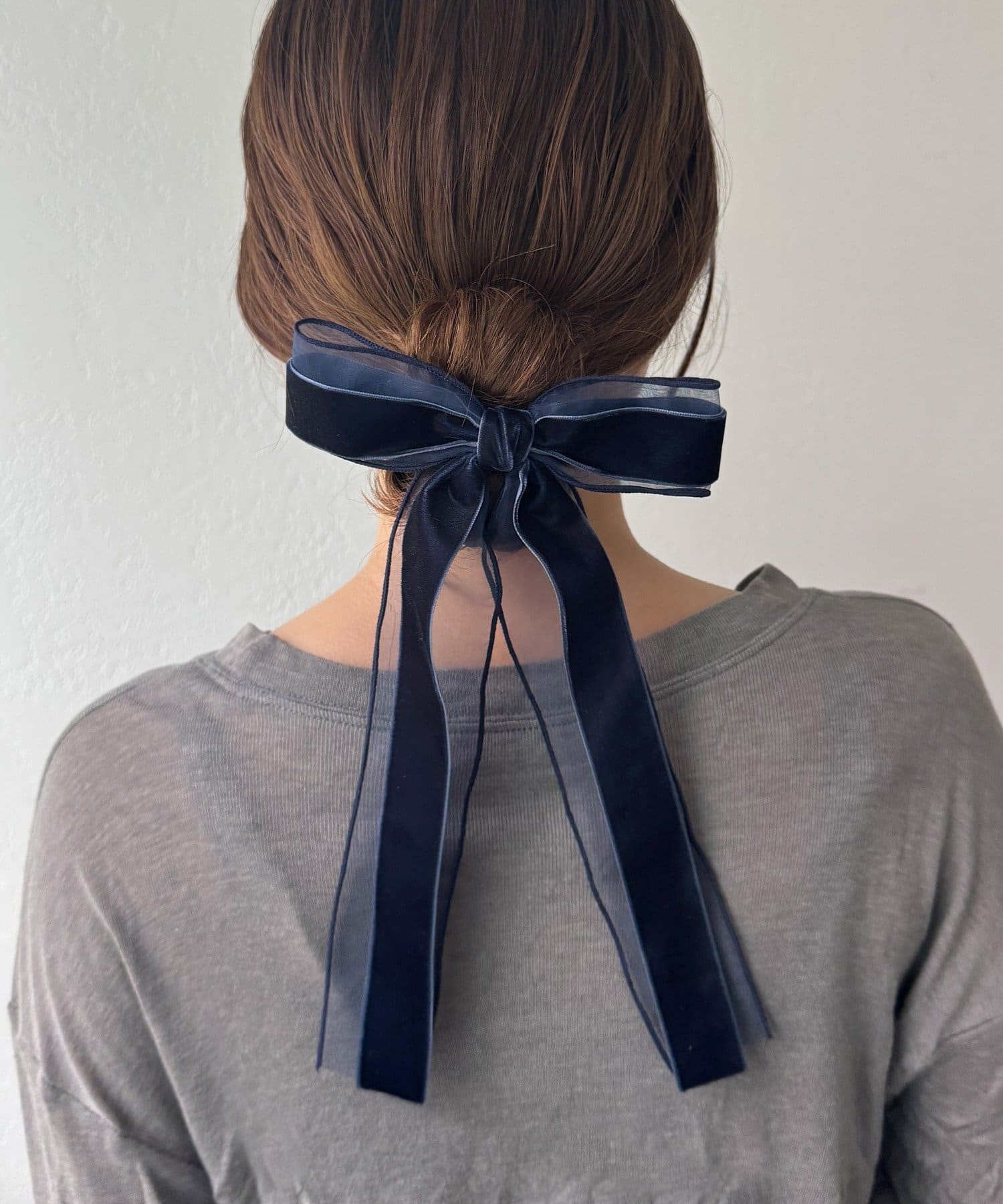 ベロアとシアーがミックスされたおしゃれなリボンバレッタ
