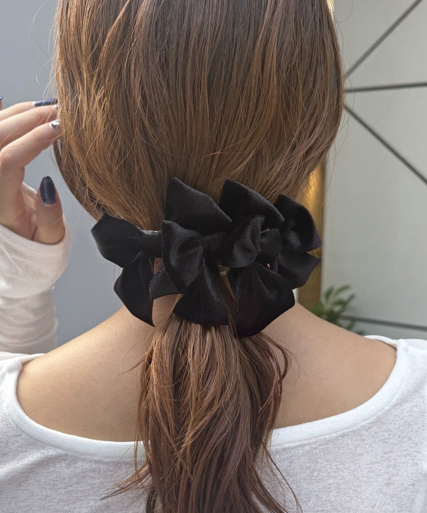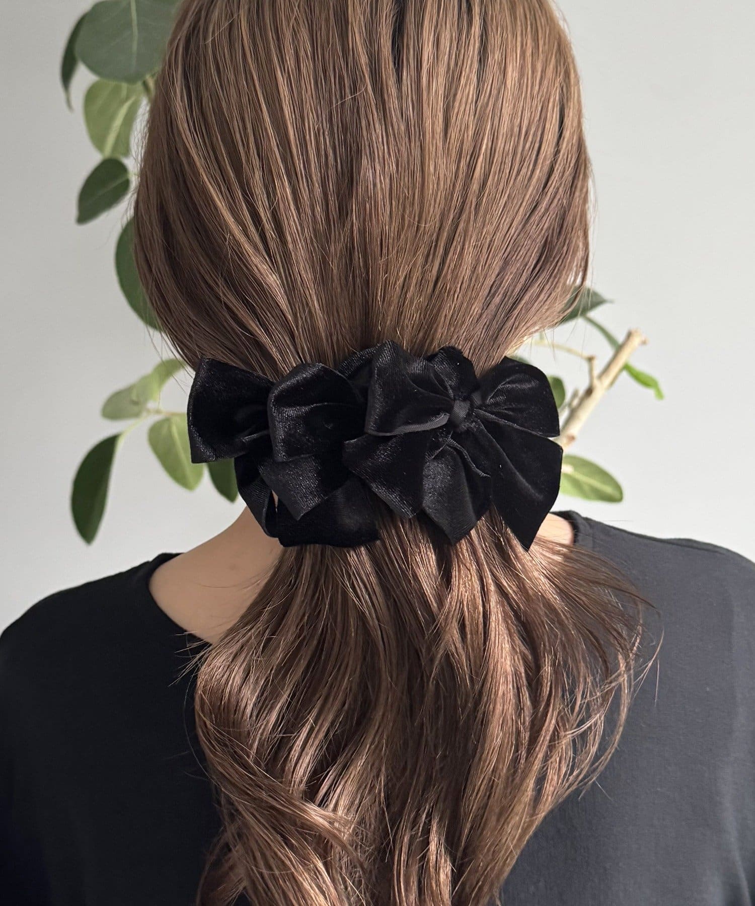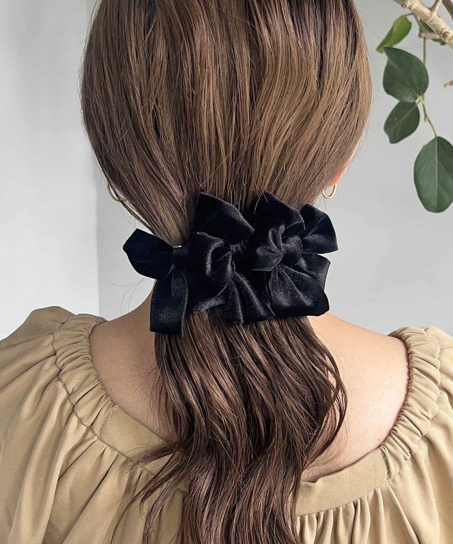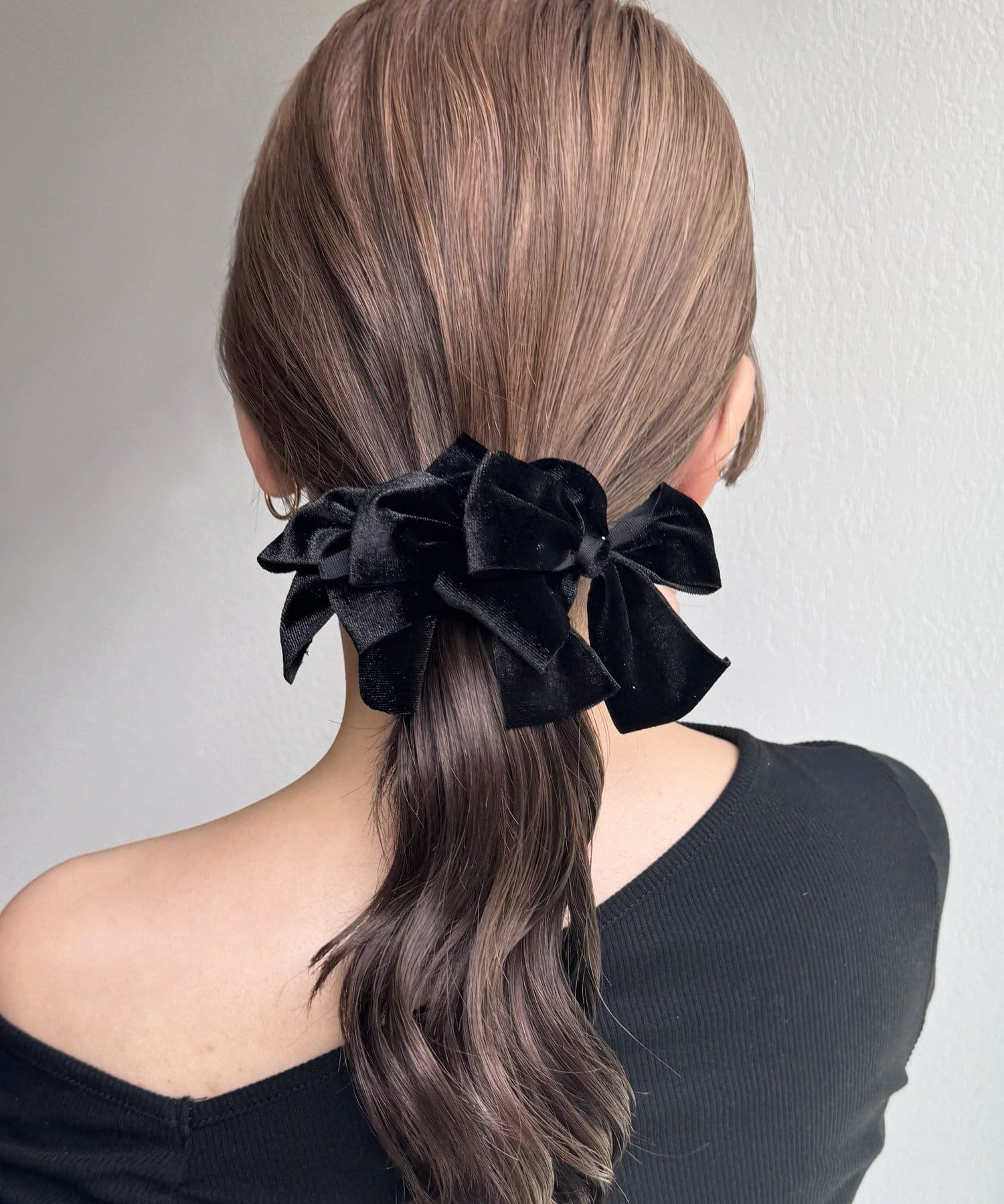 どんな髪色や服装にも合わせやすいベロアリボンバレッタ