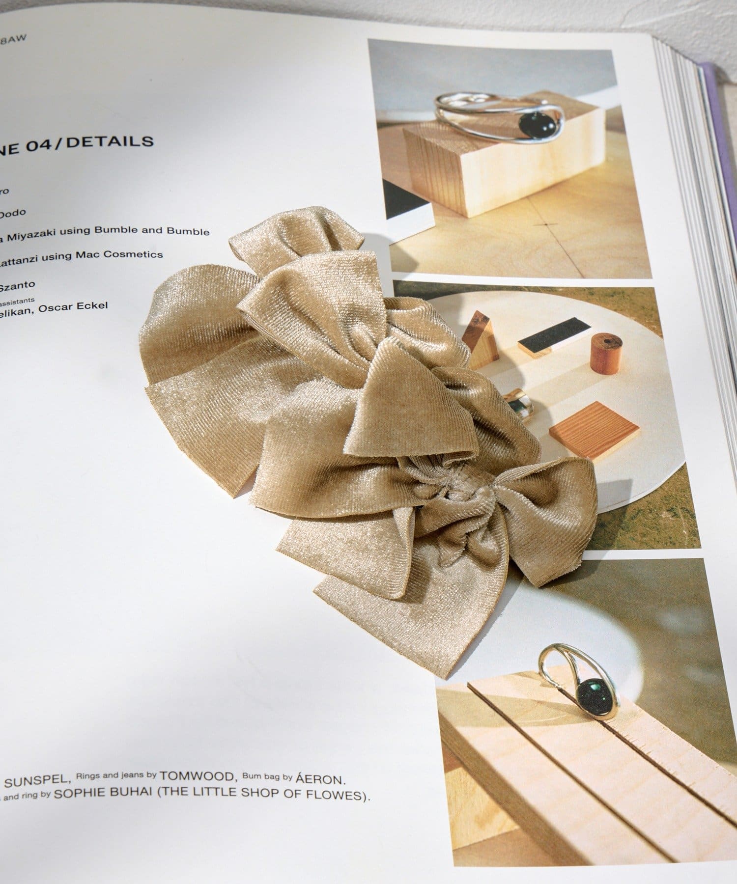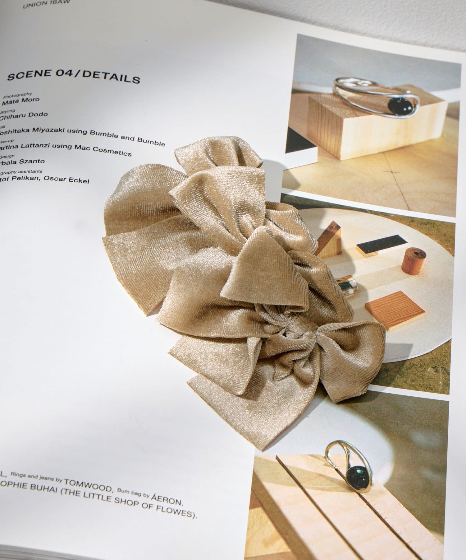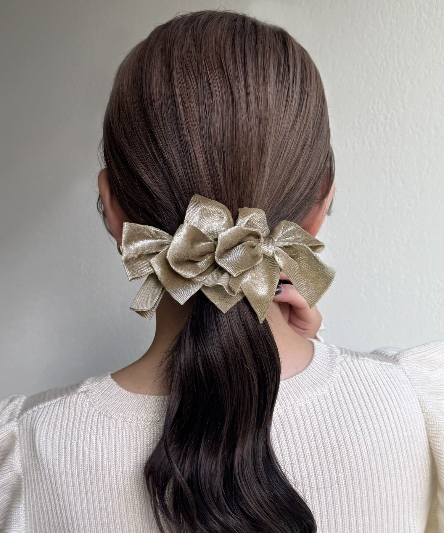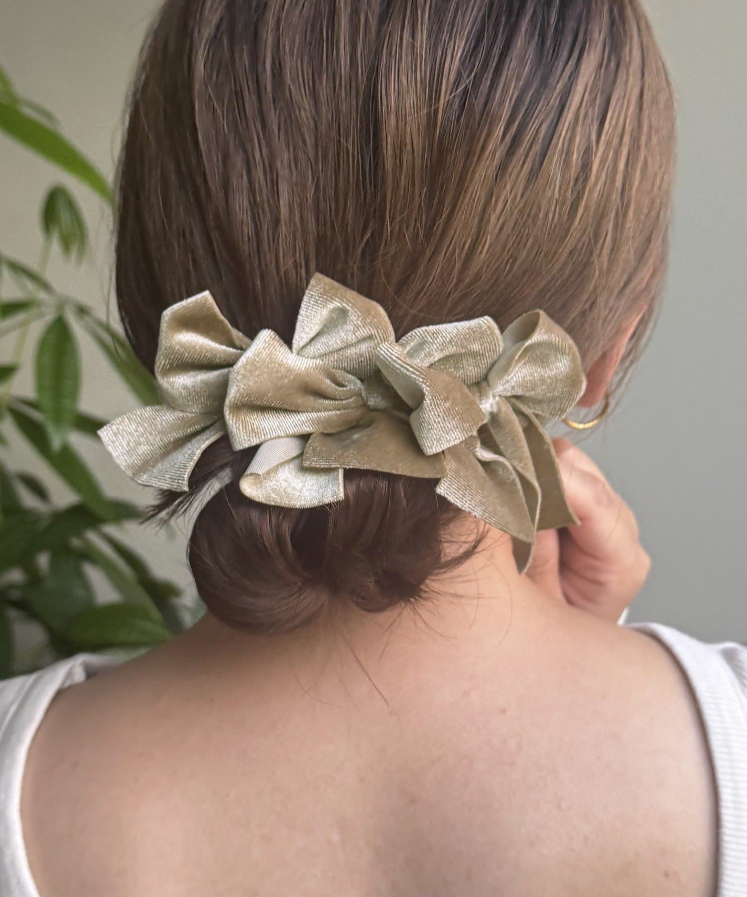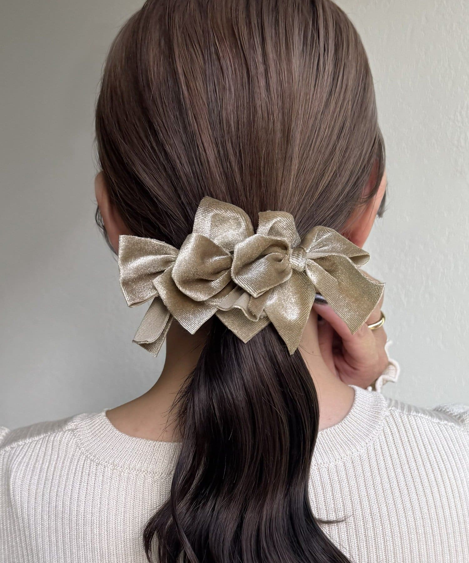 どんな髪色や服装にも合わせやすいベロアリボンバレッタ
