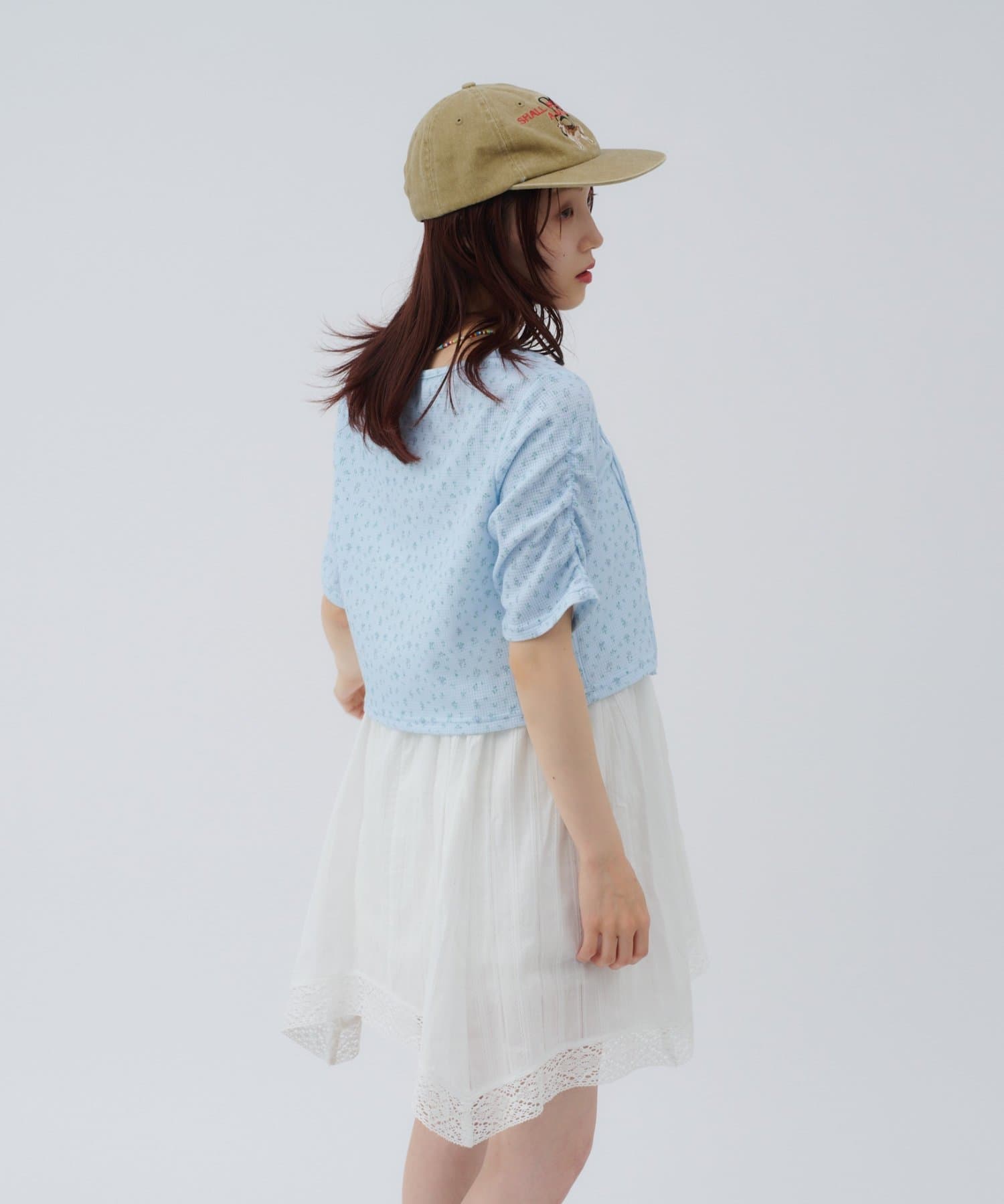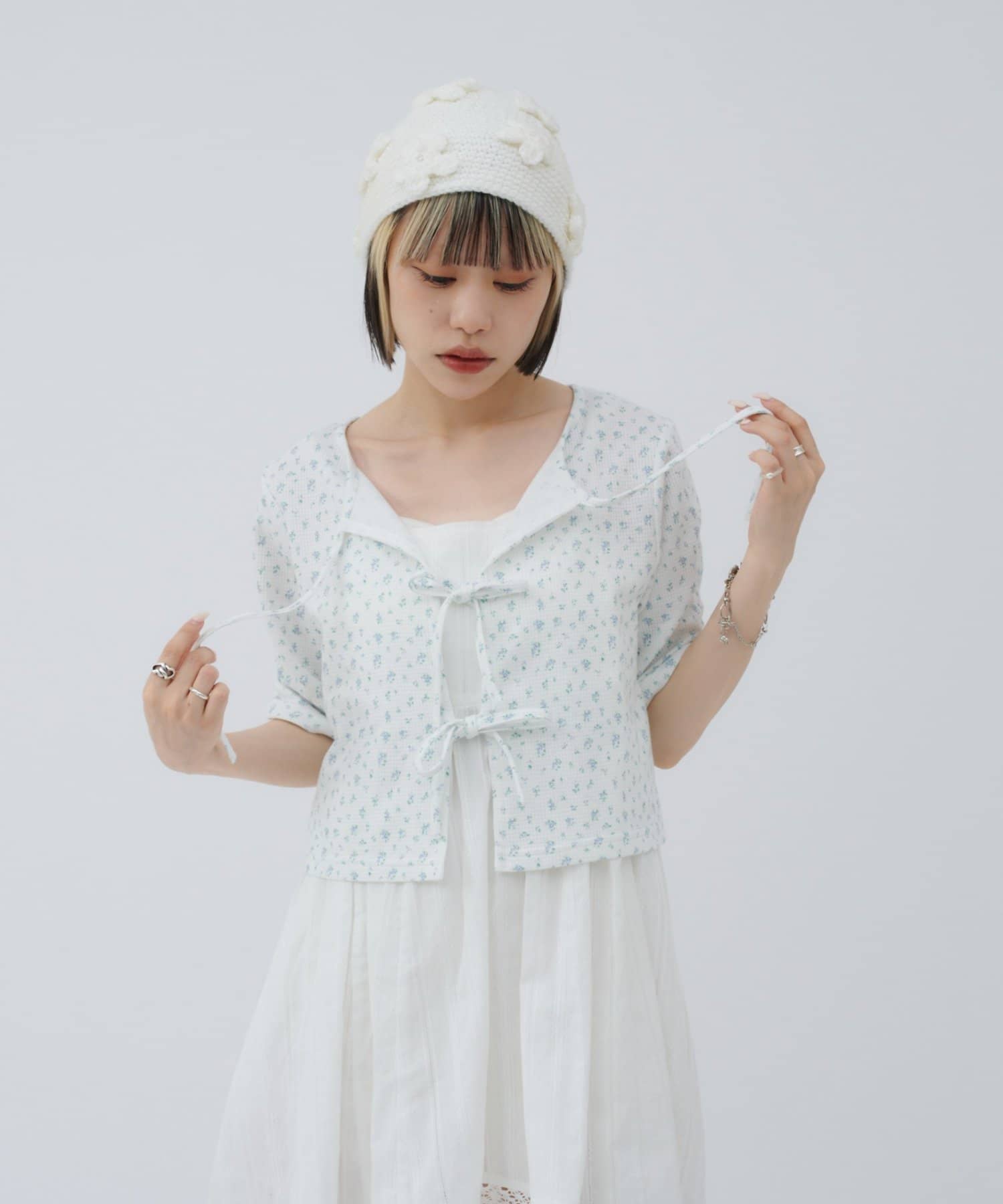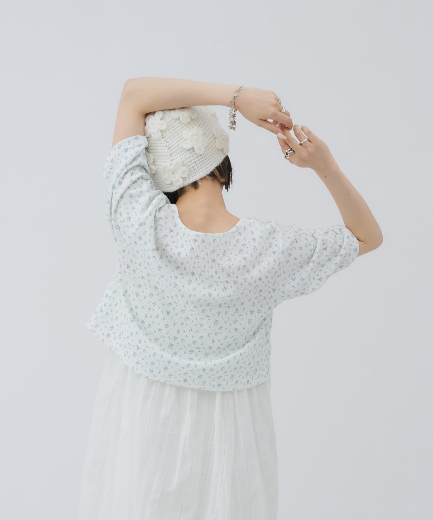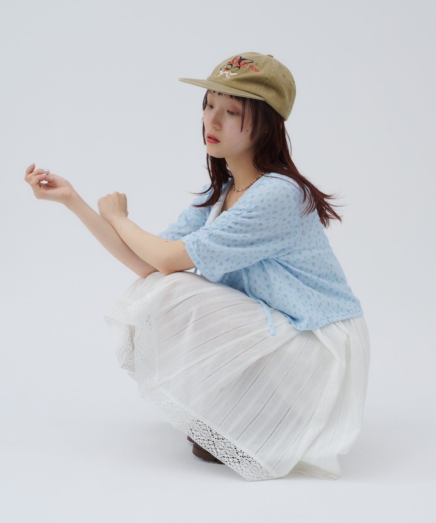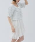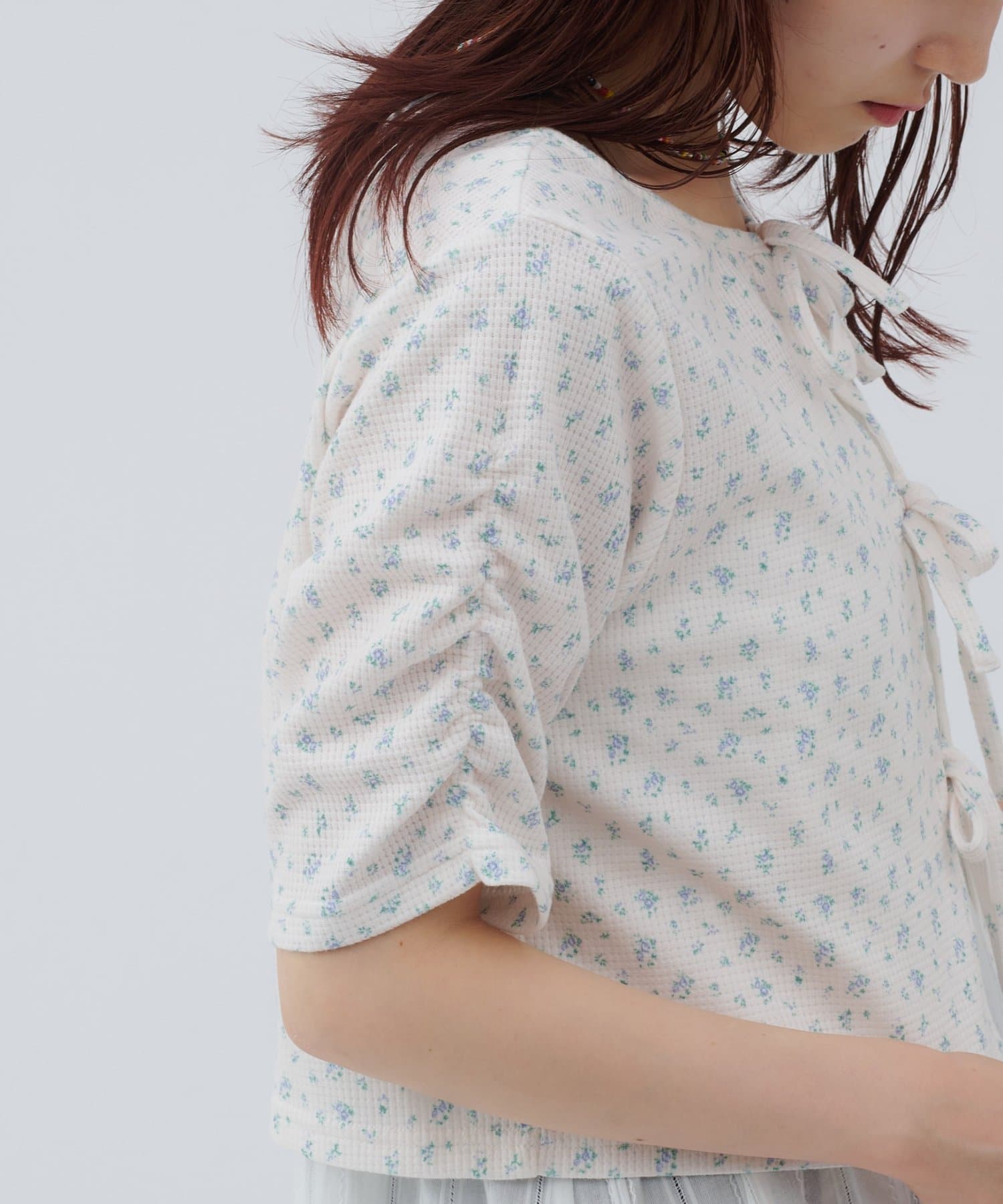 ・肌触りのいいワッフル生地のカーディガンは肩のギャザーがアクセント♡