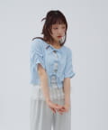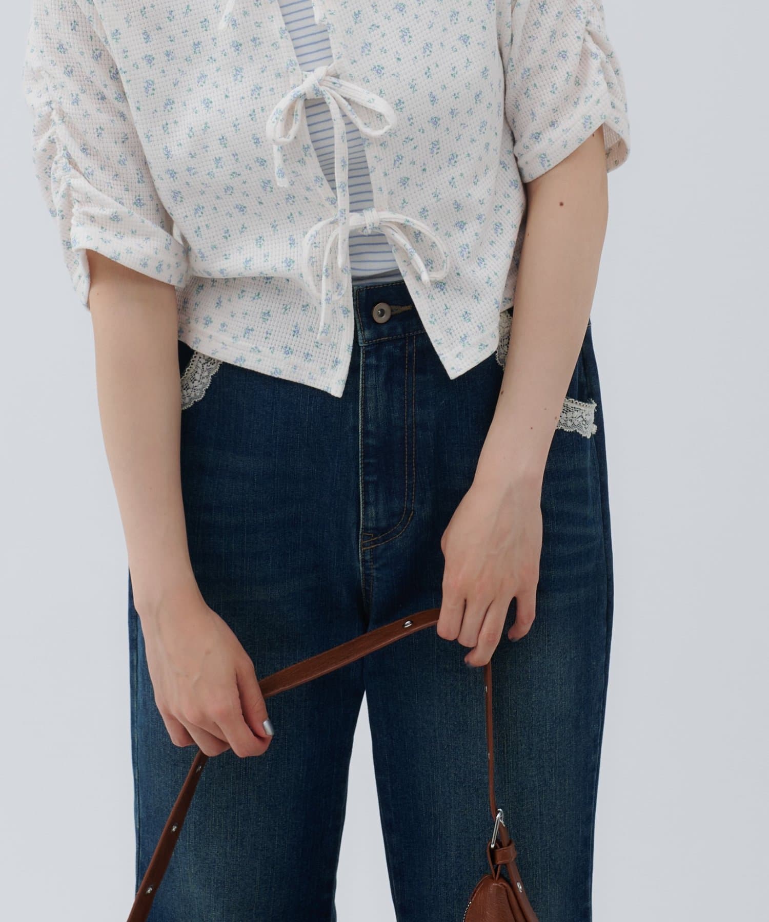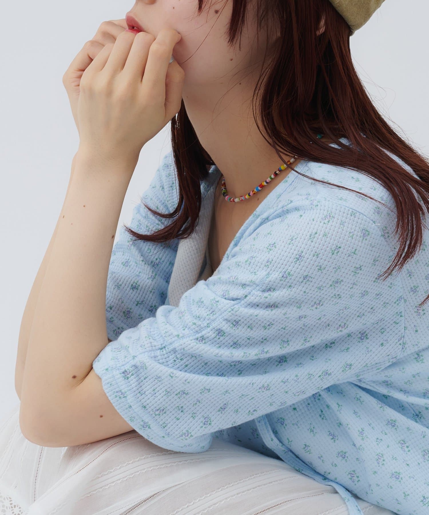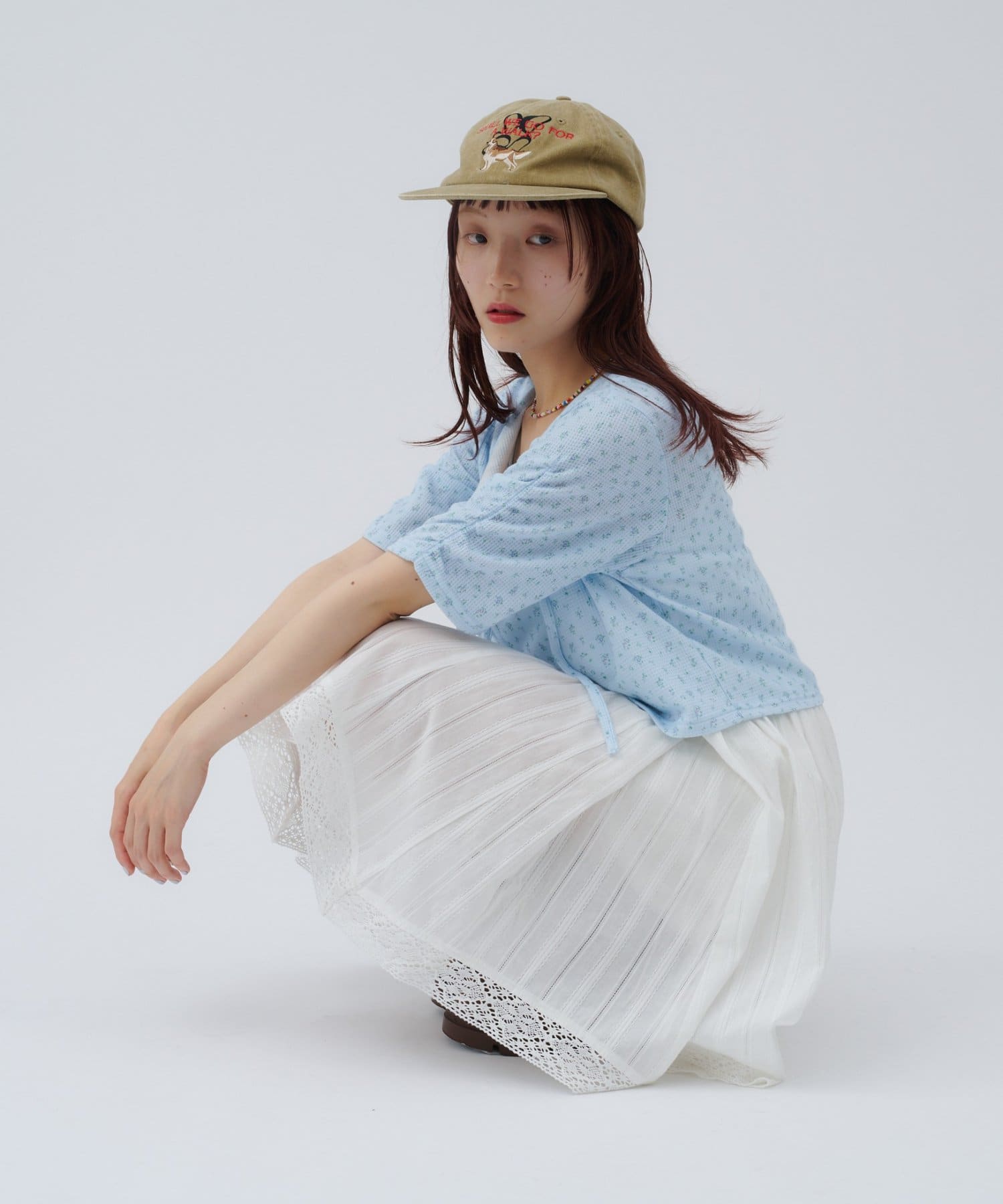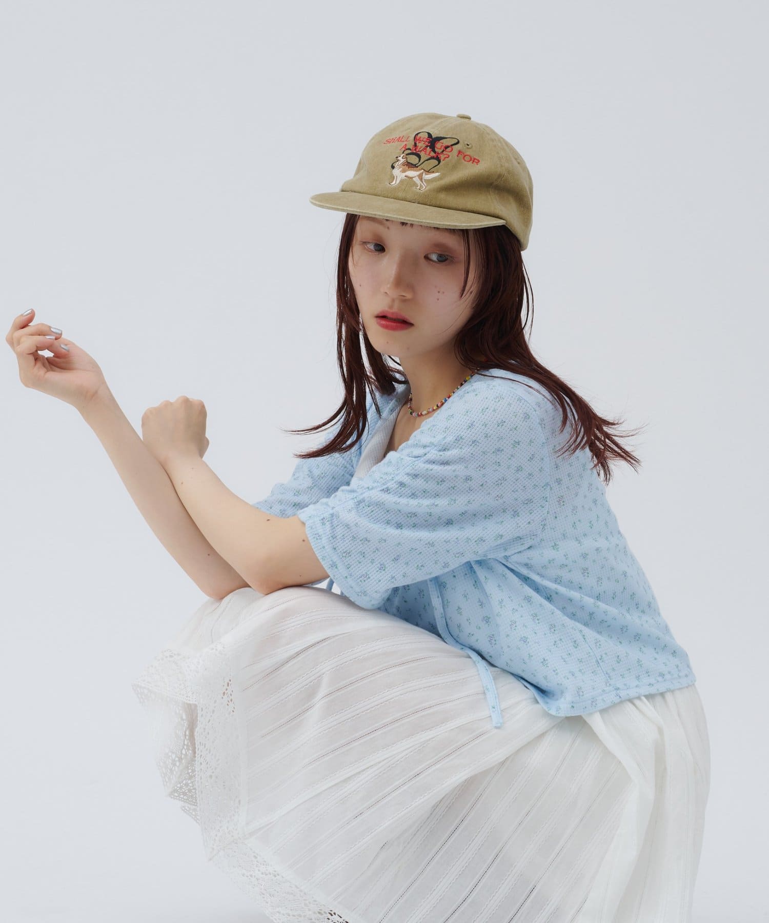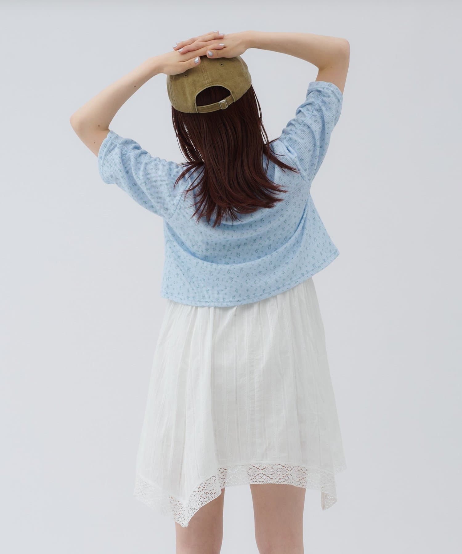 ・肌触りのいいワッフル生地のカーディガンは肩のギャザーがアクセント♡