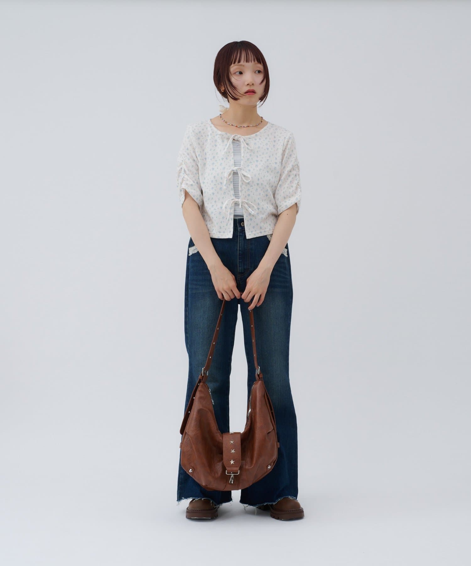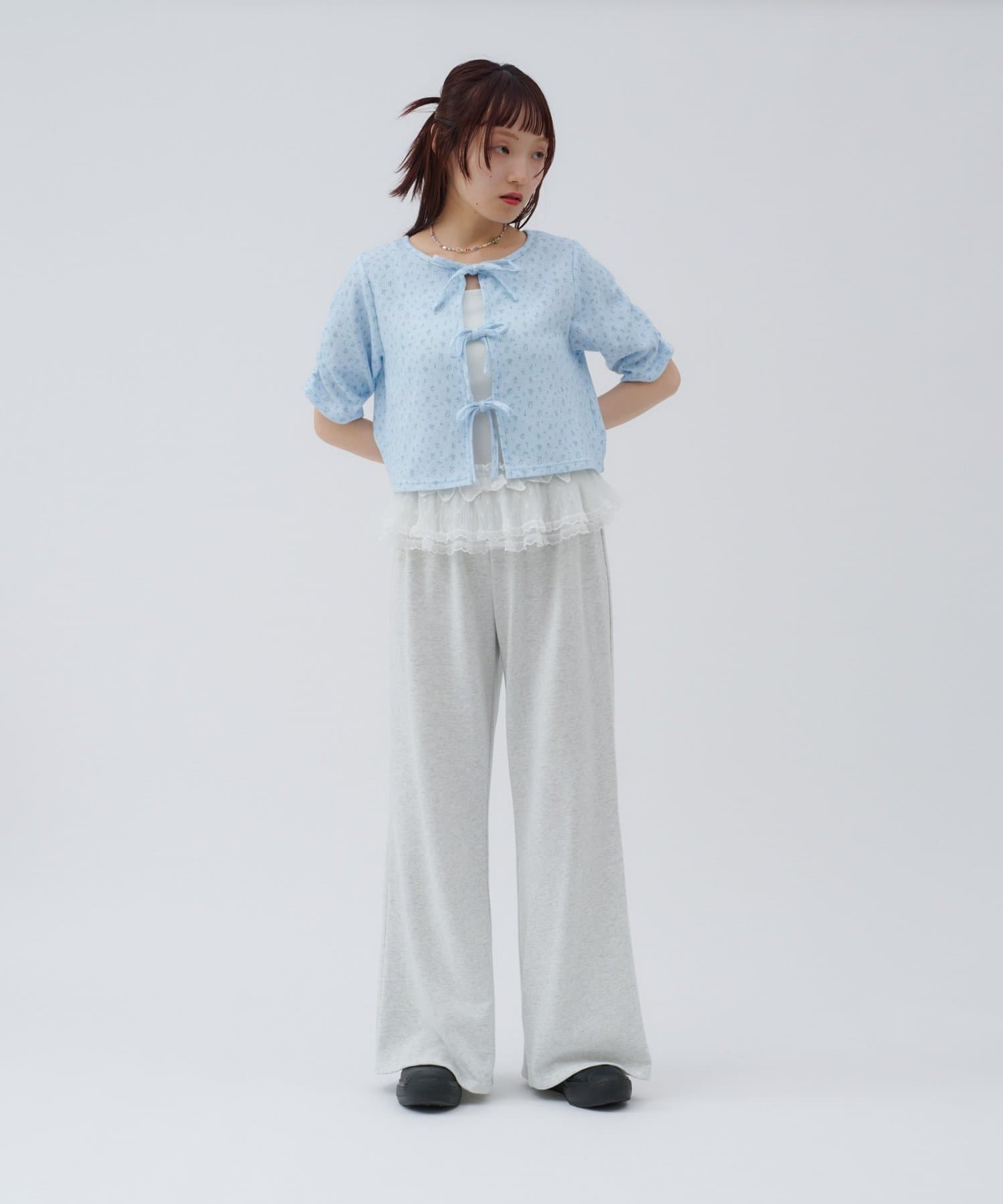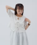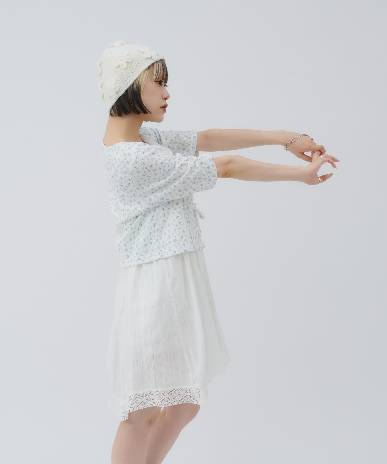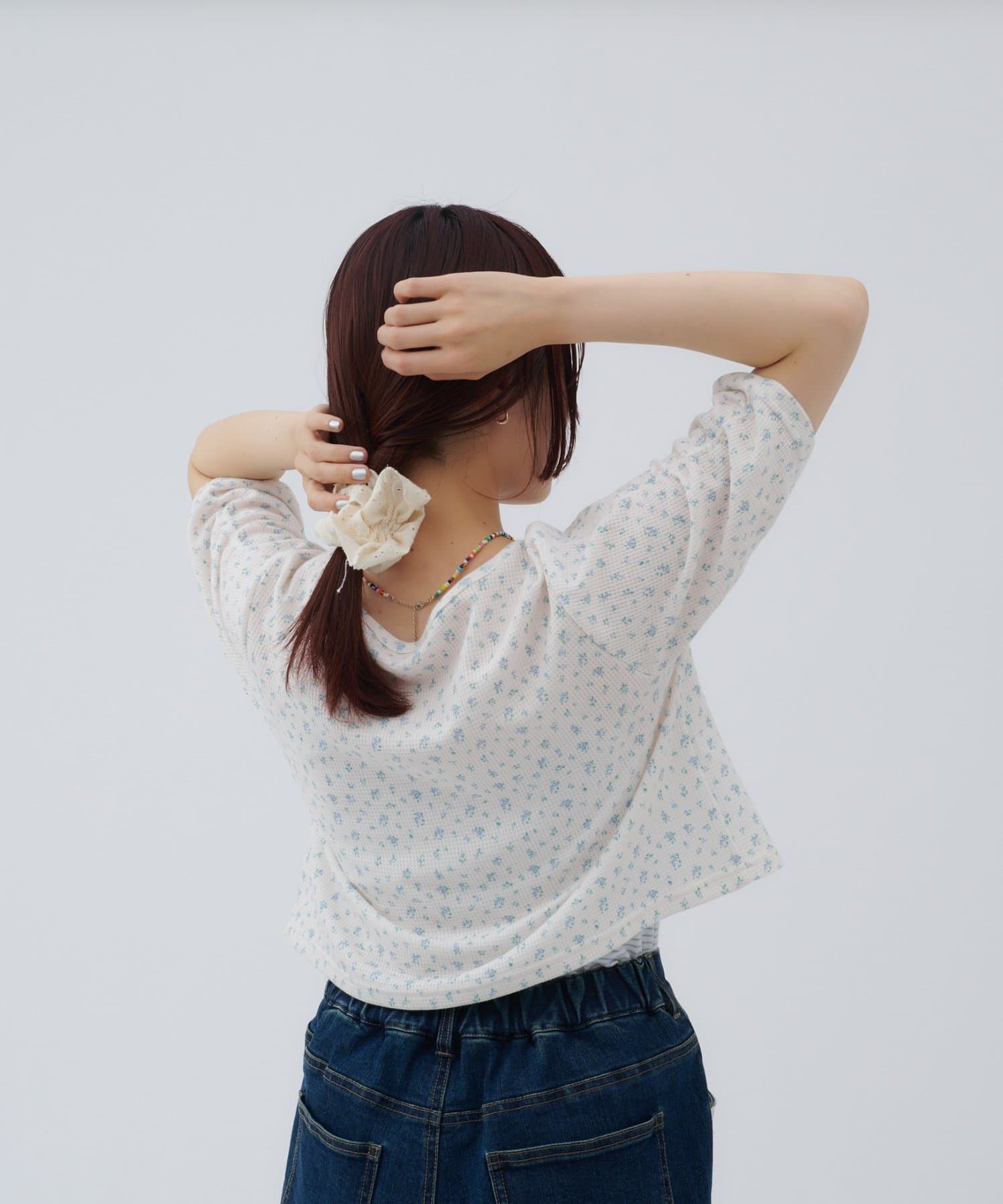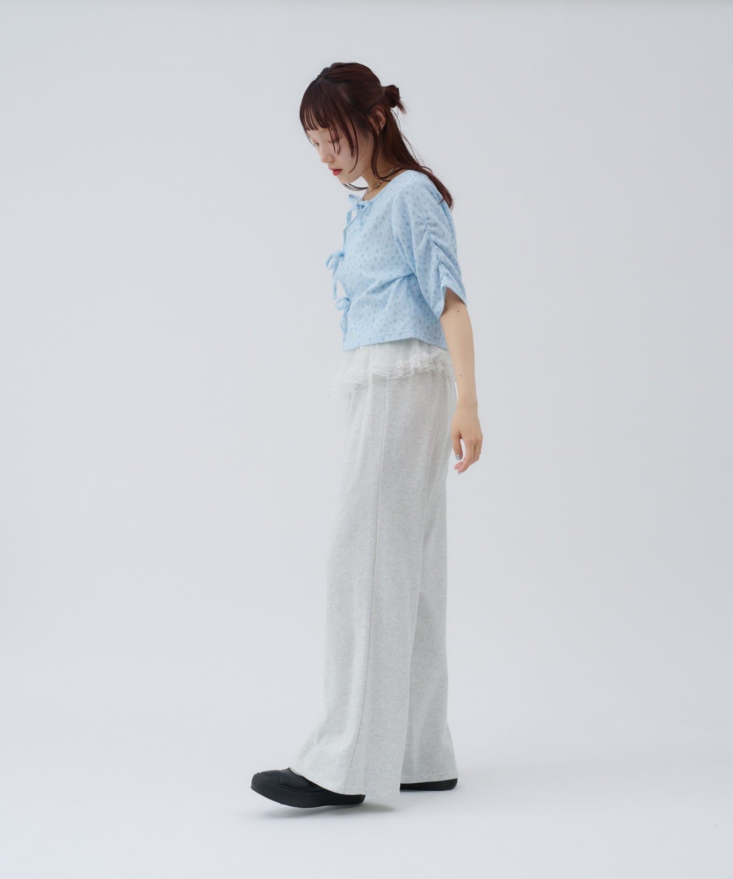 ・肌触りのいいワッフル生地のカーディガンは肩のギャザーがアクセント♡