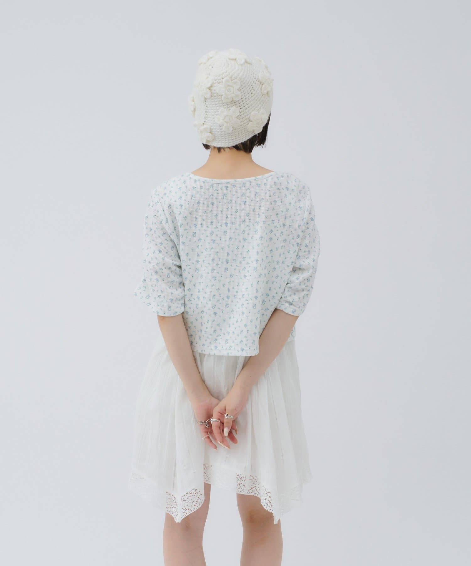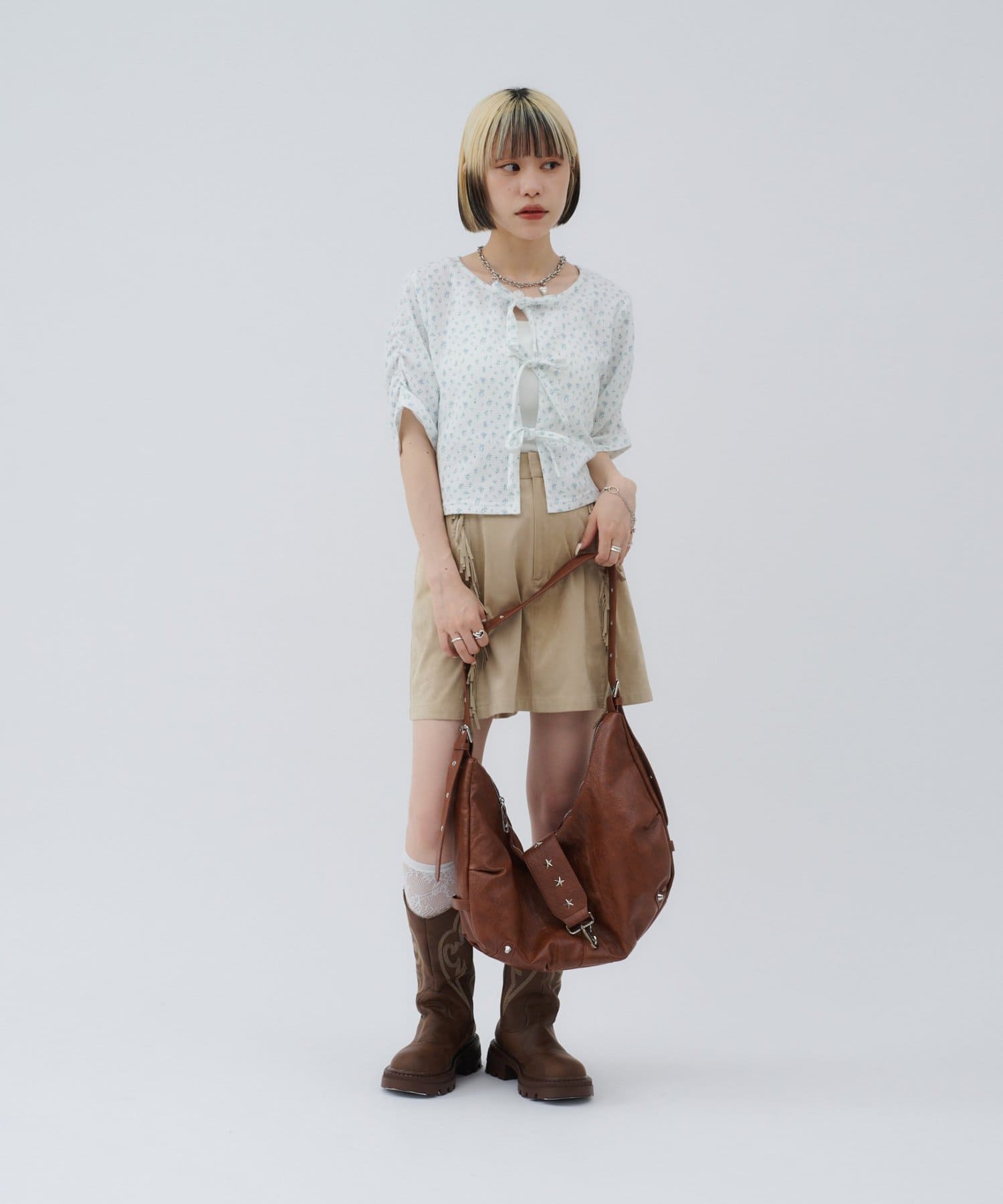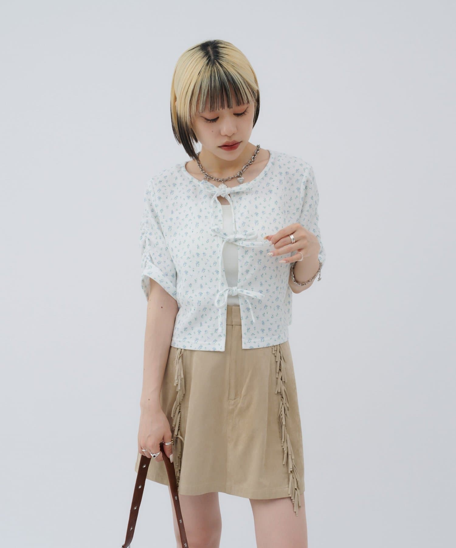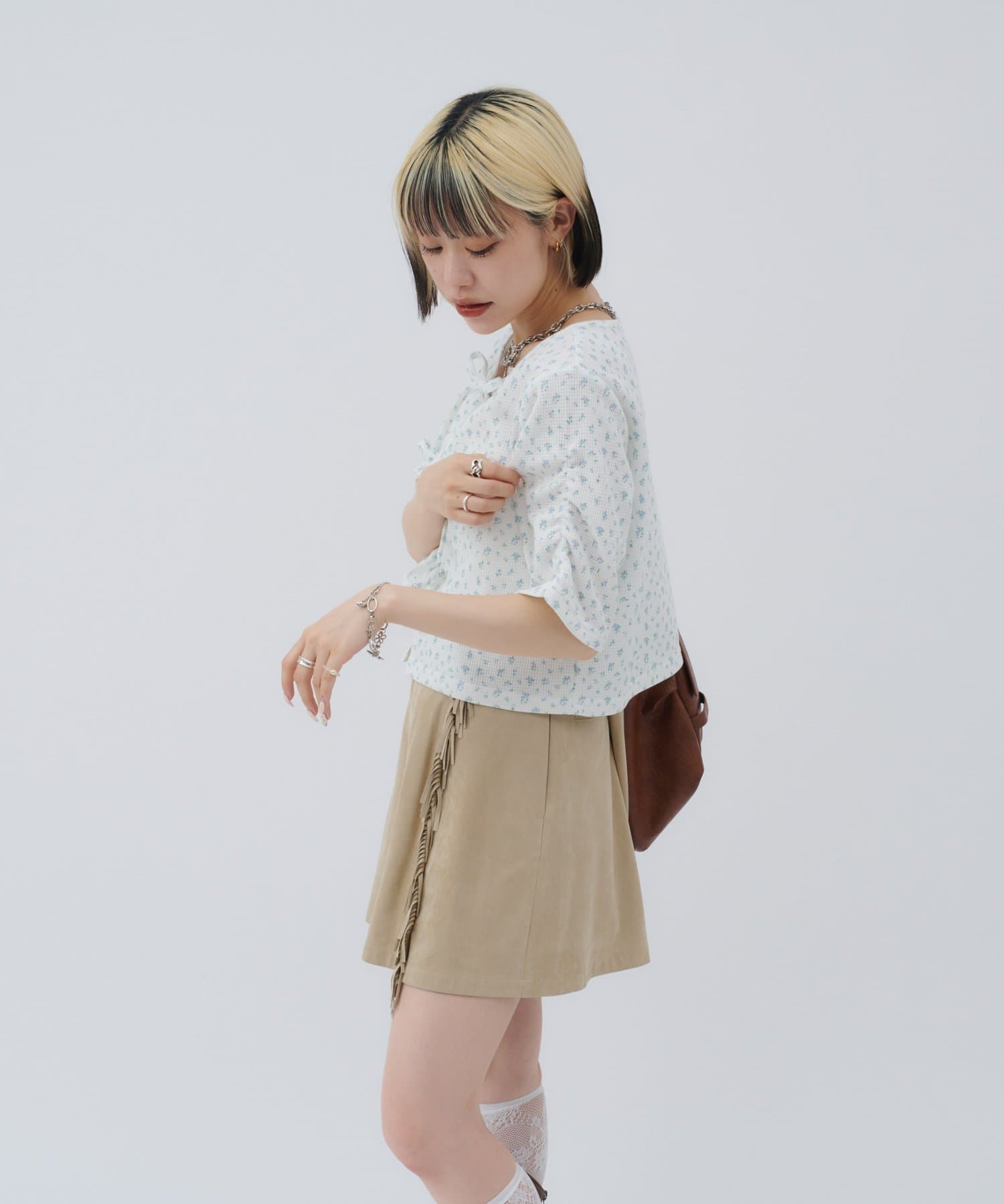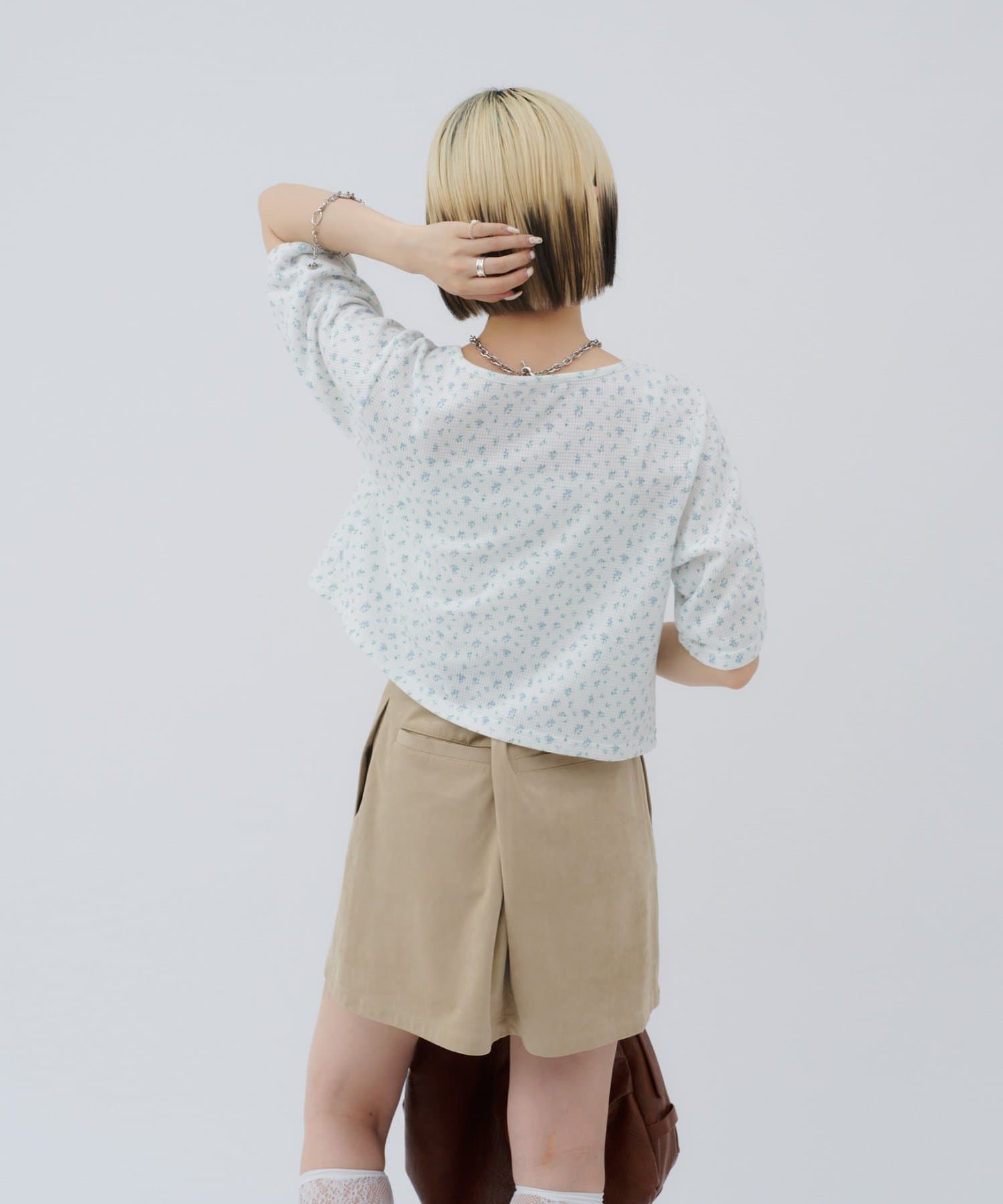・肌触りのいいワッフル生地のカーディガンは肩のギャザーがアクセント♡