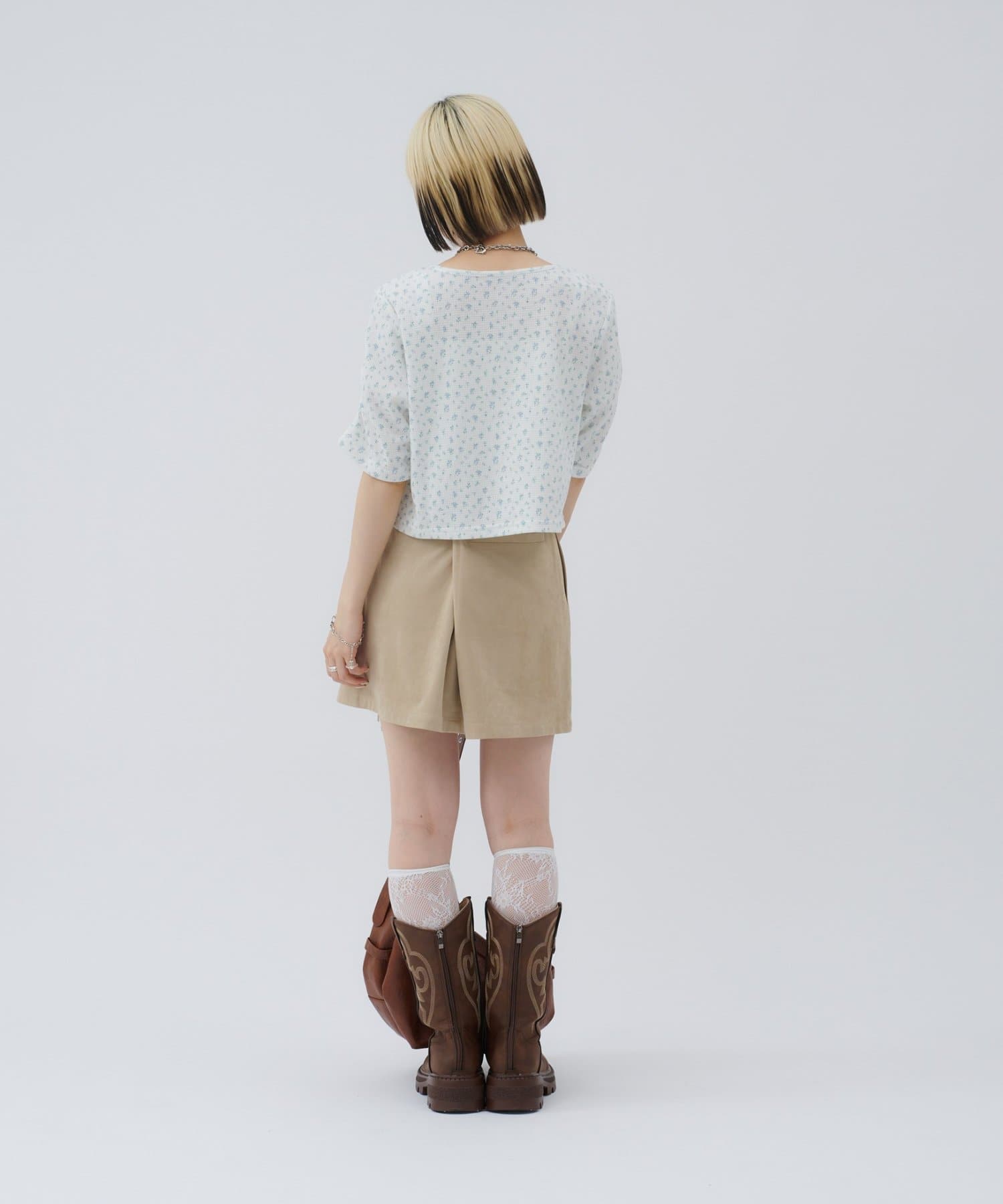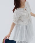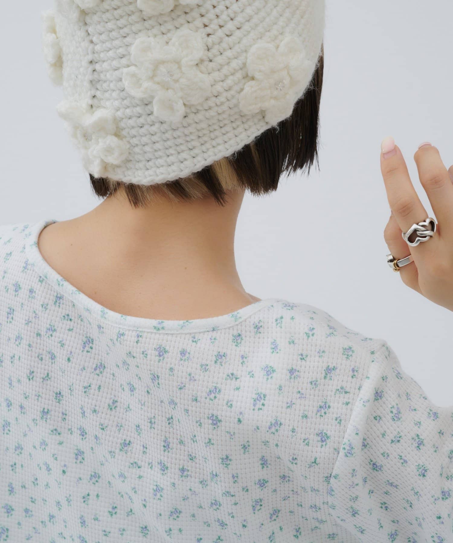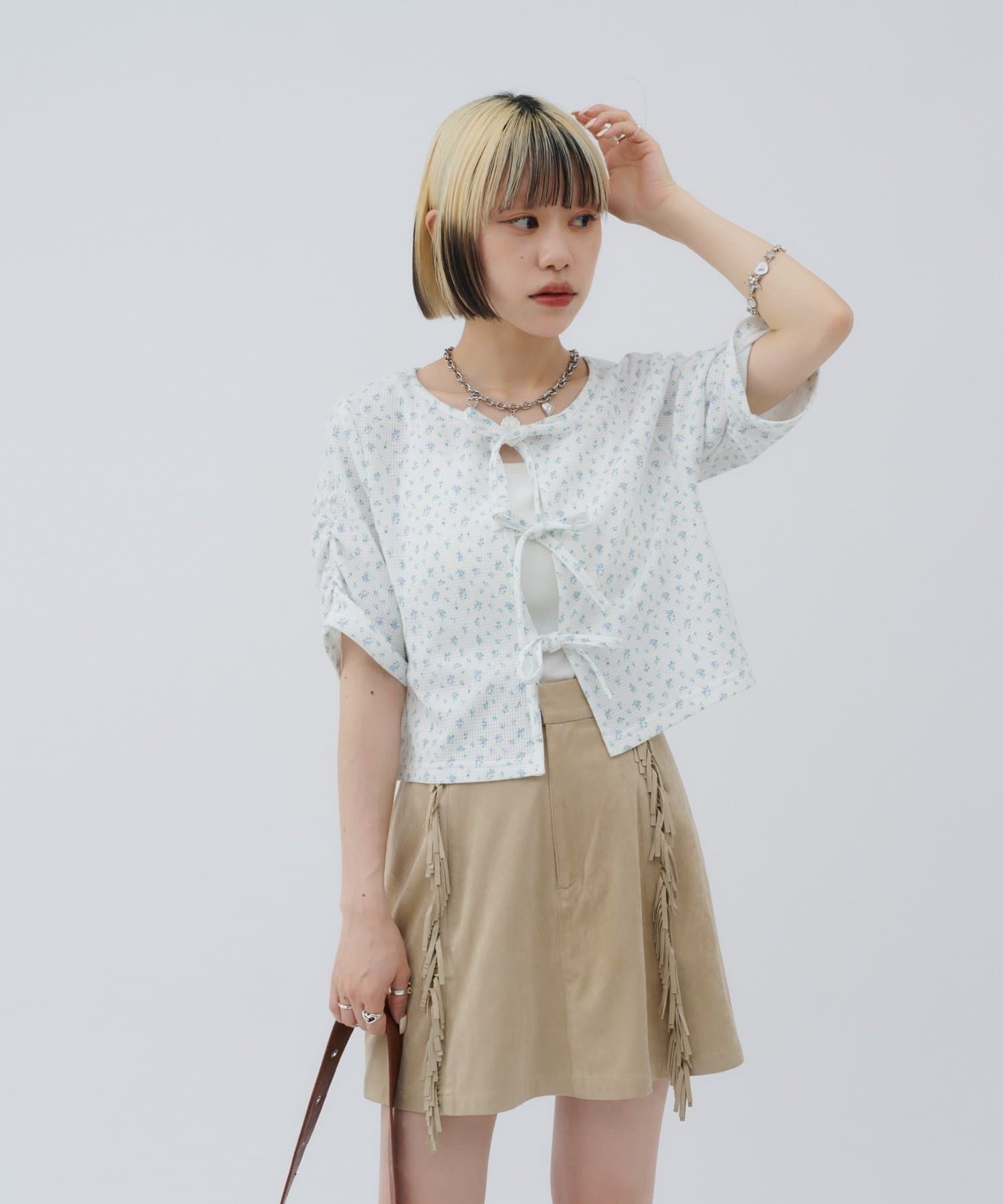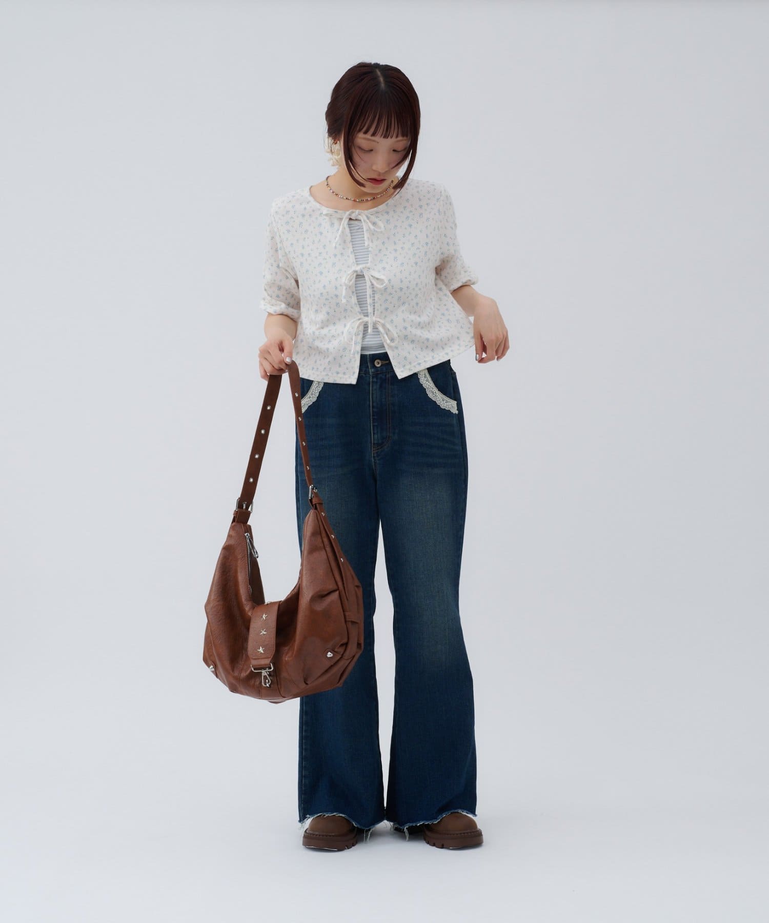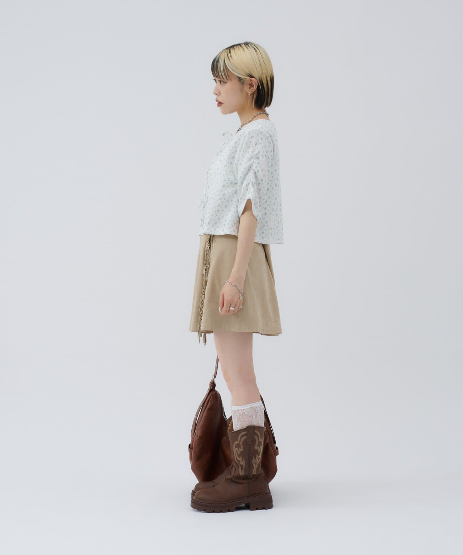 ・肌触りのいいワッフル生地のカーディガンは肩のギャザーがアクセント♡