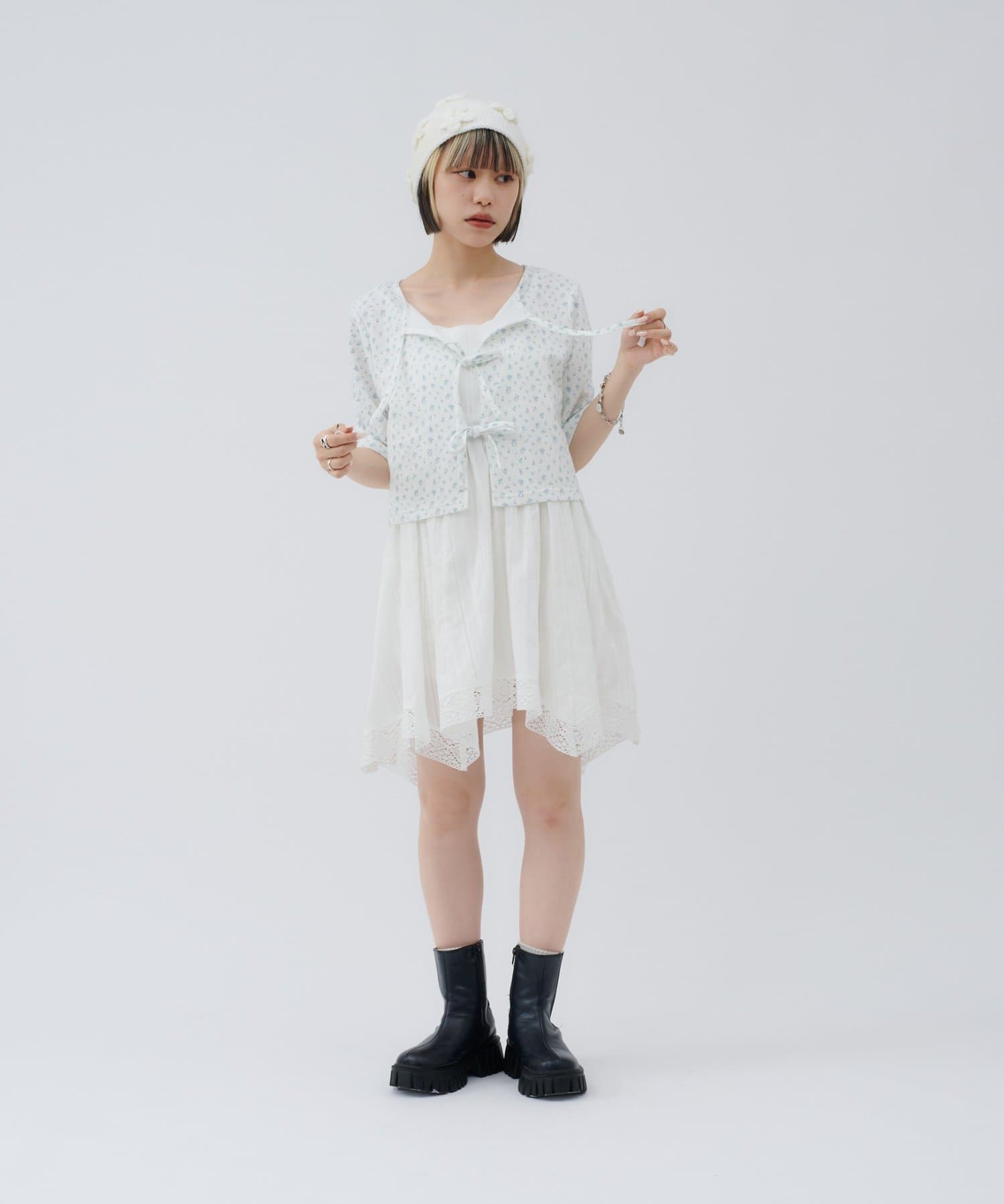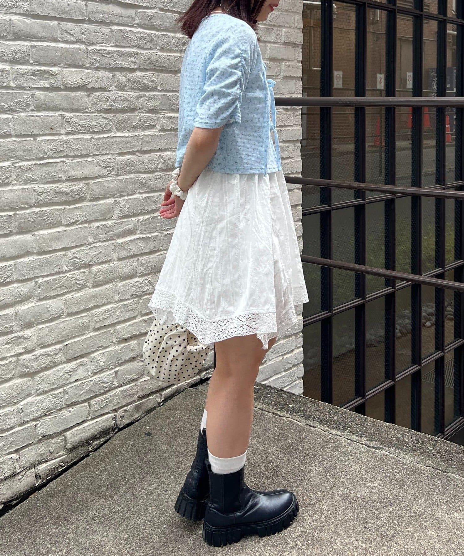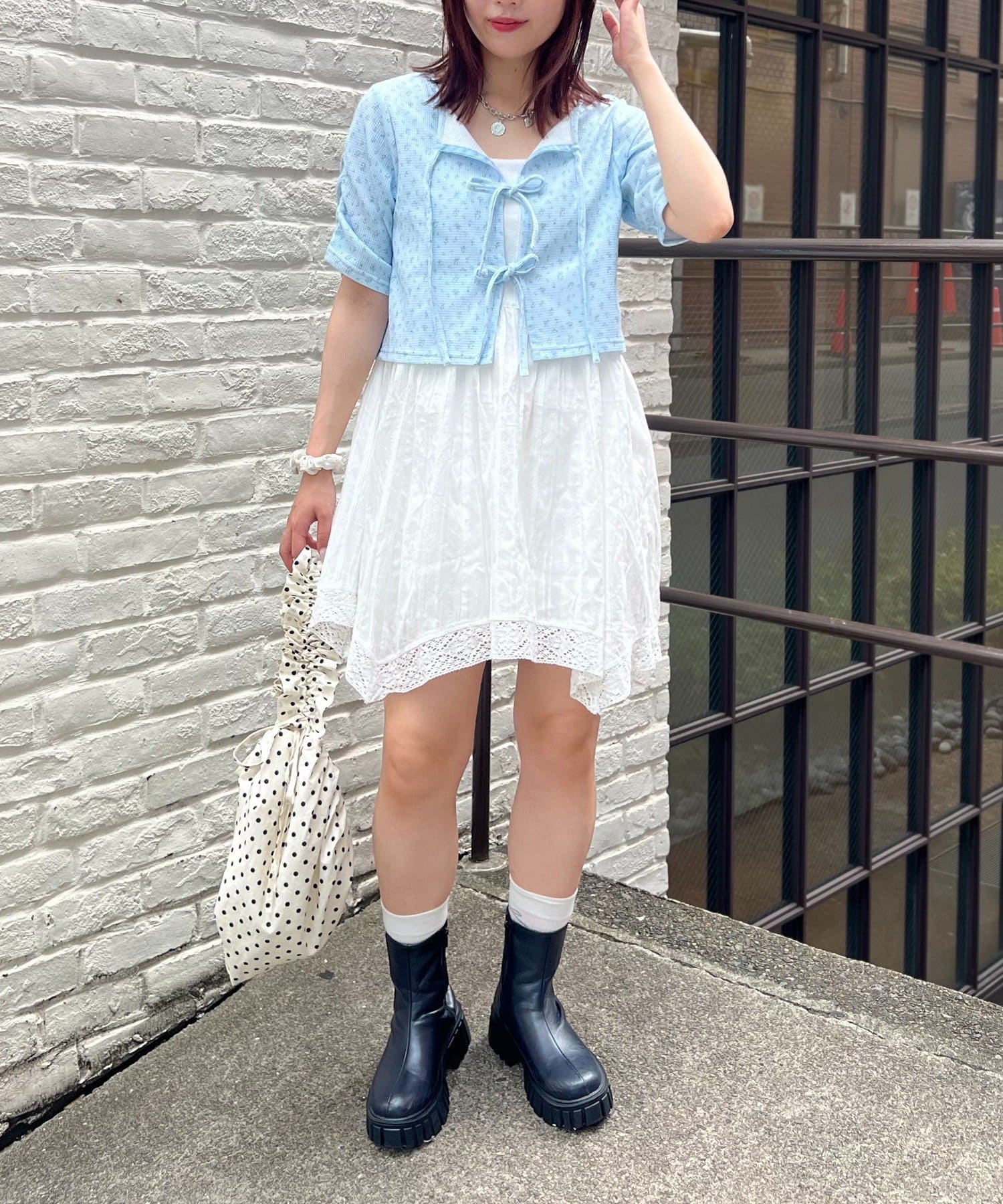 ・ワンピースは少し透け感があるため、ボトムスはフリルパンツなどがおすすめ!