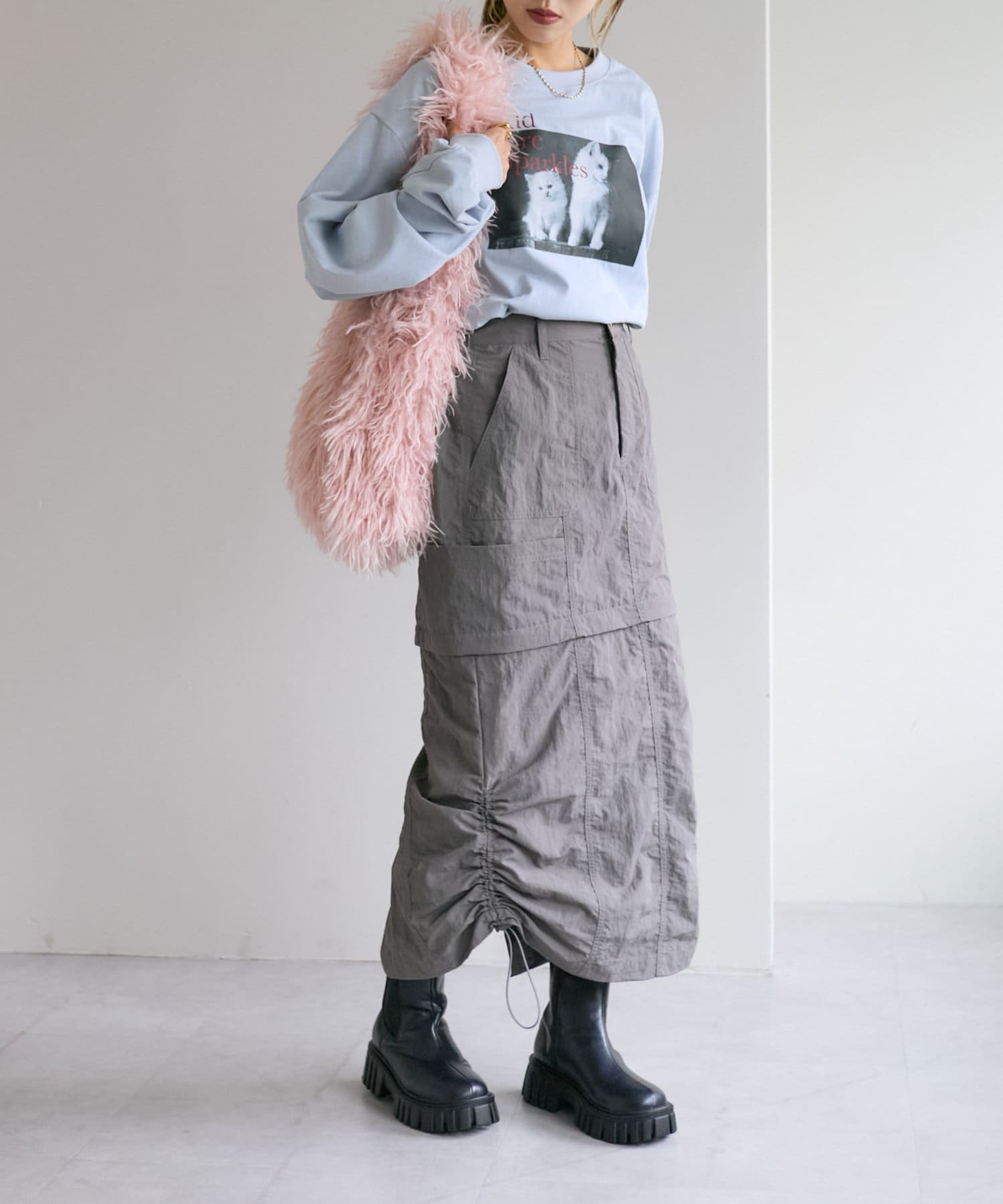 ・メンズライクなカーゴデザインもスカートでレディライクに◎
