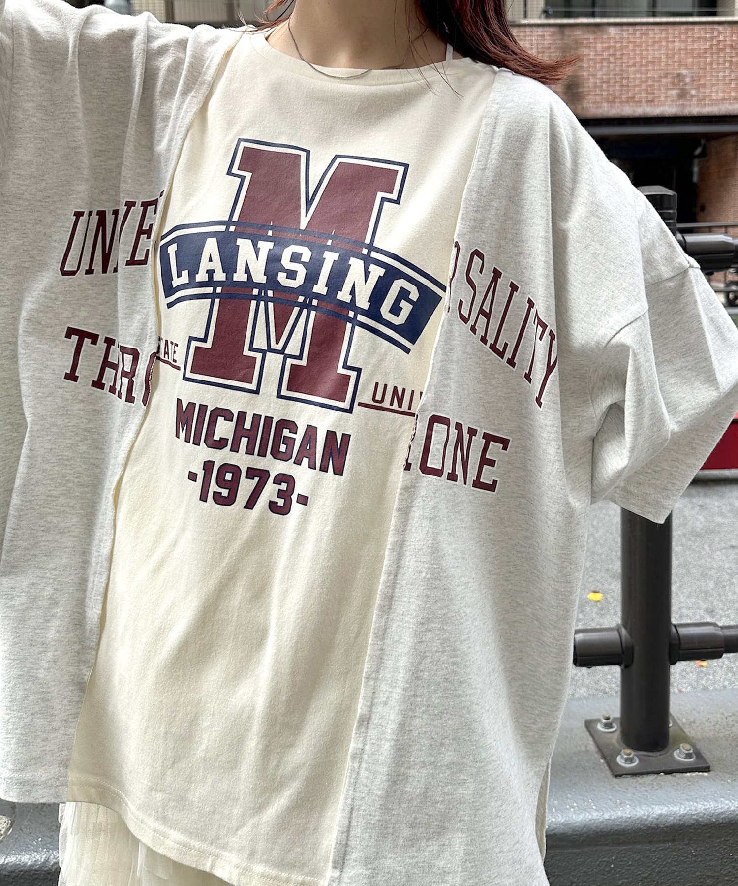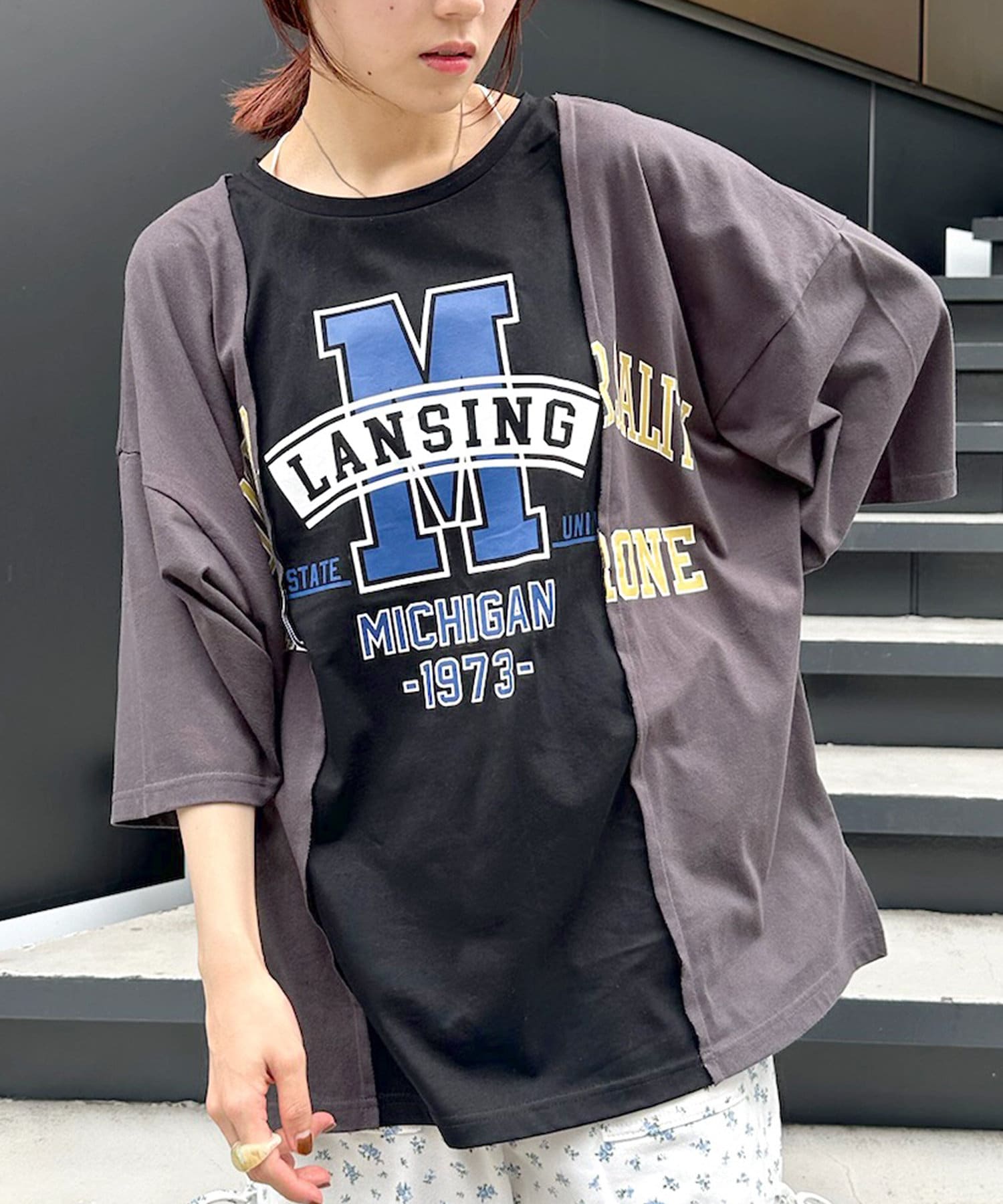 ・プリントTシャツをつなぎ合わせたリメイク風のデザイン