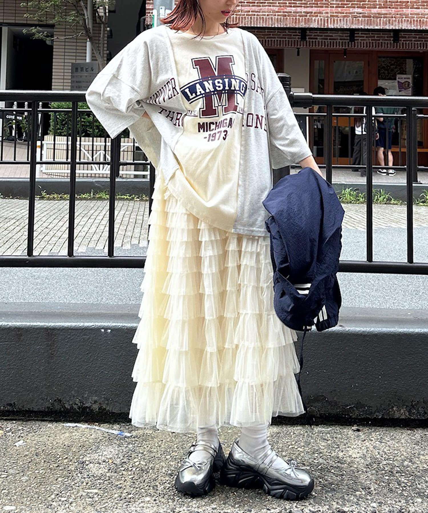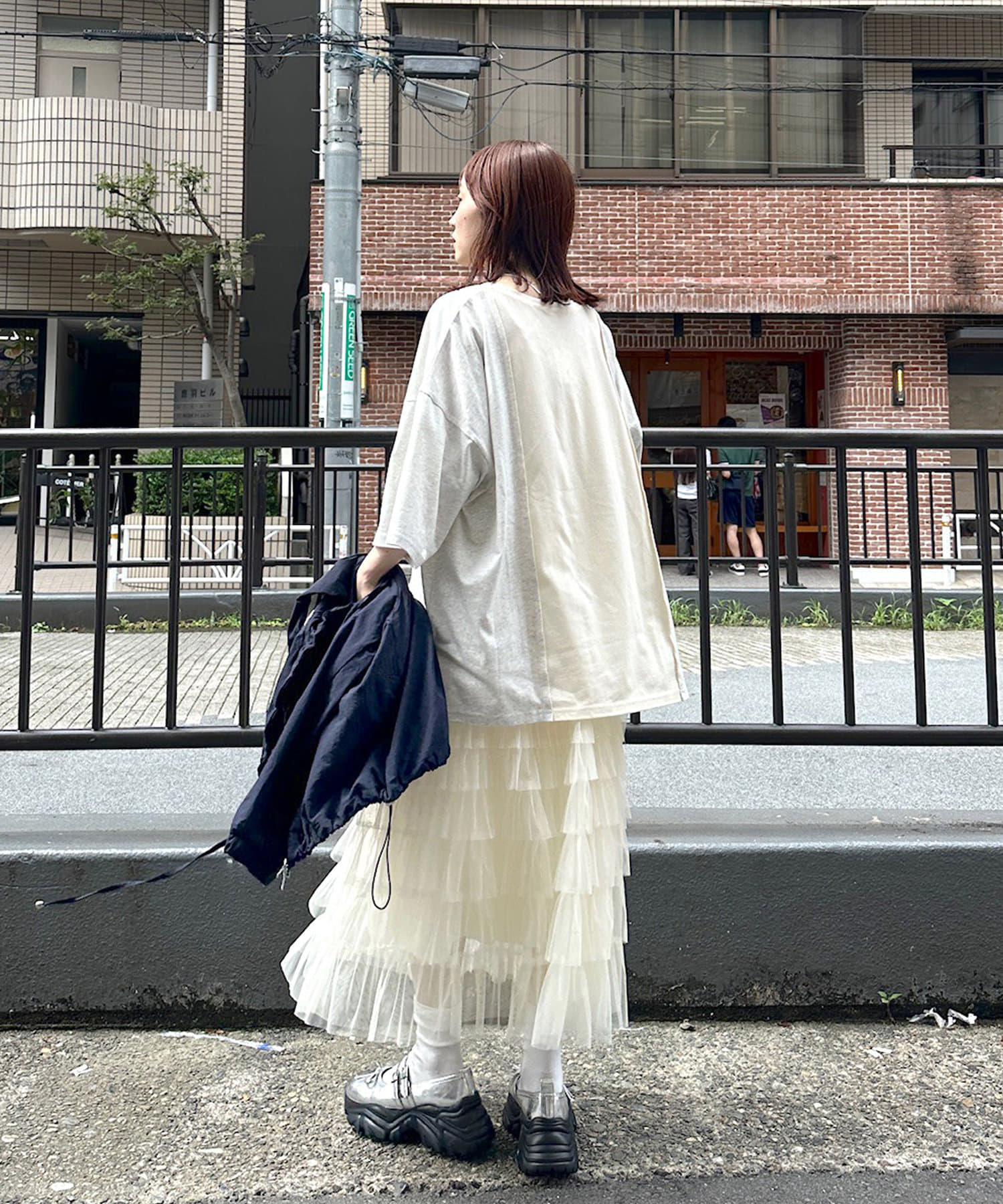 ・チュールスカートなどのガーリーなアイテムに合わせてカジュアルダウンしても可愛いです