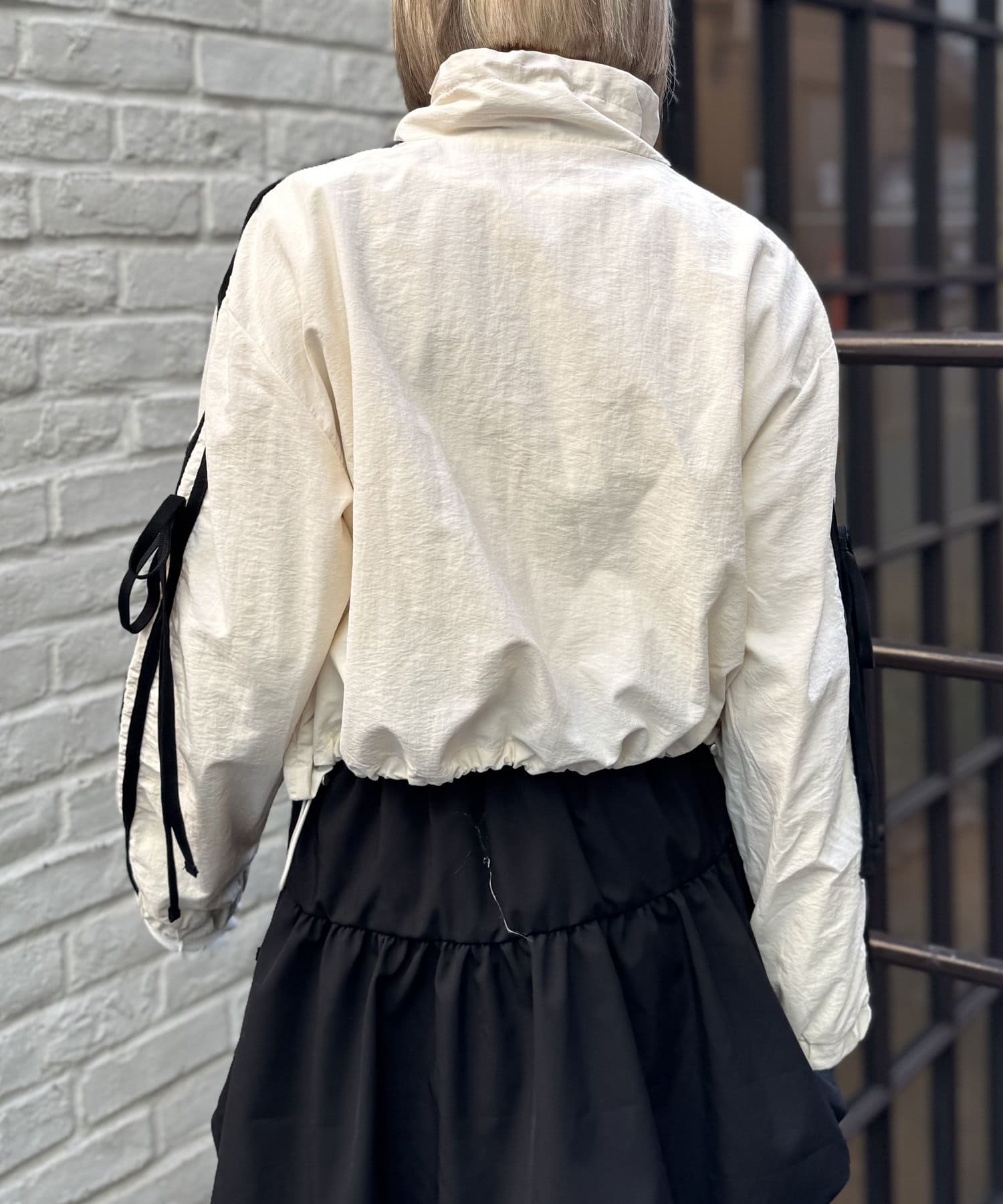 ・袖のリボンや首元・裾のドローコードもさりげないポイントです◎