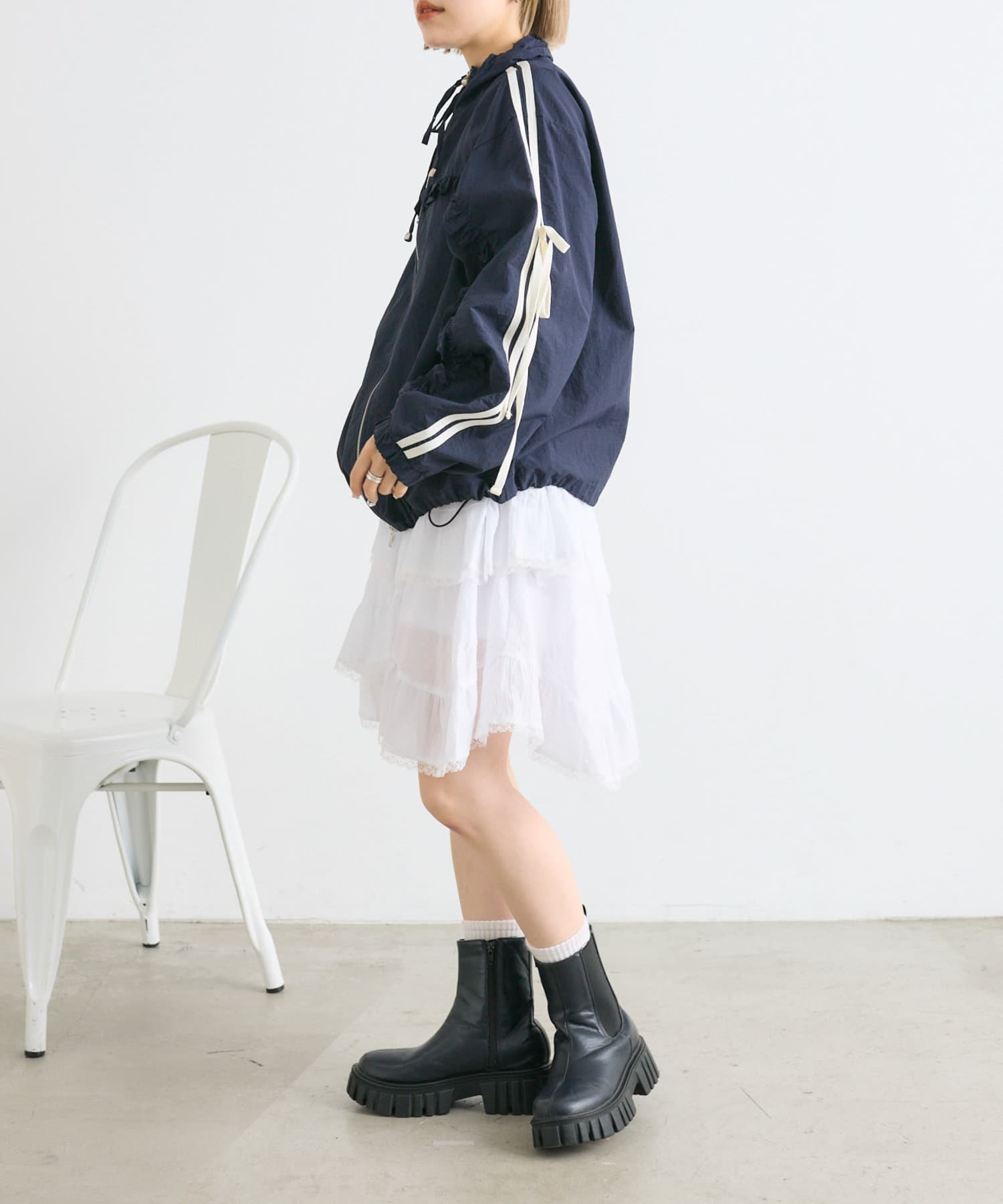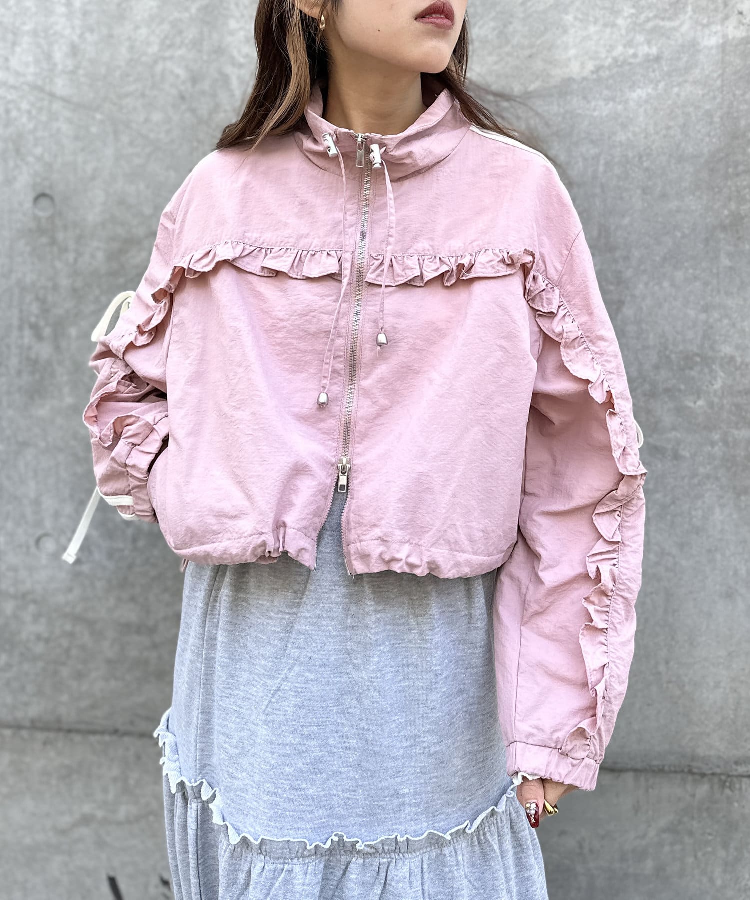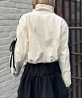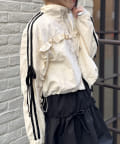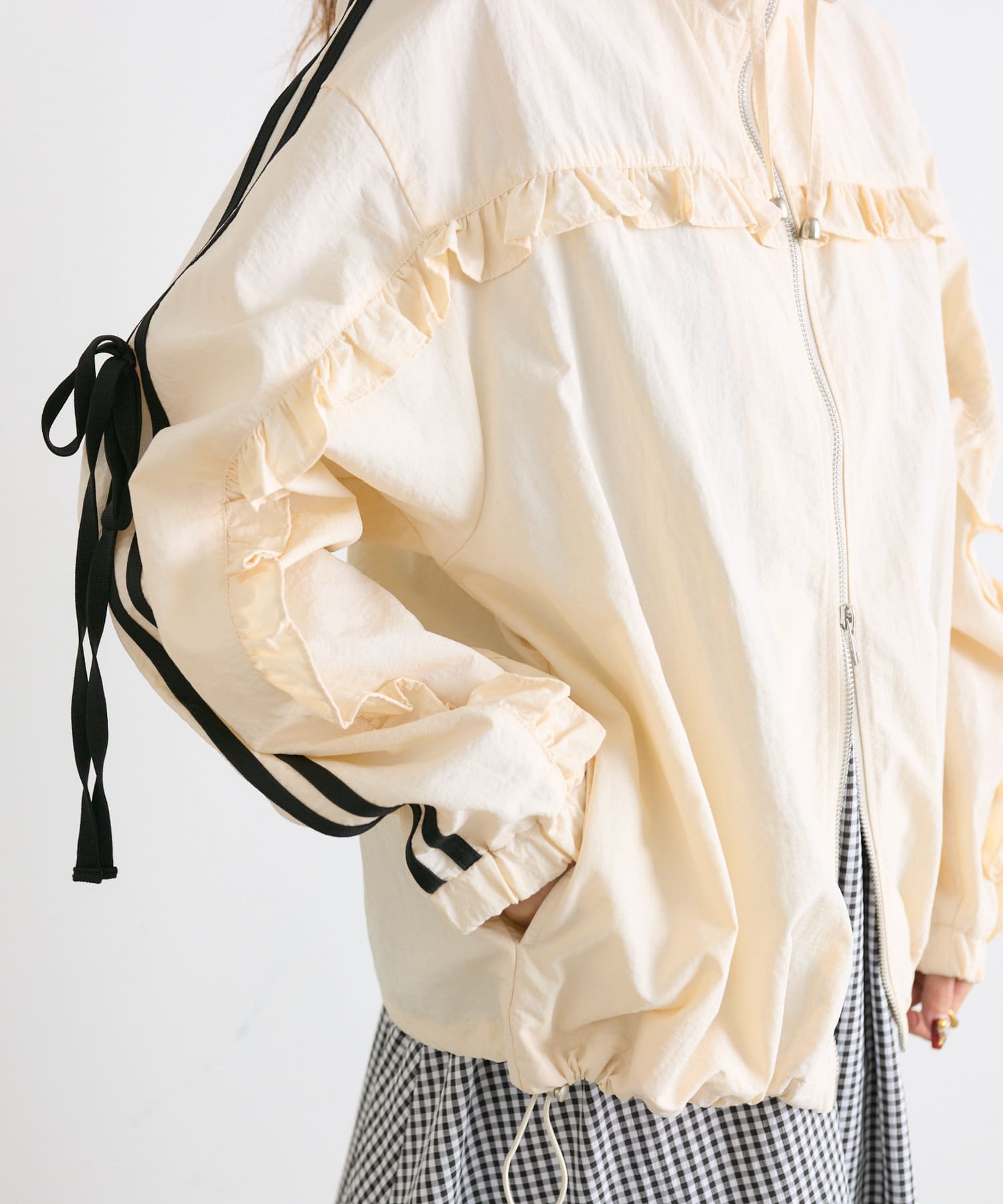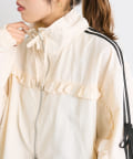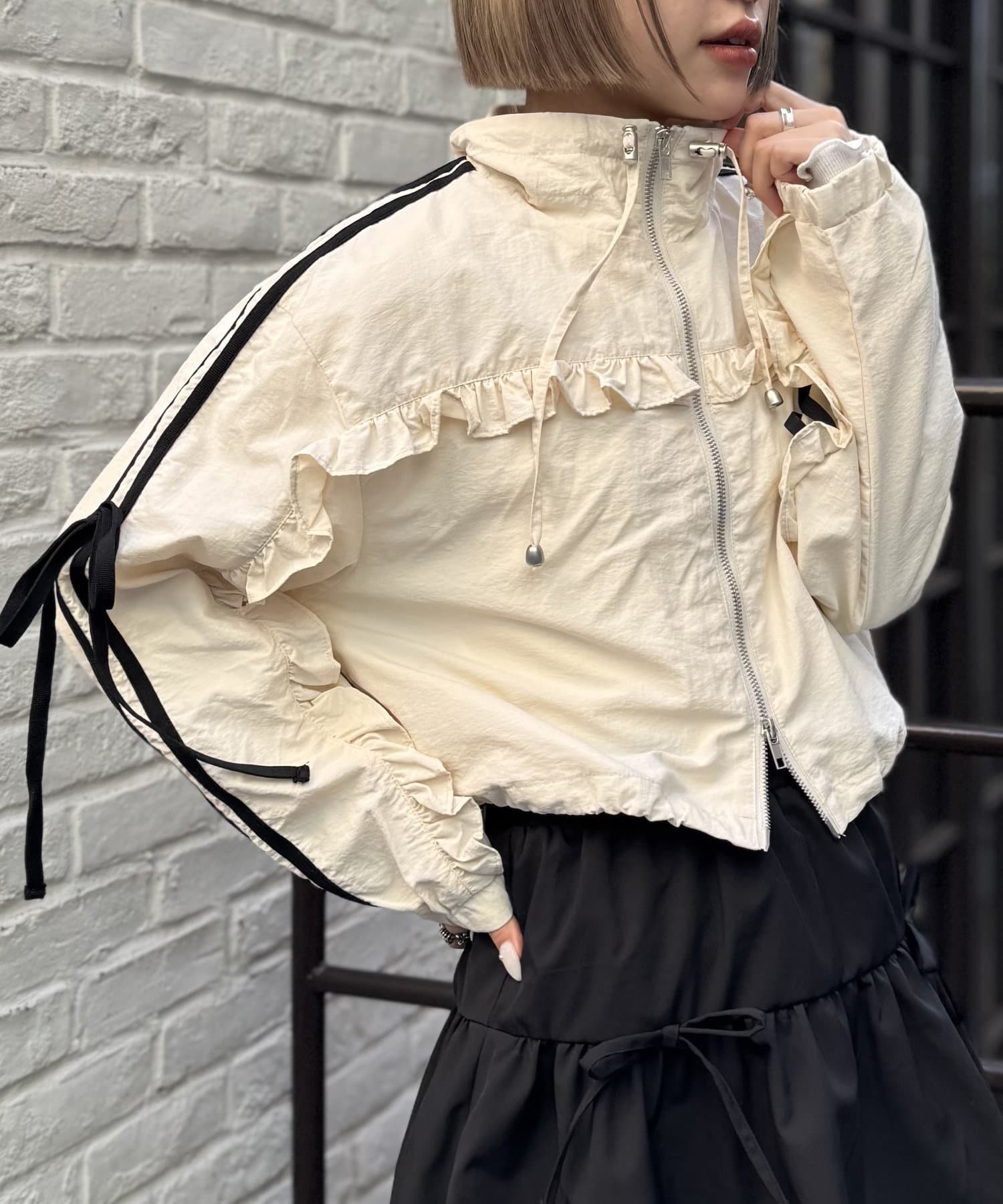 ・ナイロン生地のジャケットにフリルをほどこしたMIXテイストなデザイン