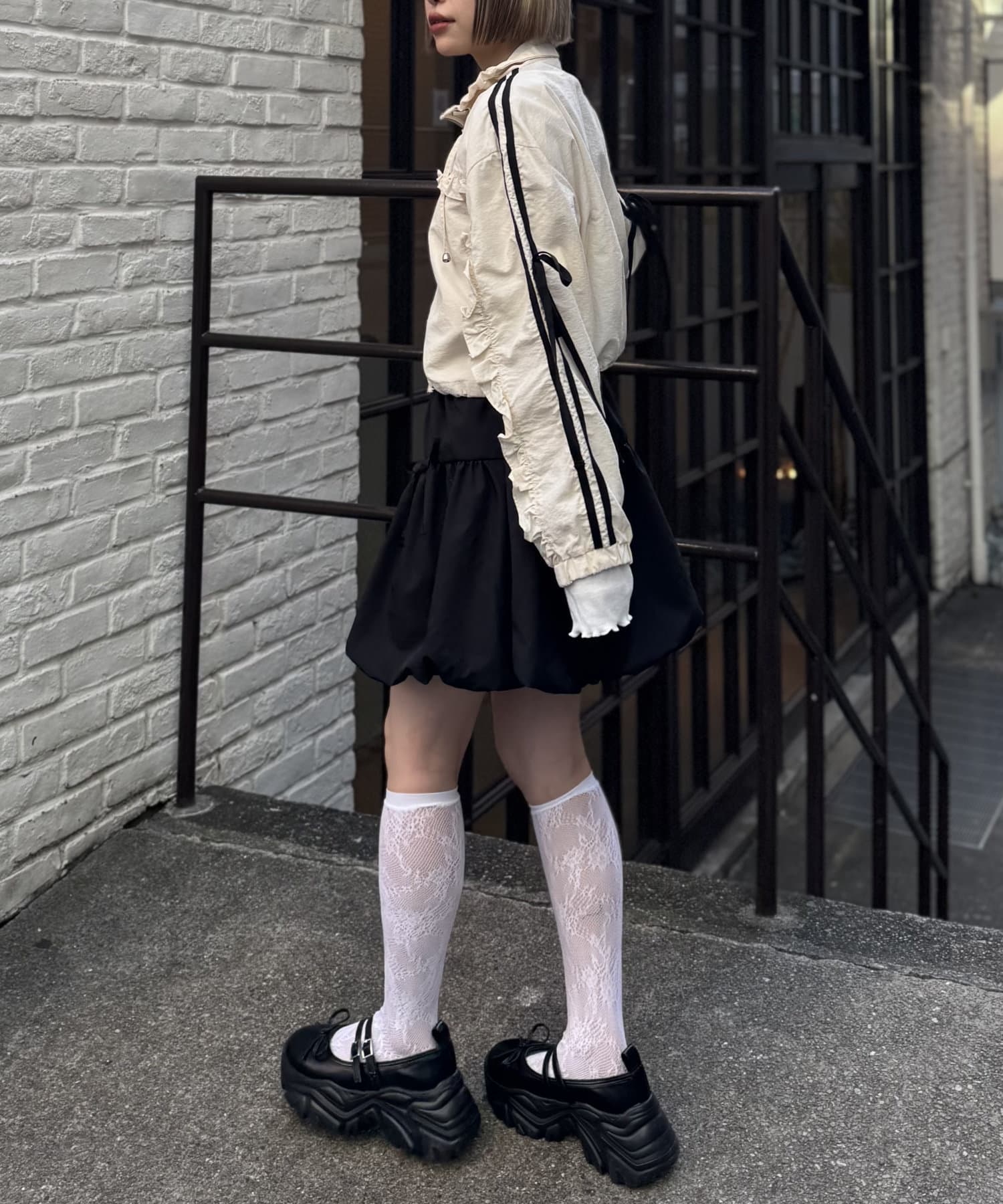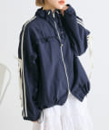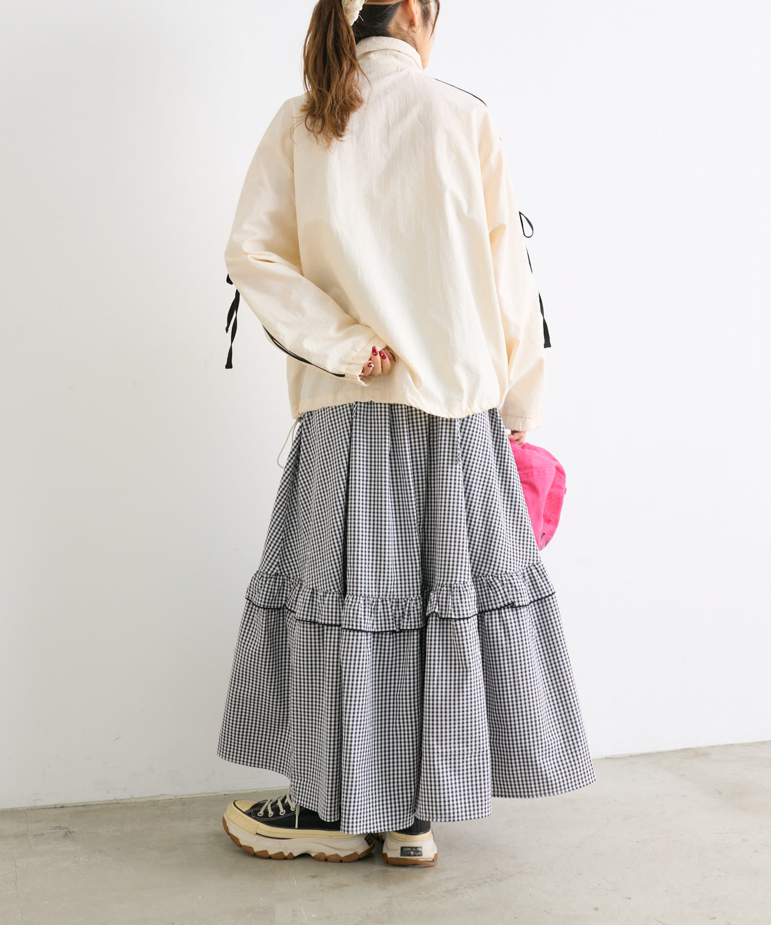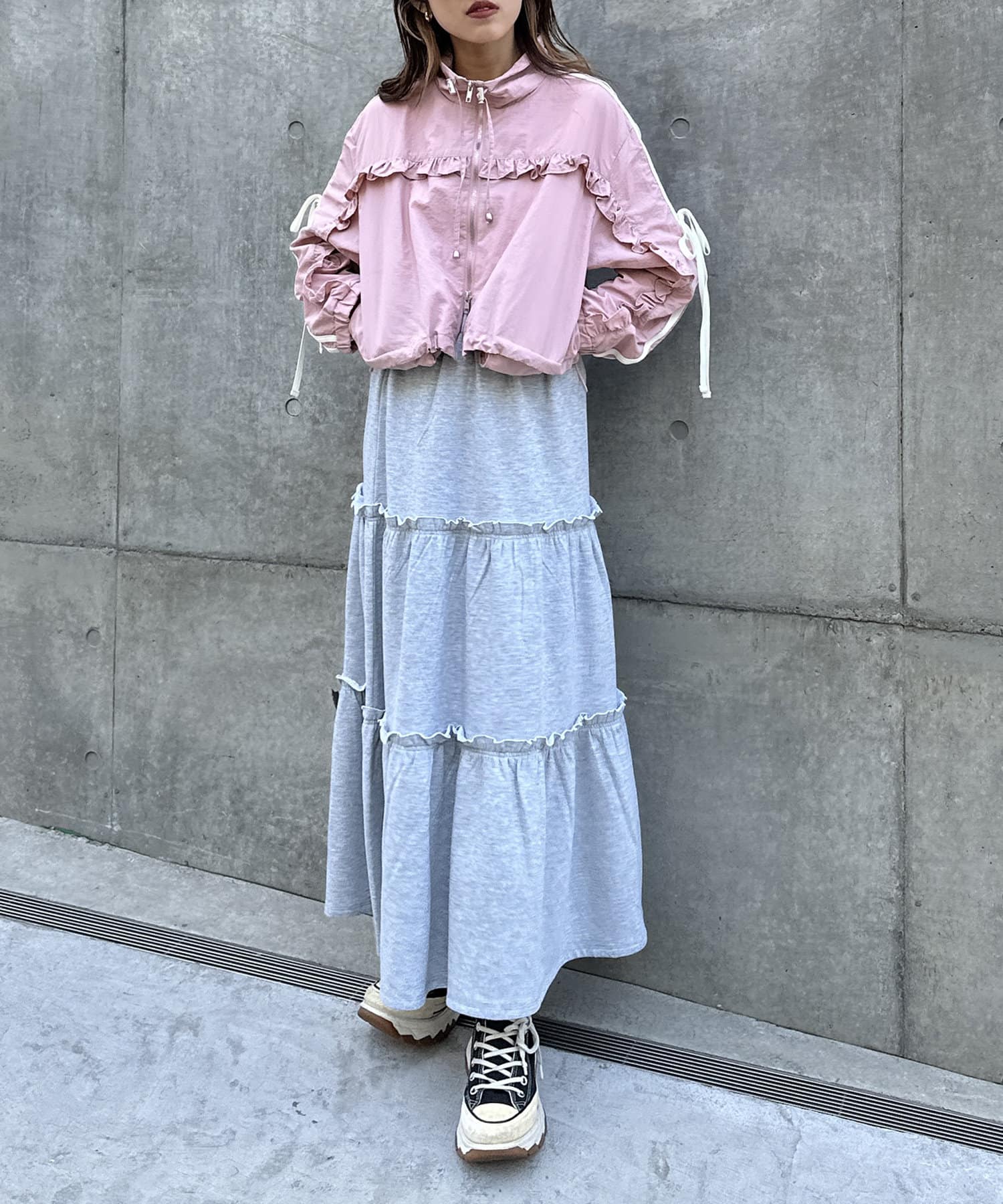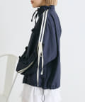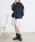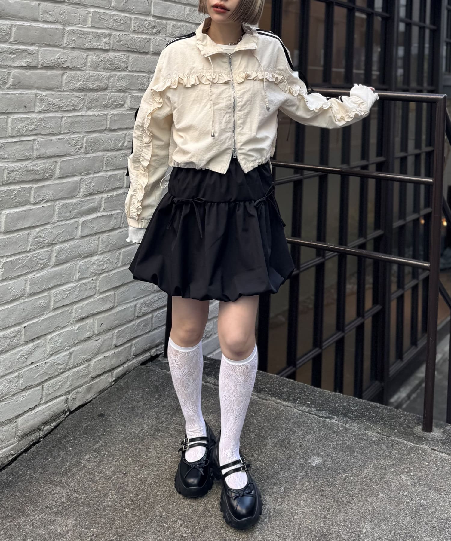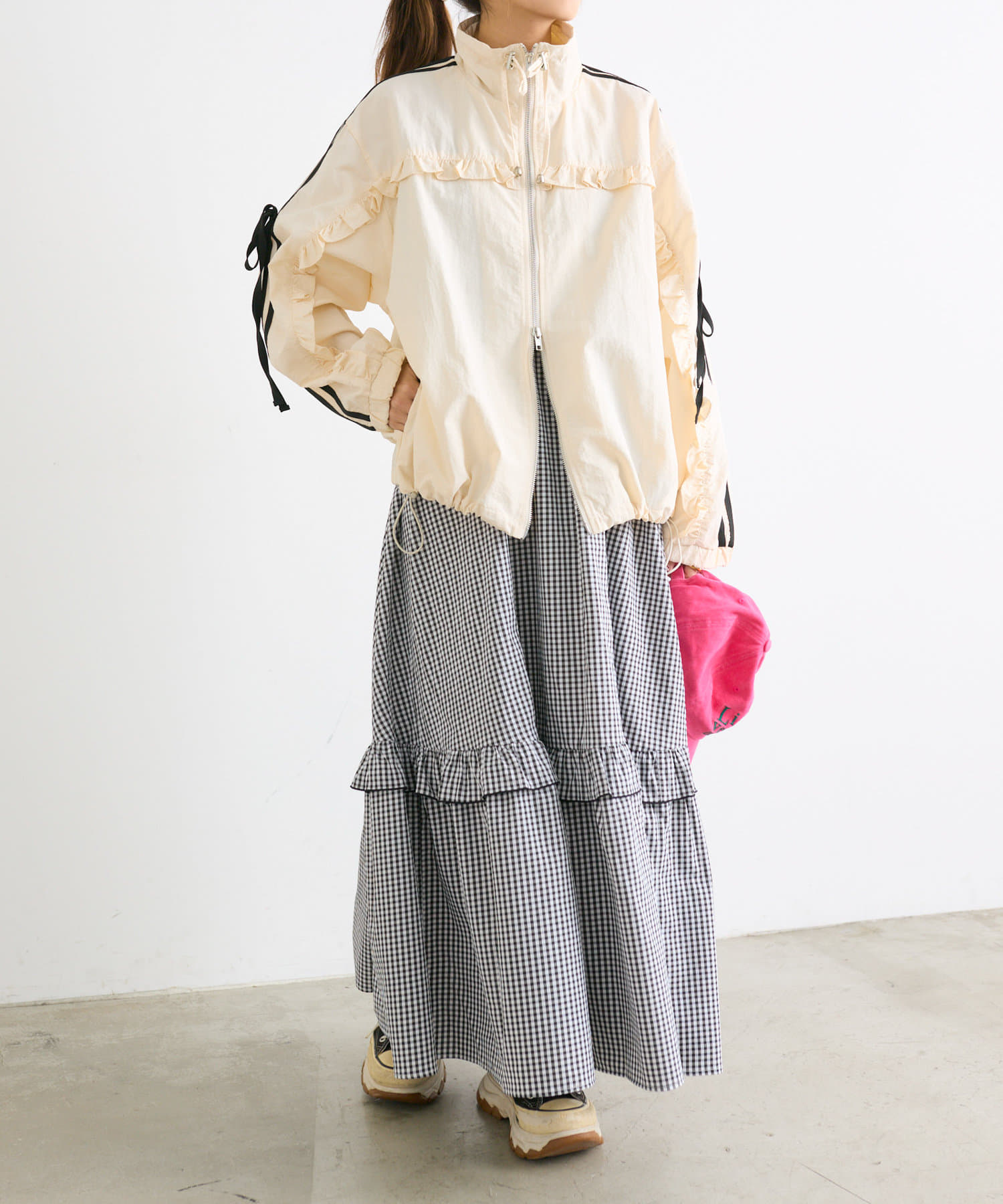 ・ナイロン生地のジャケットにフリルをほどこしたMIXテイストなデザイン
