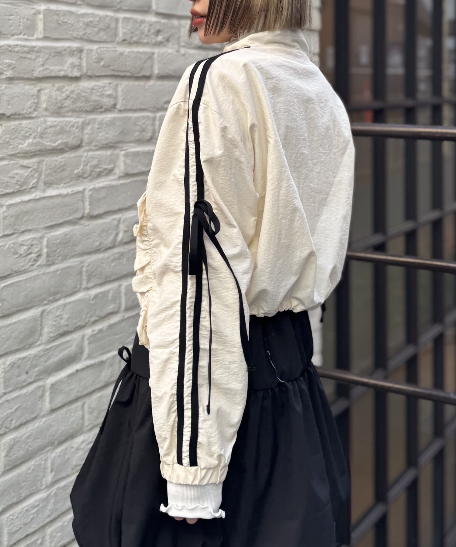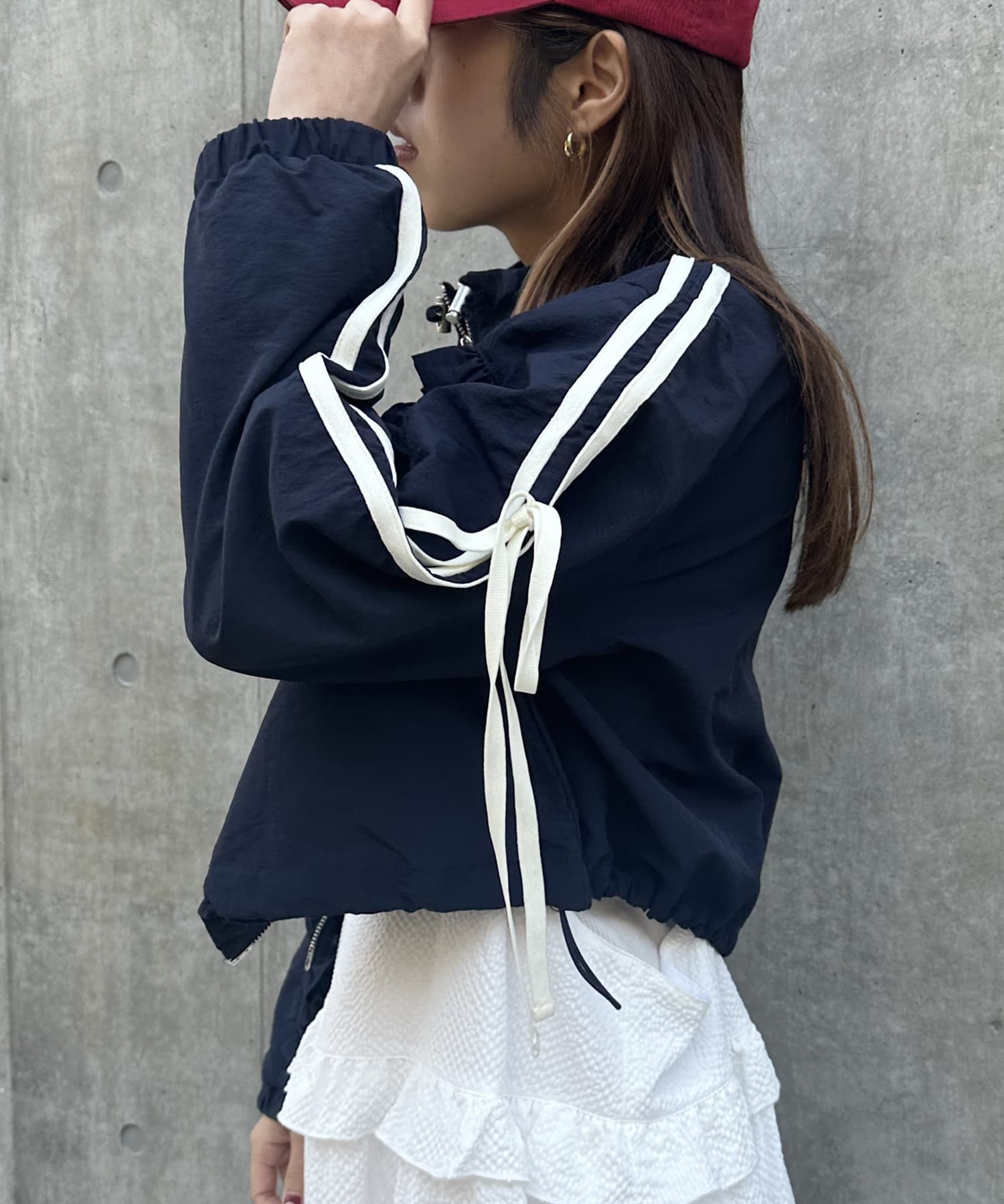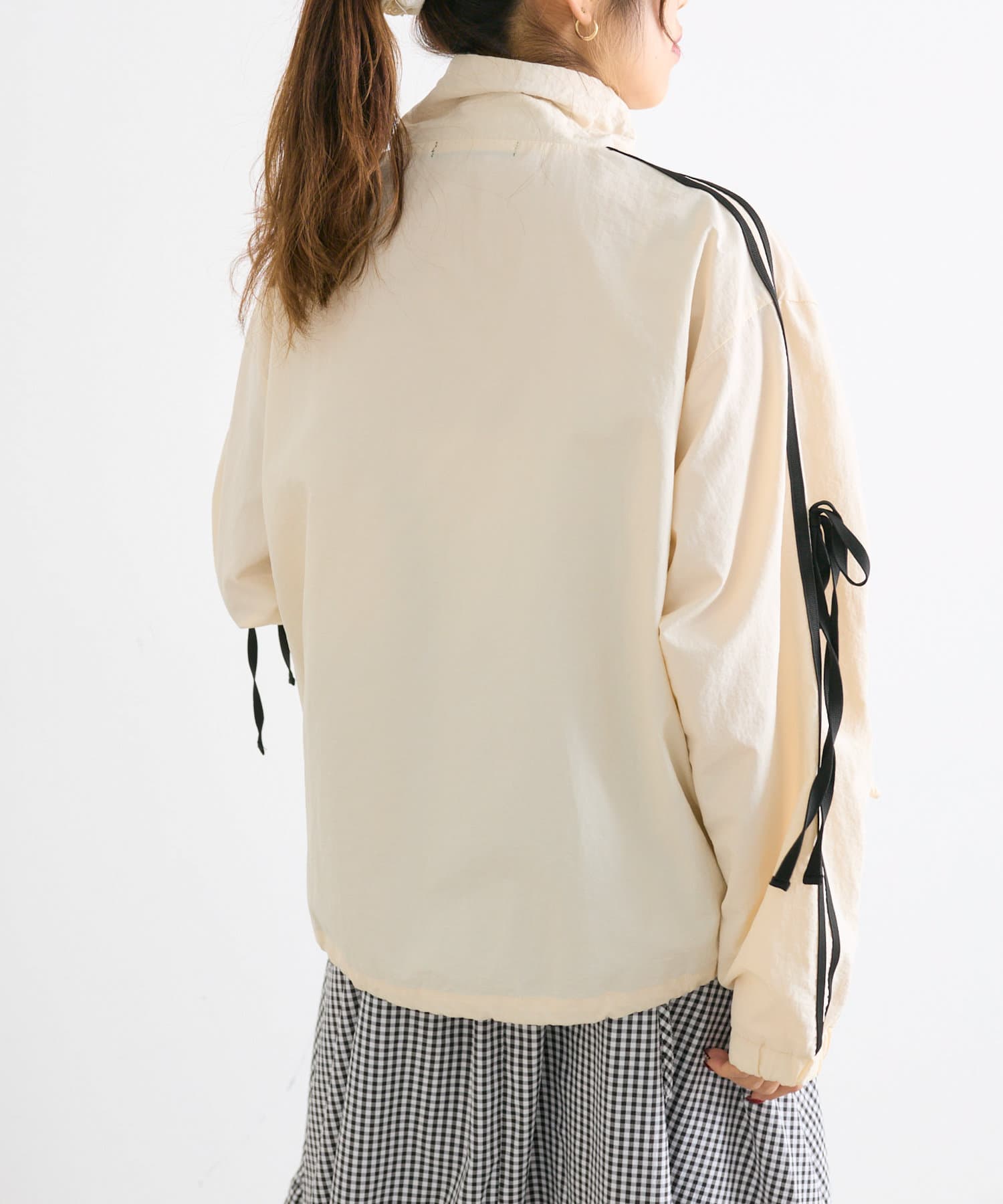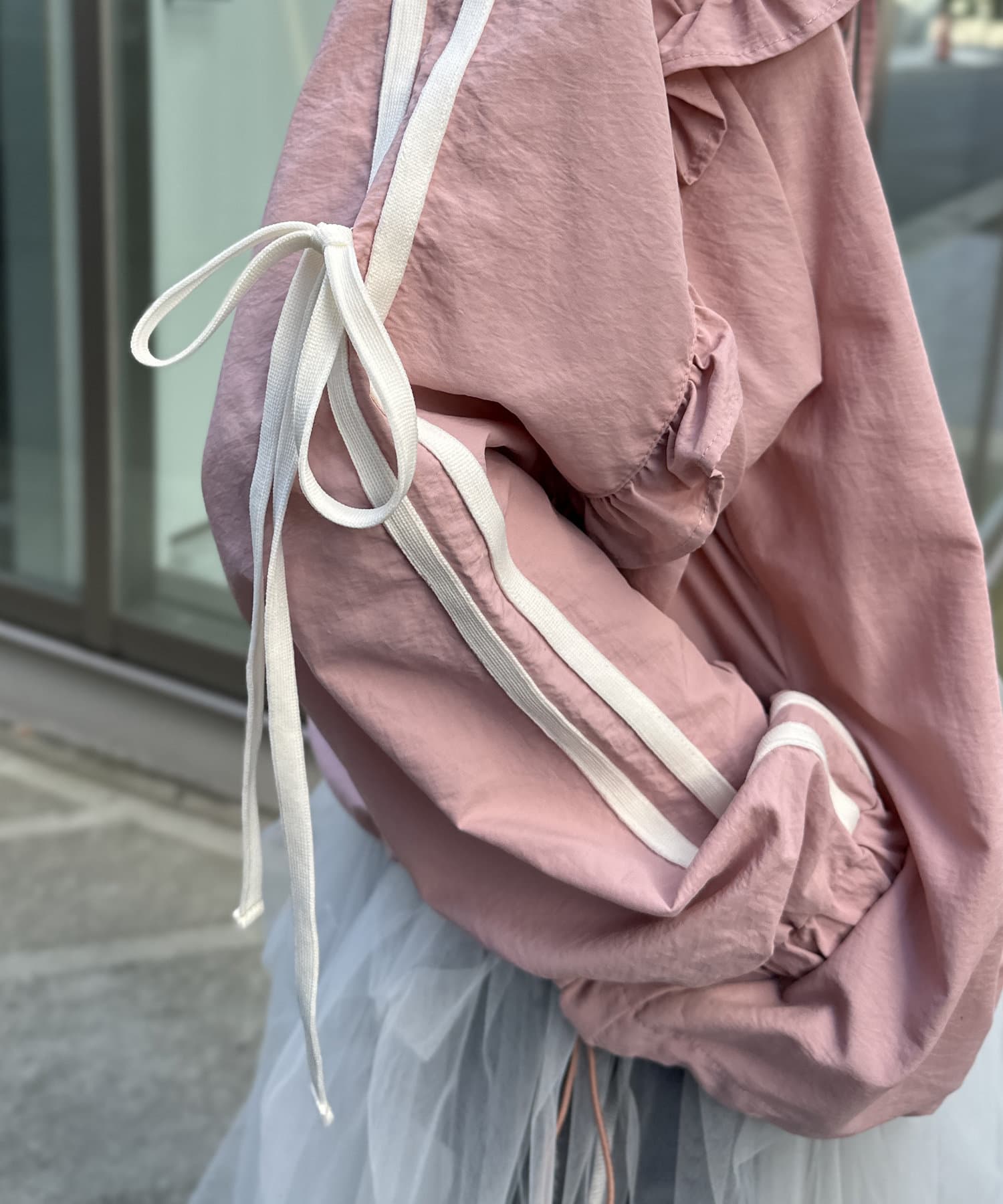 ・袖のリボンや首元・裾のドローコードもさりげないポイントです◎