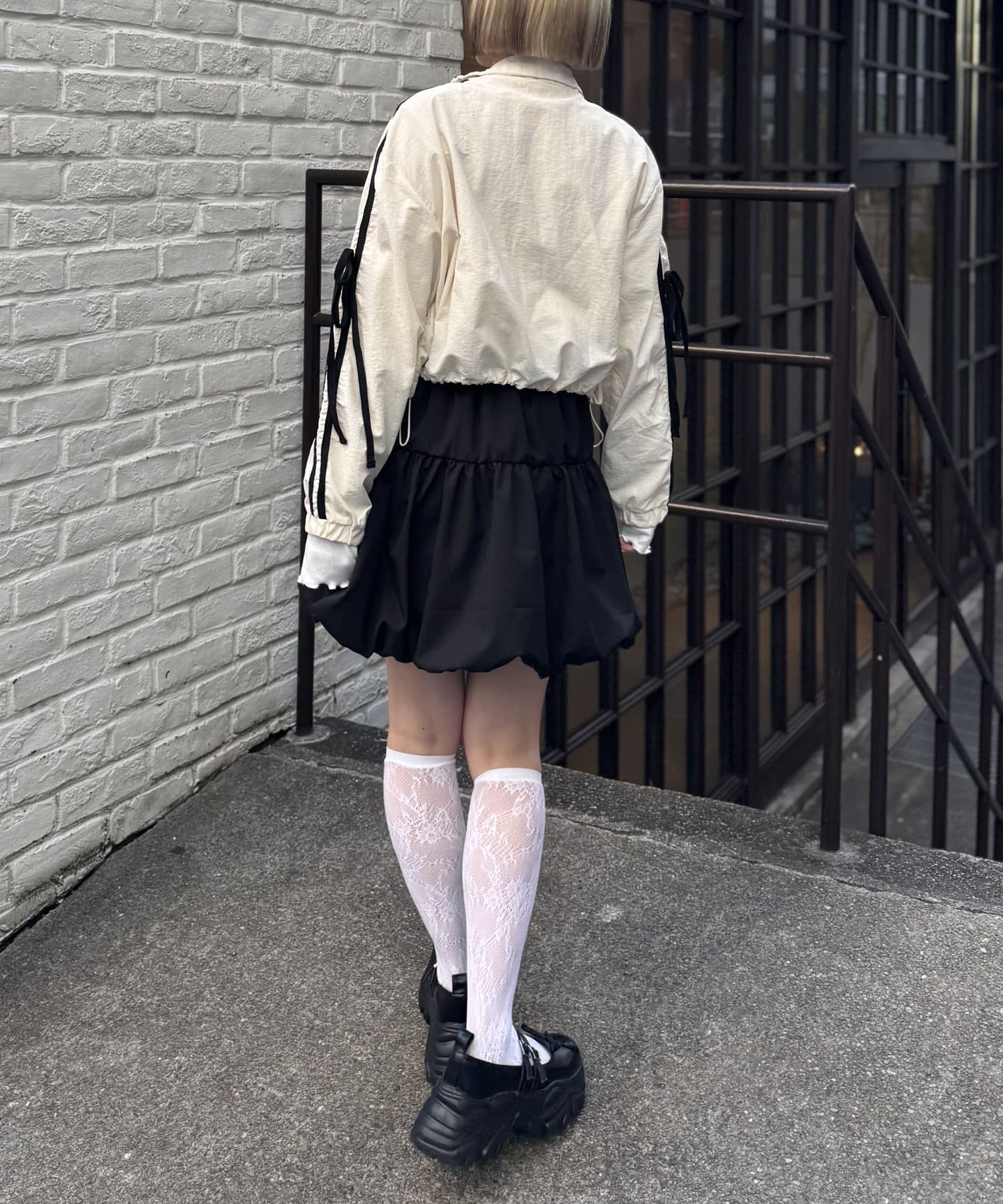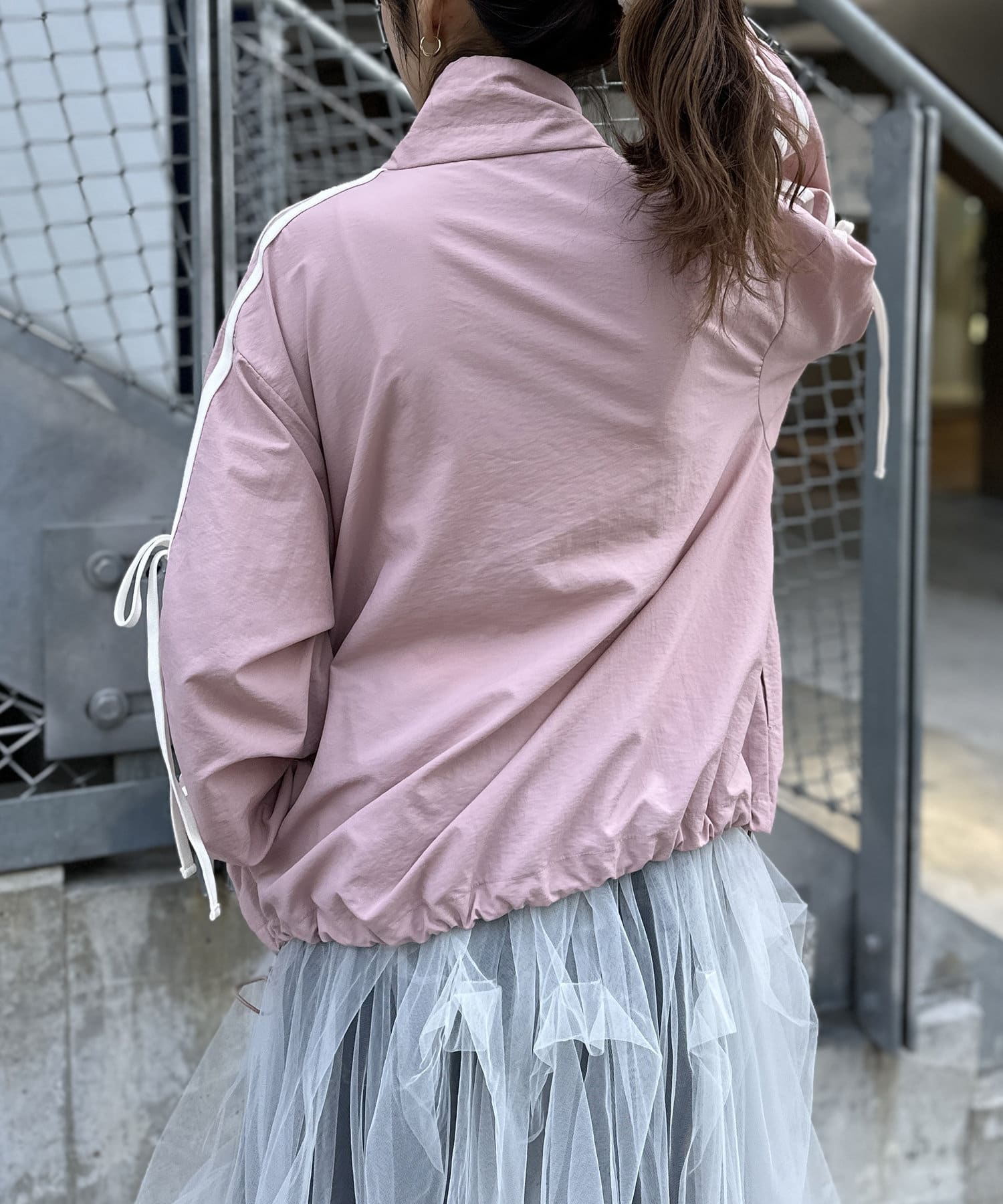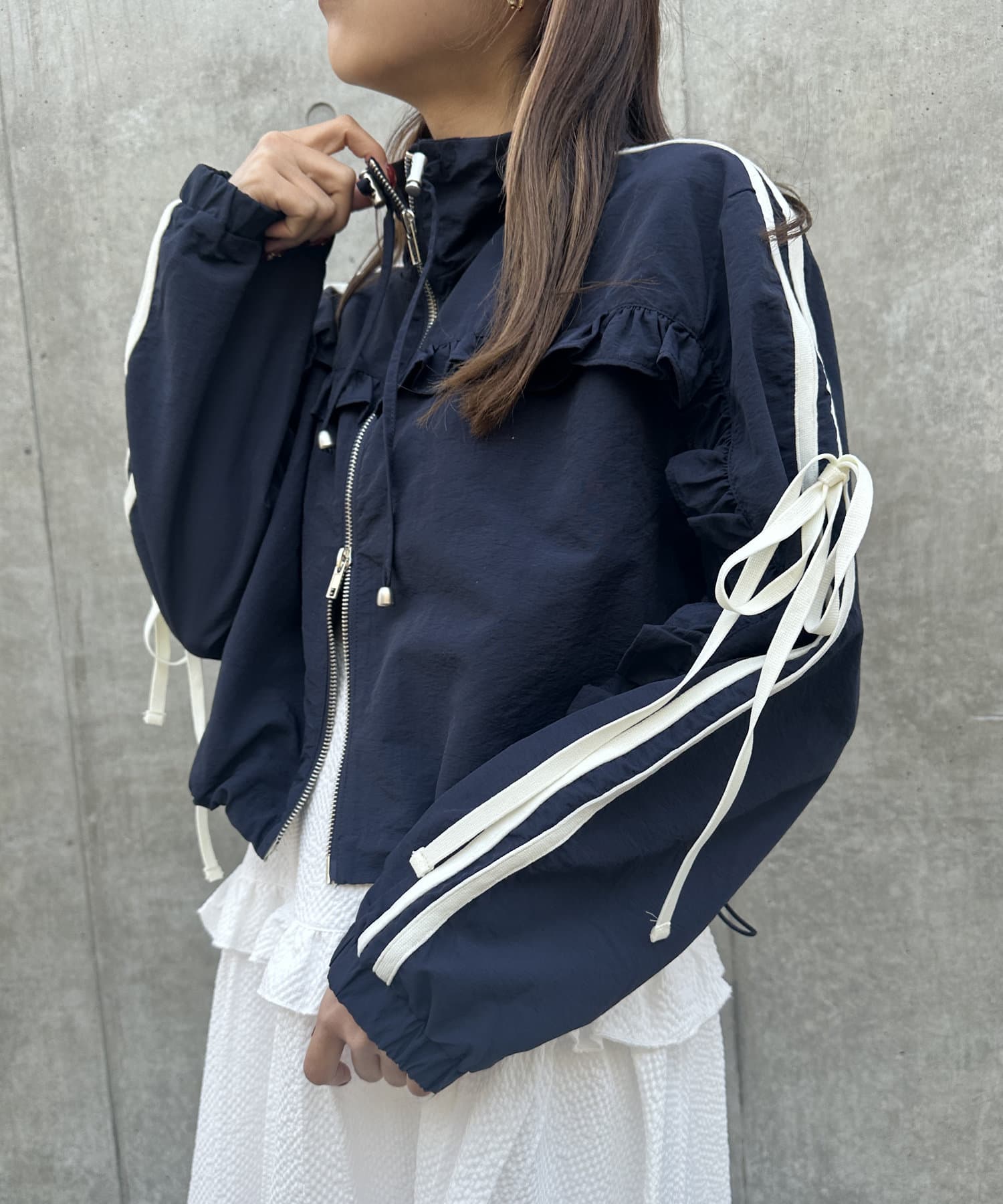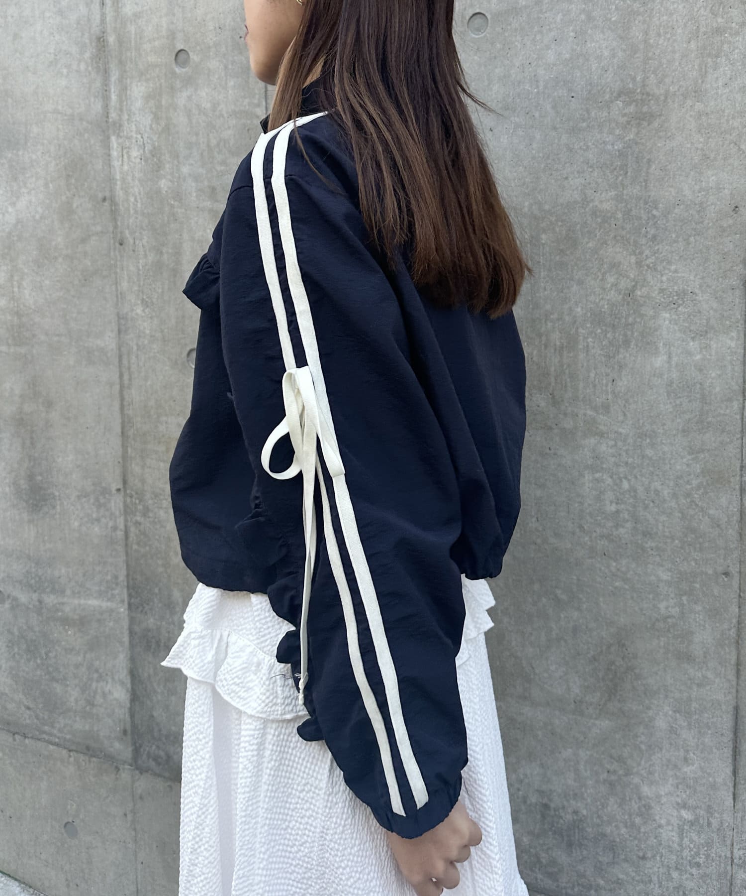 ・袖のリボンや首元・裾のドローコードもさりげないポイントです◎