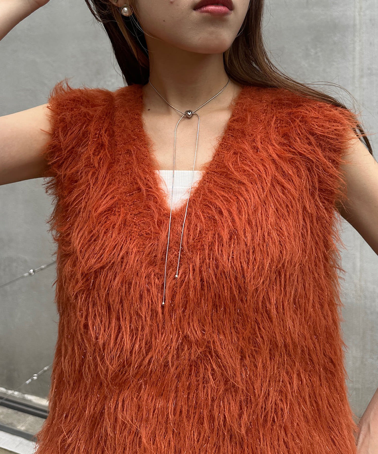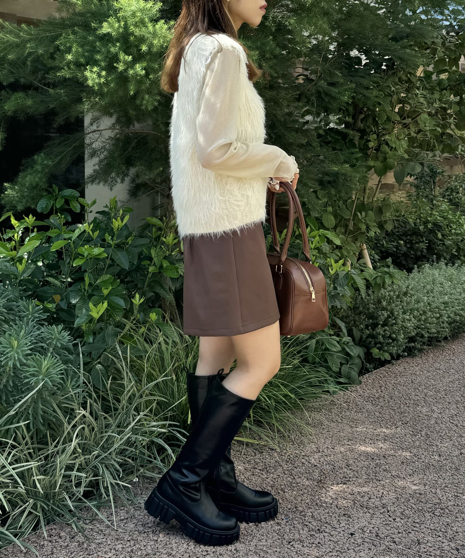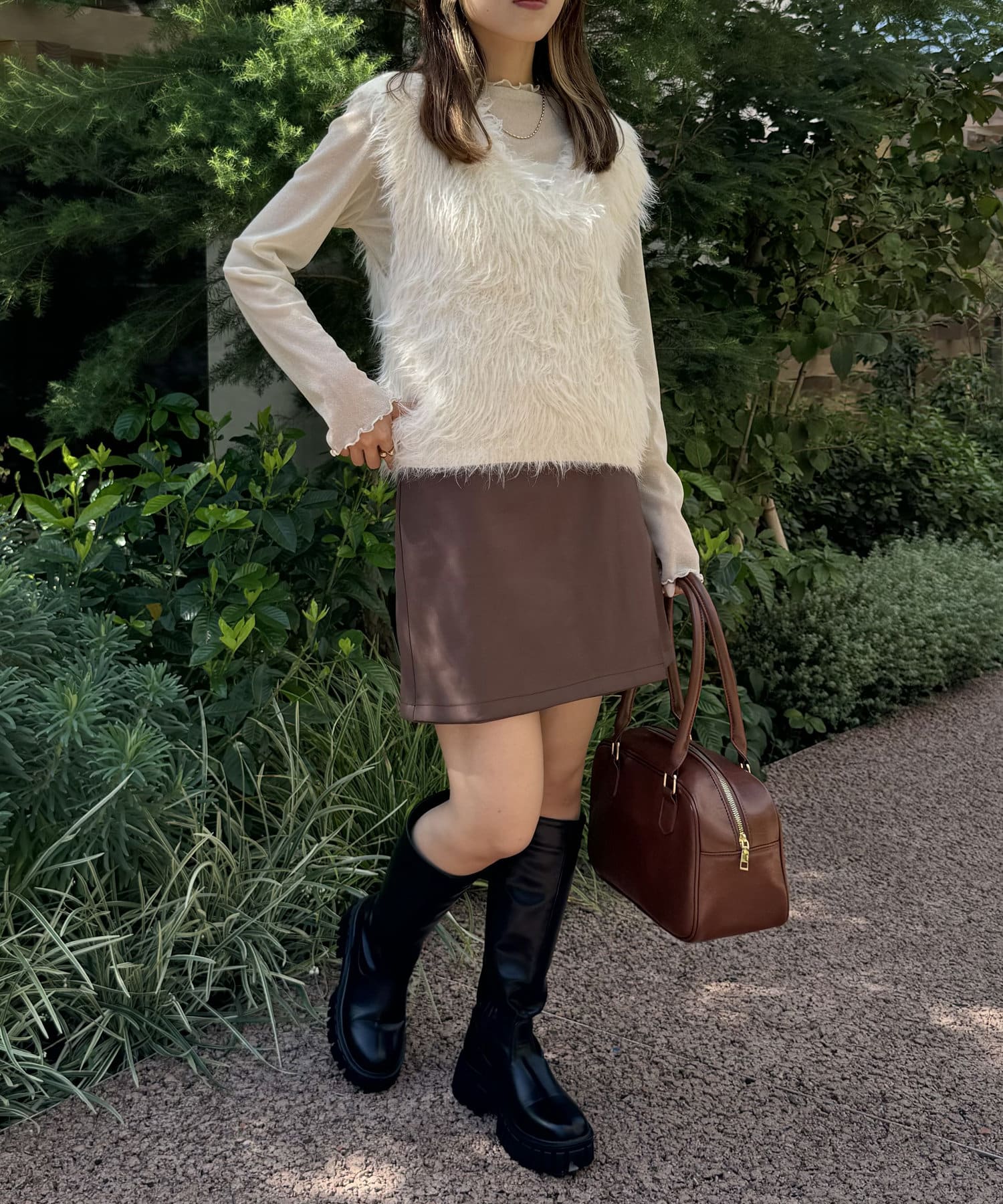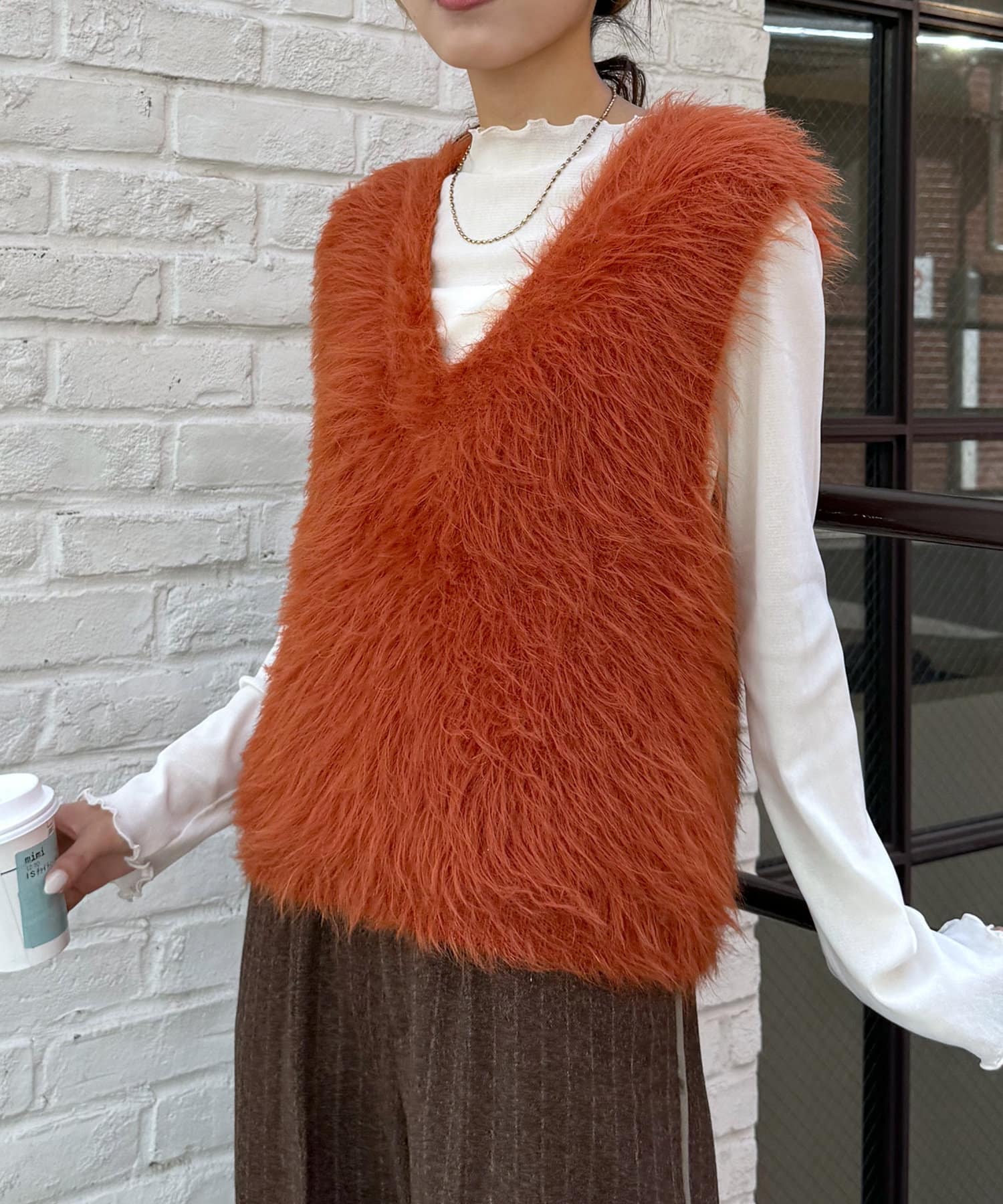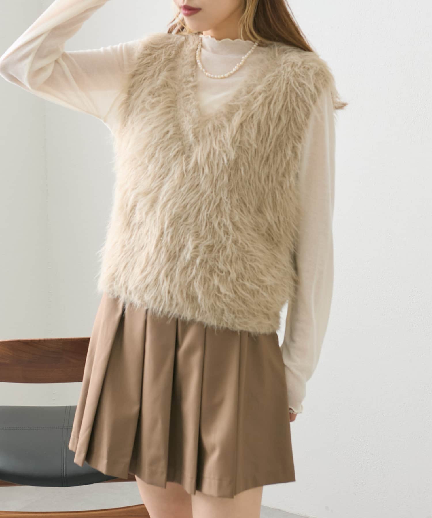 ・毛足長めの素材で一枚でコーデが決まるシルエット