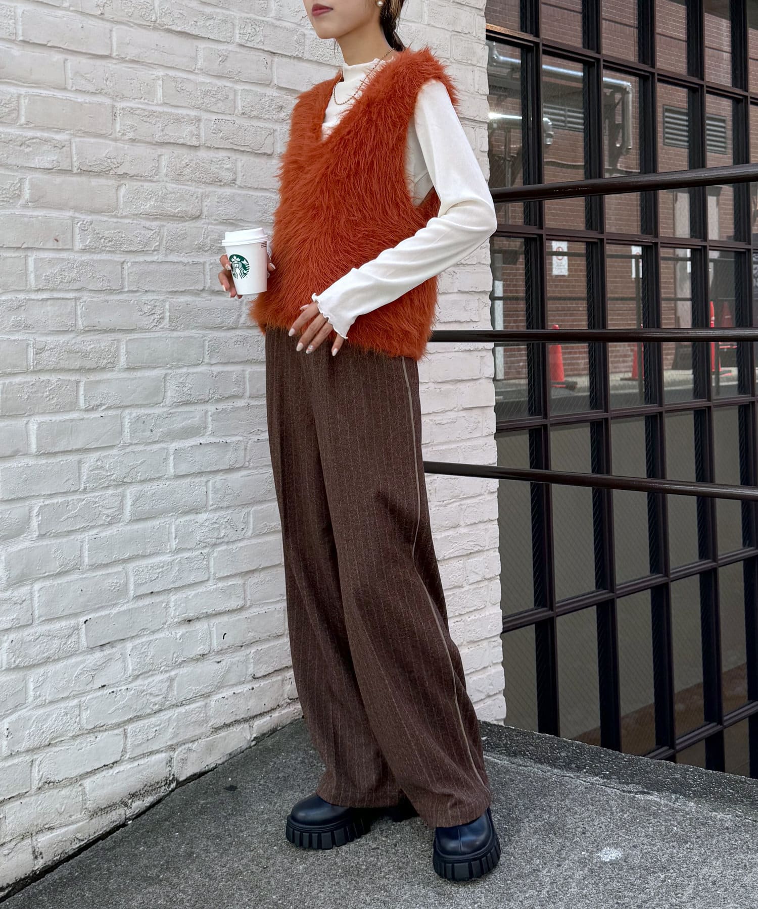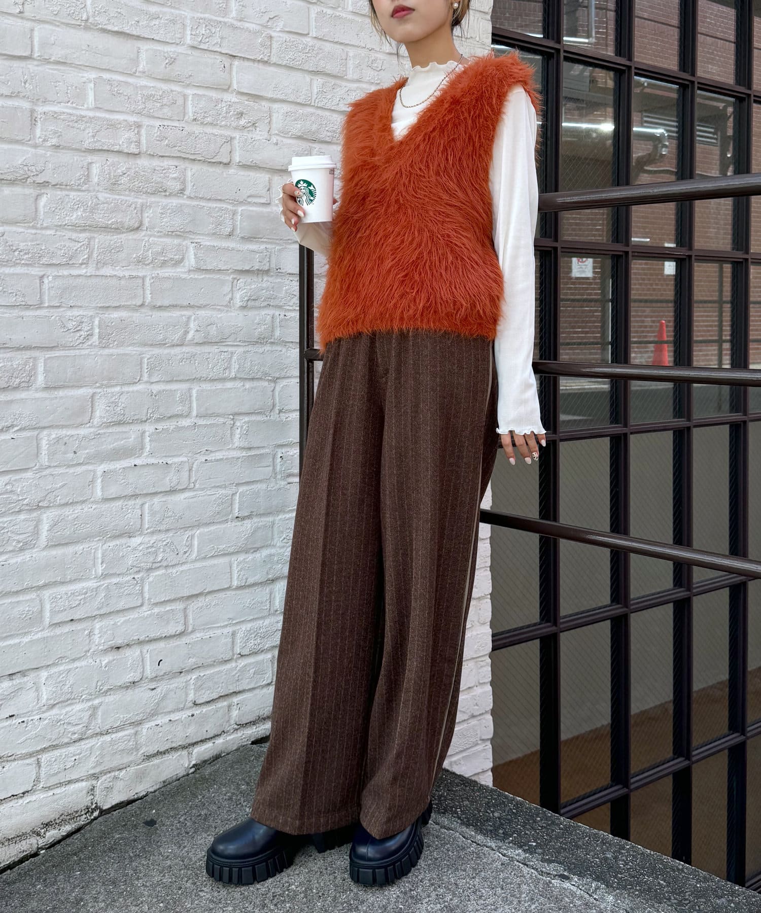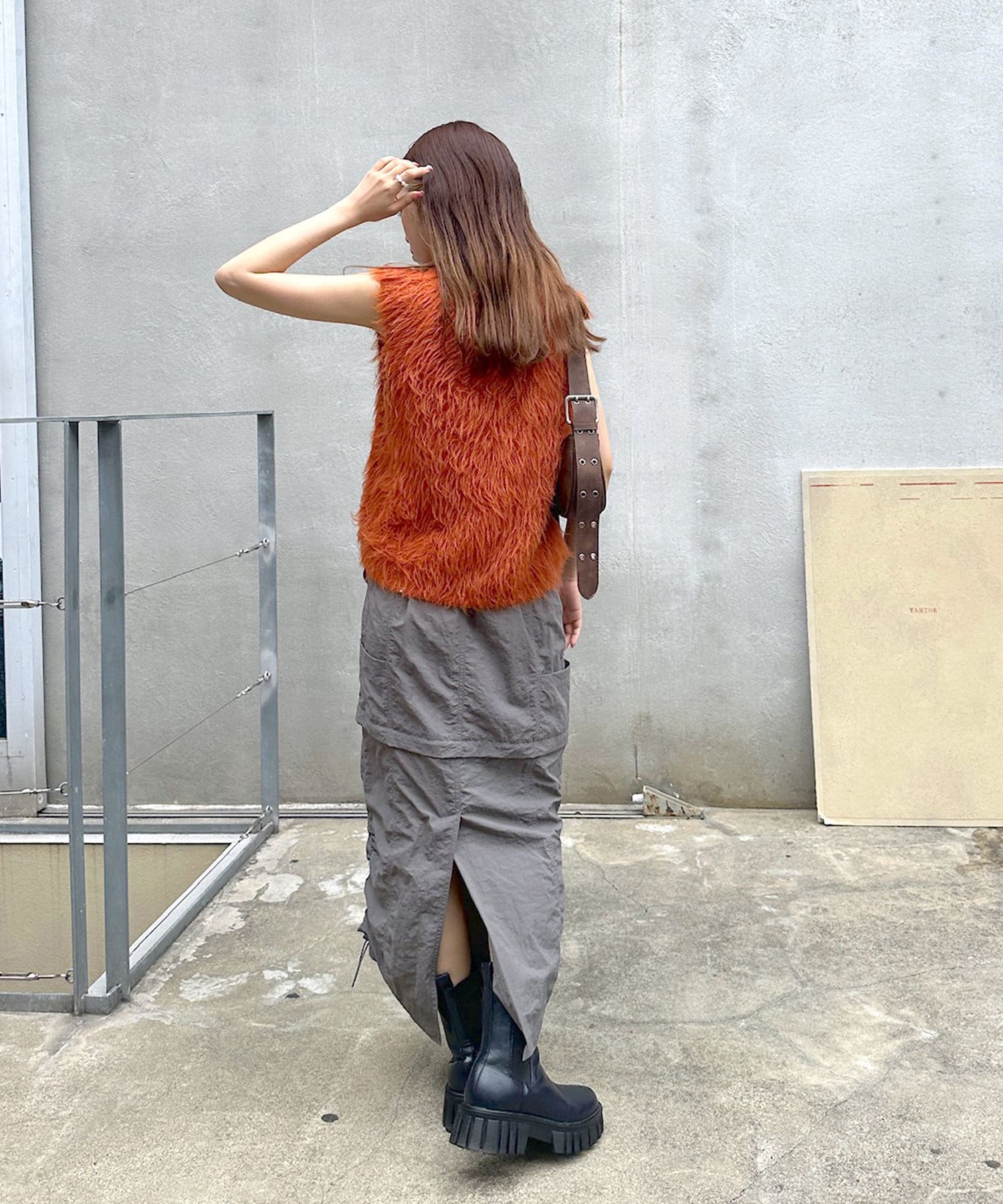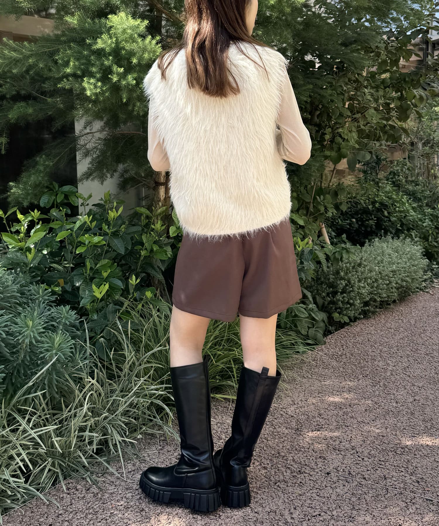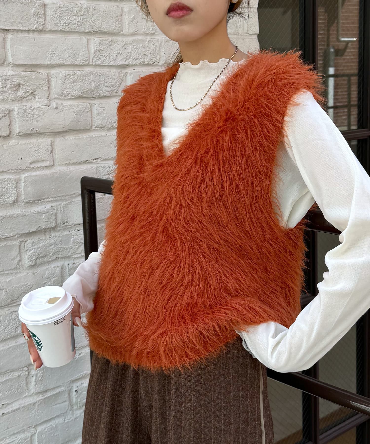 ・毛足長めの素材で一枚でコーデが決まるシルエット