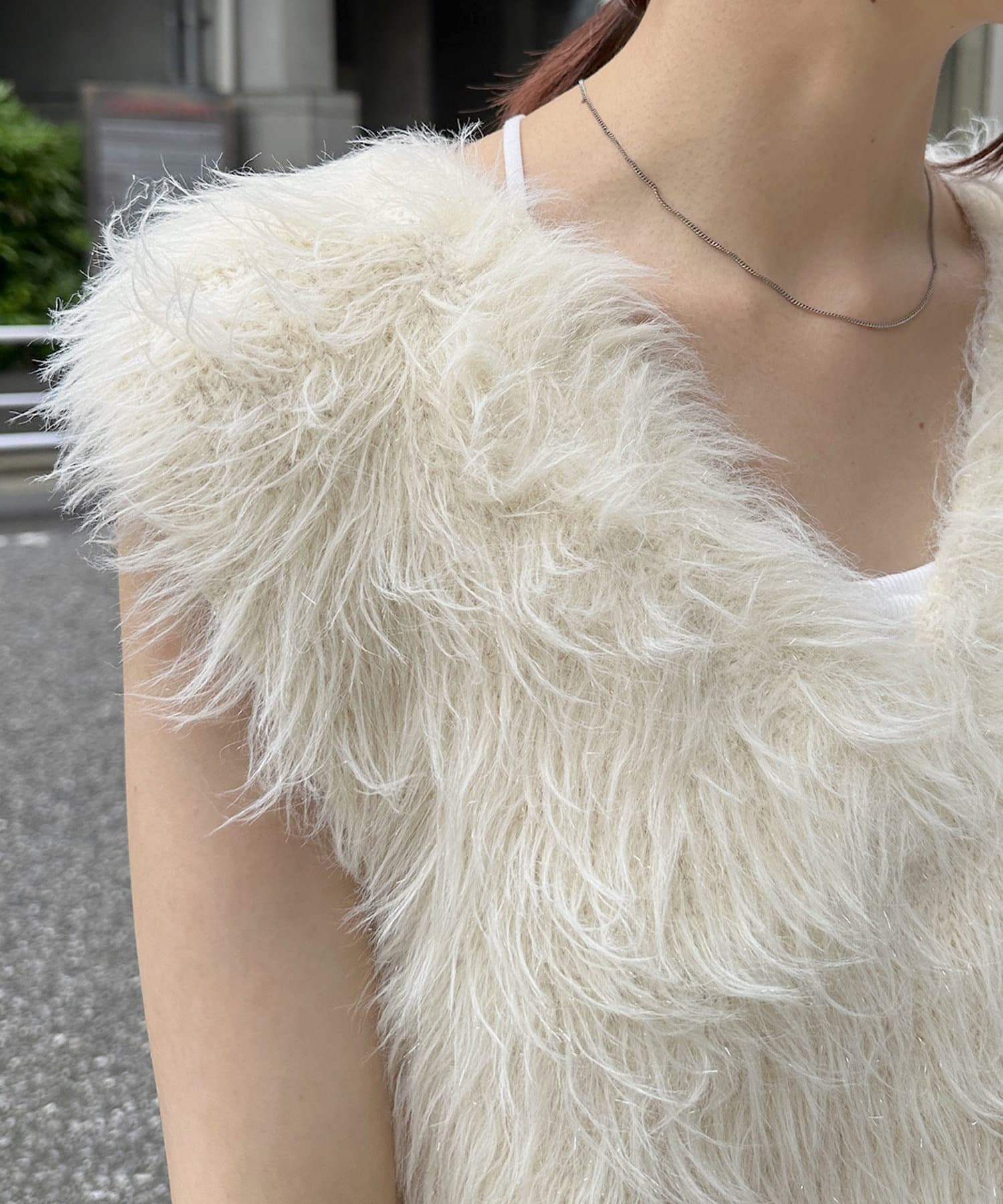 ラメ感がトレンドライクなフェザーベスト
