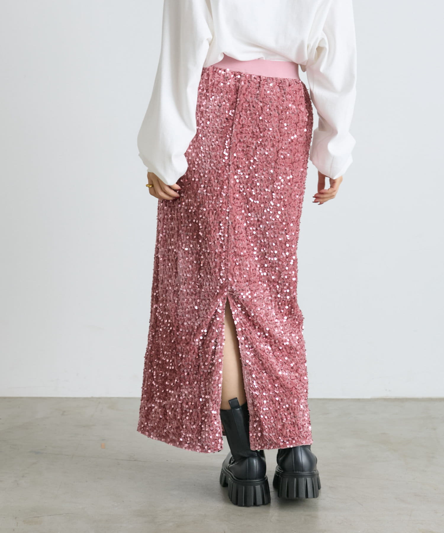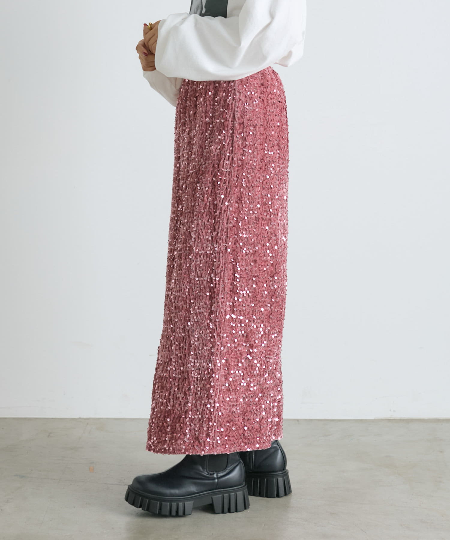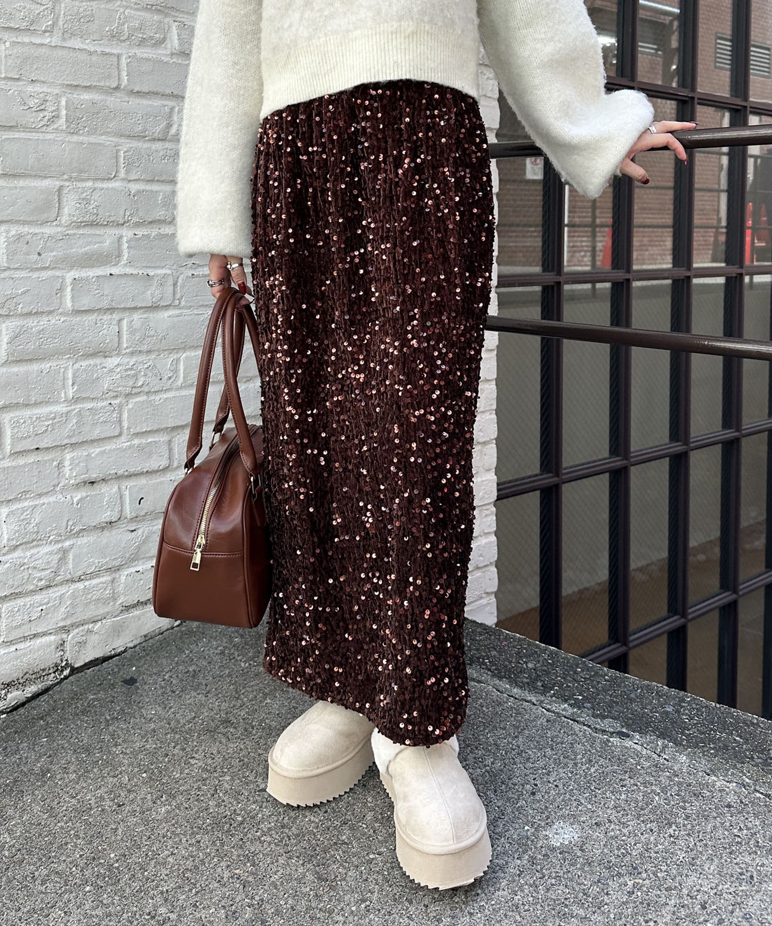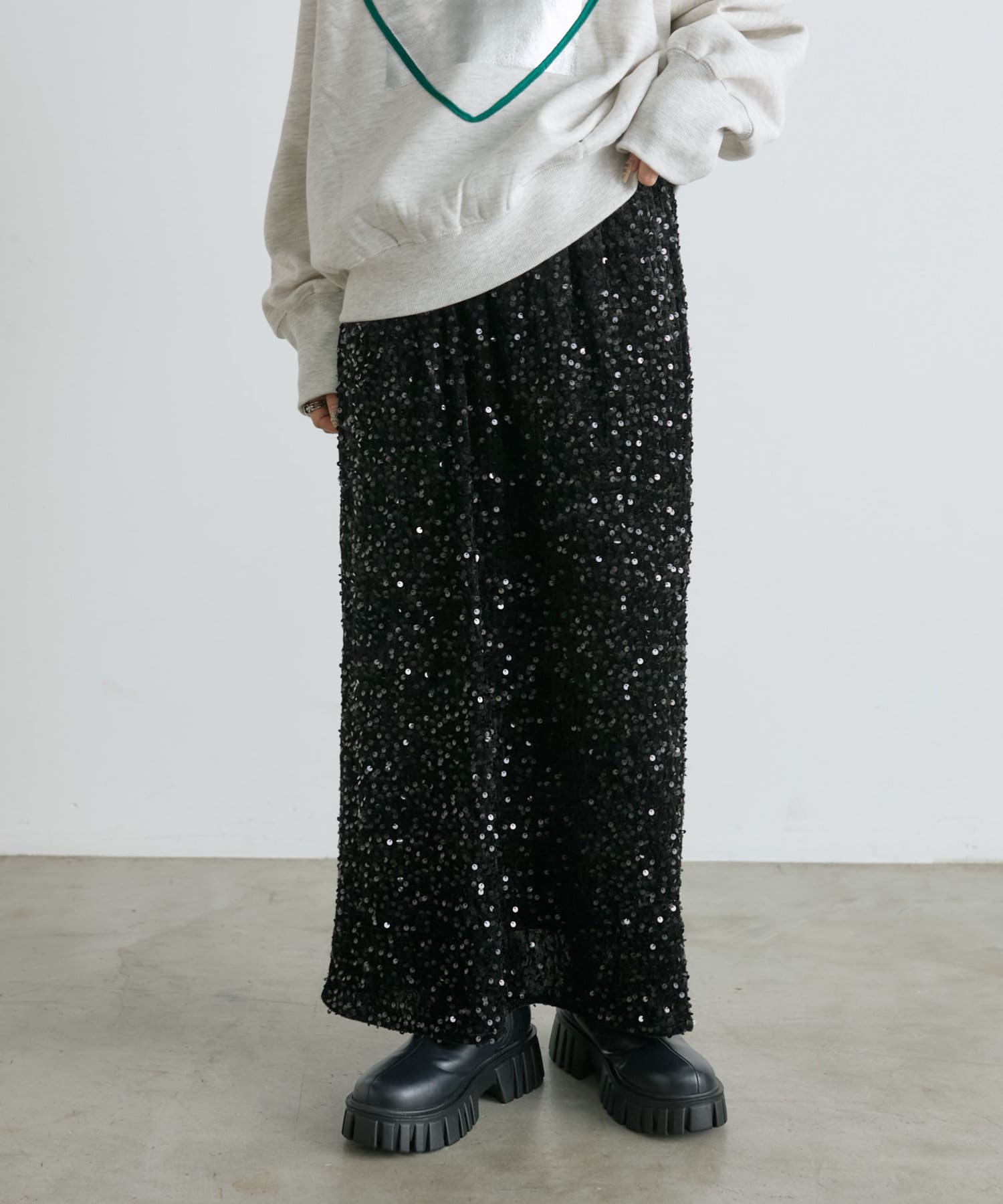 ・存在感のあるスパンコールを全面にあしらったロングスカート