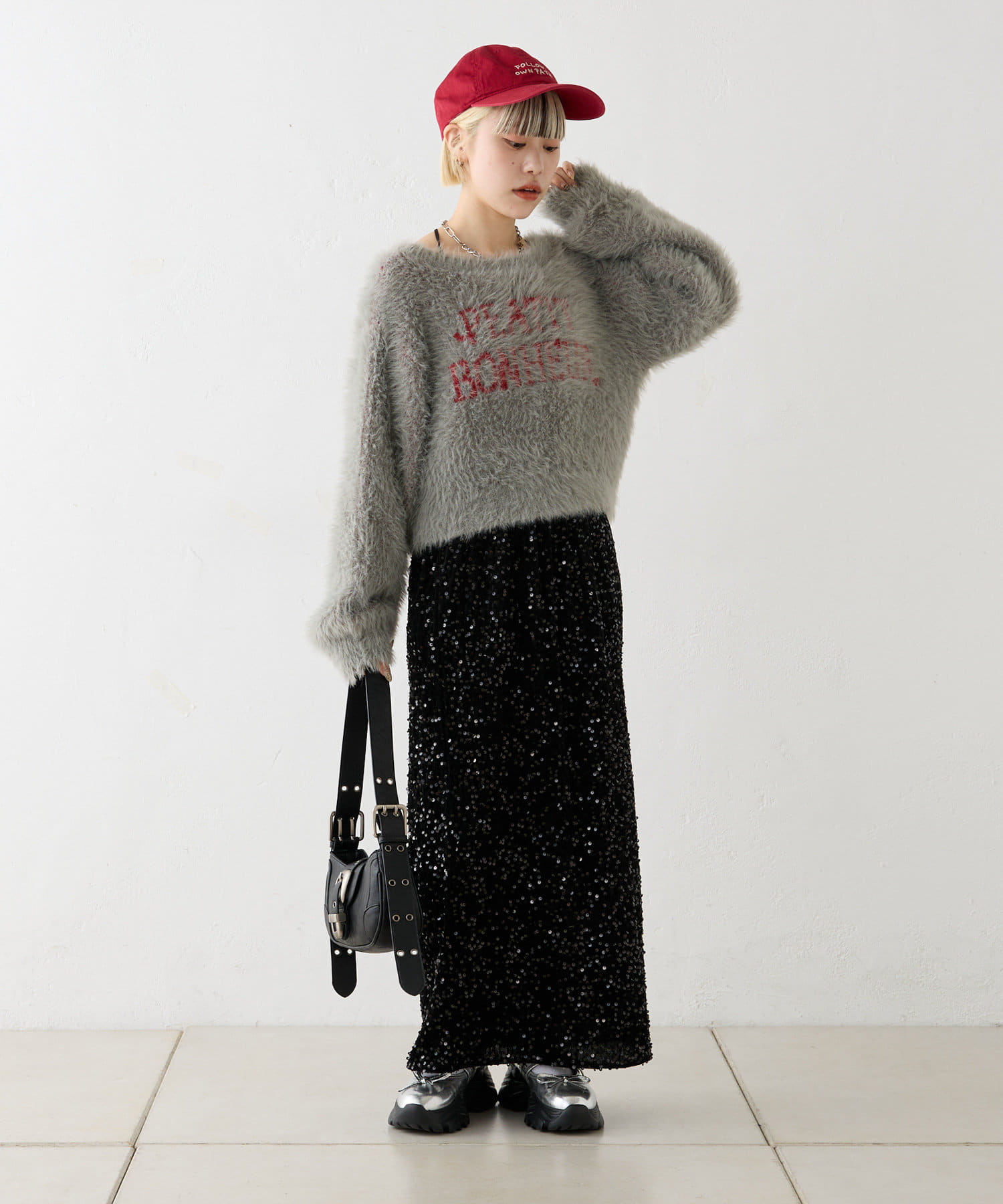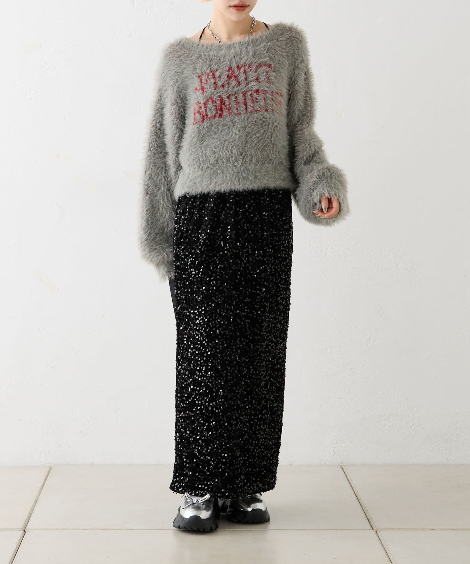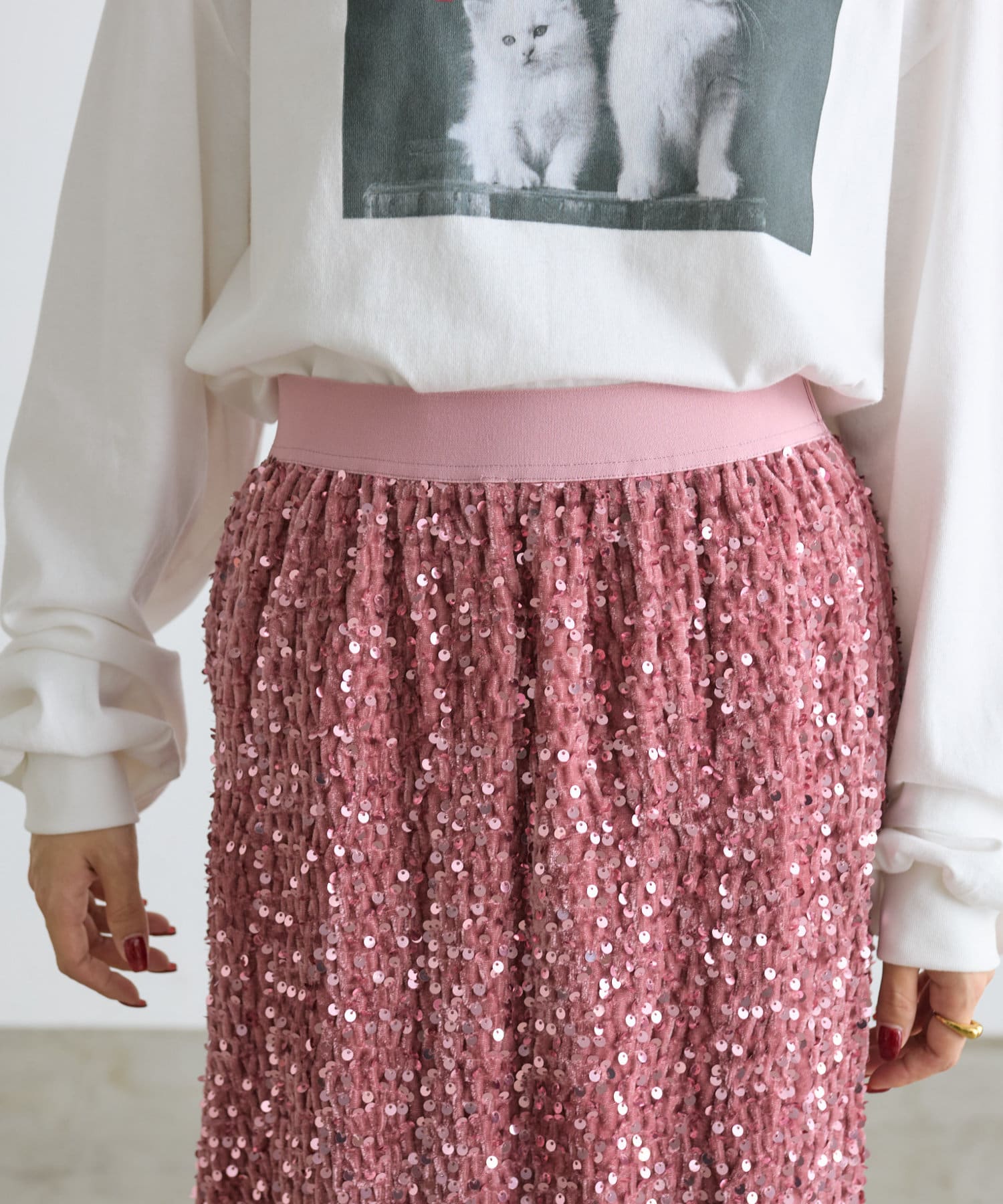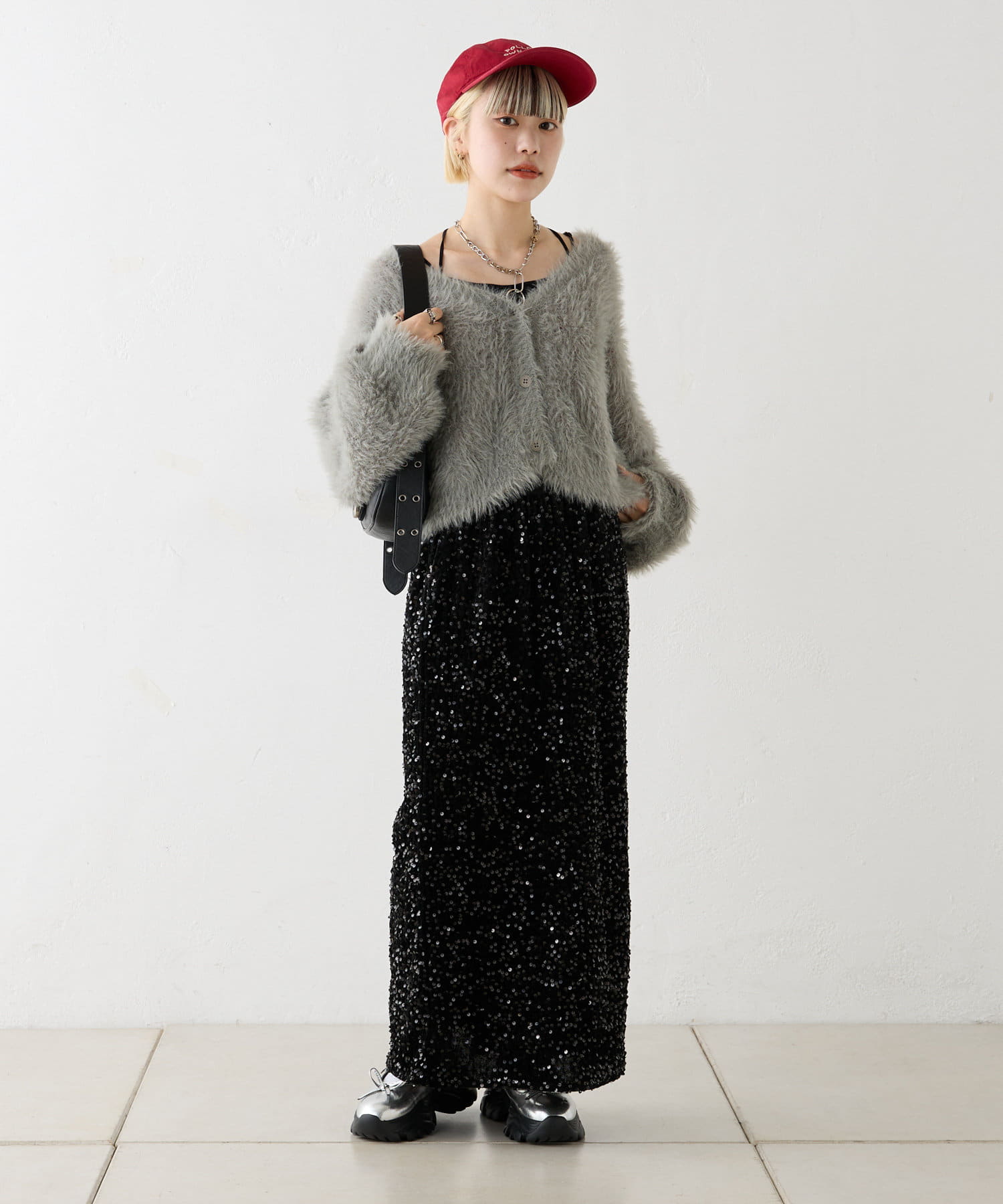 ・存在感のあるスパンコールを全面にあしらったロングスカート
