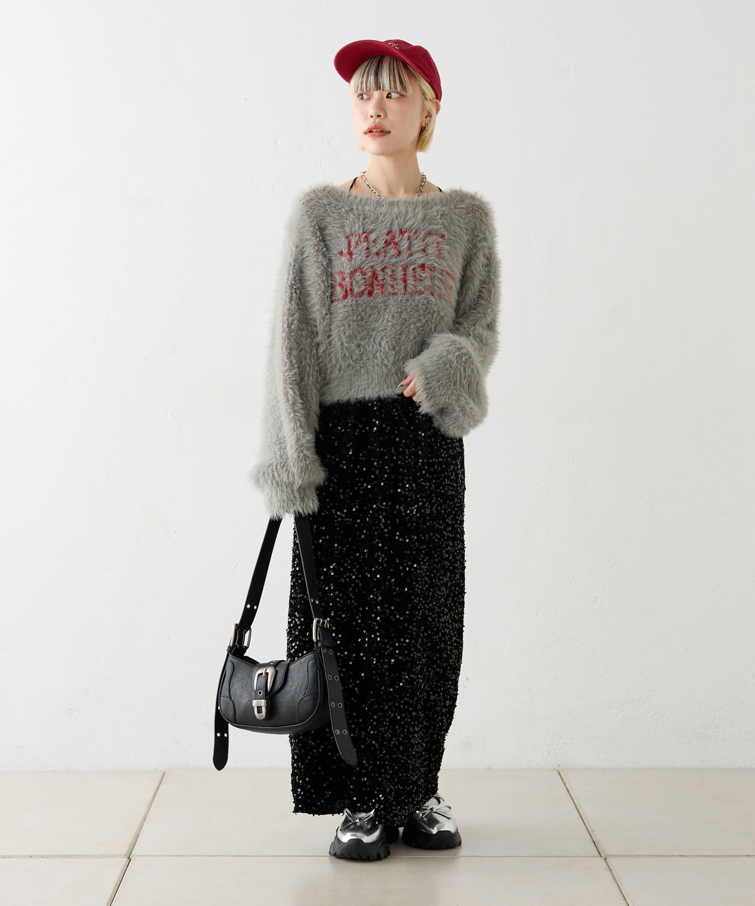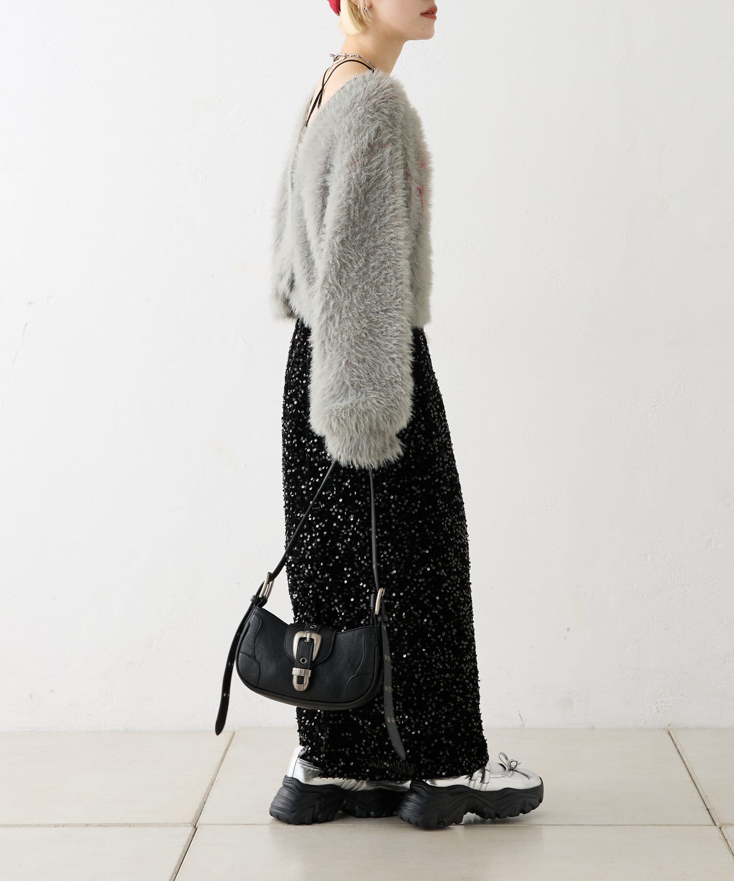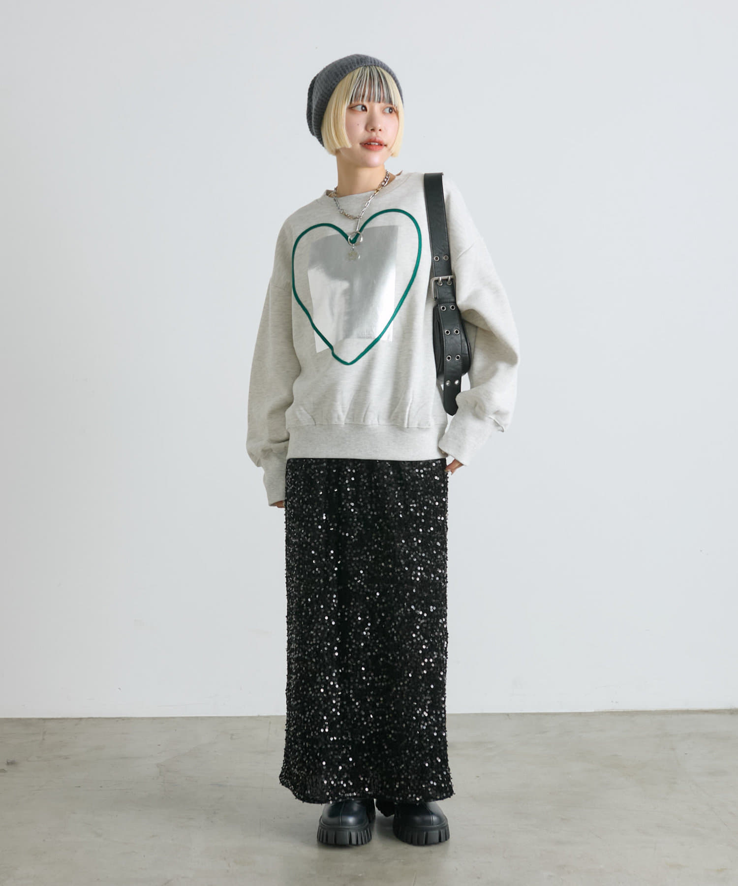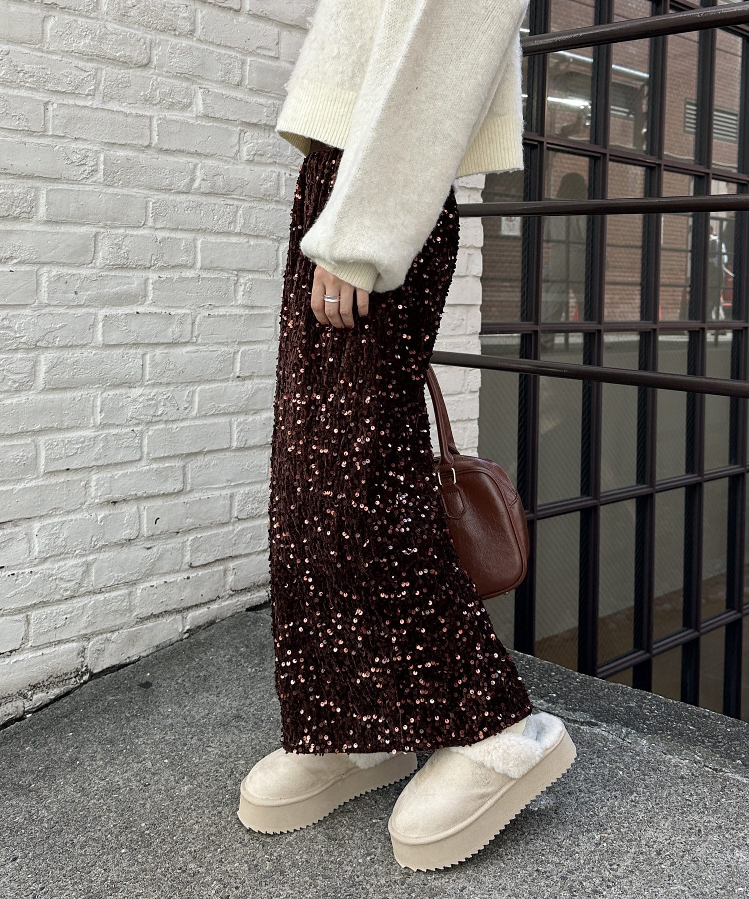 ・存在感のあるスパンコールを全面にあしらったロングスカート