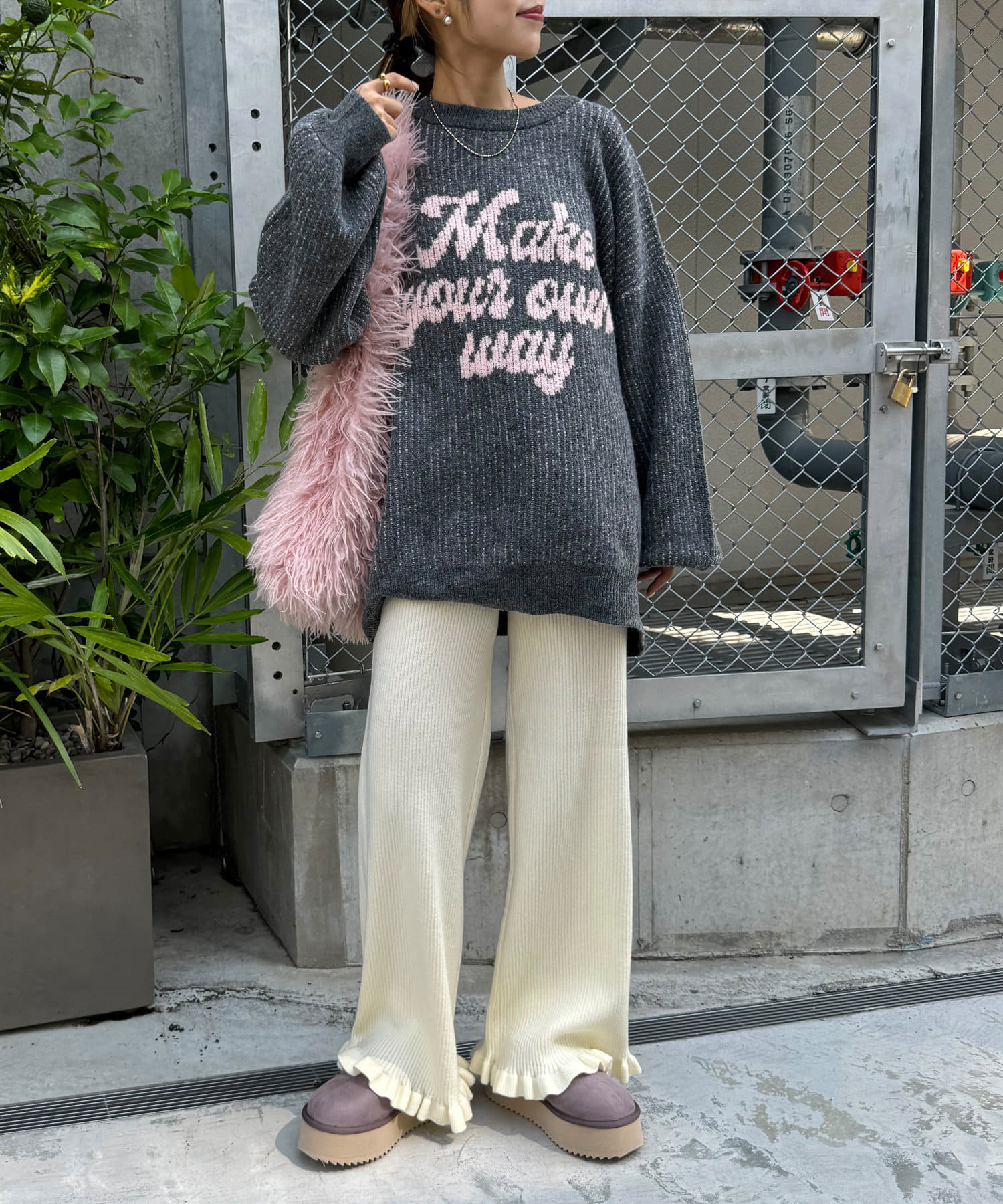 ・ラメ混素材のニットパンツでコーデを華やかにアップデートしてくれる1枚