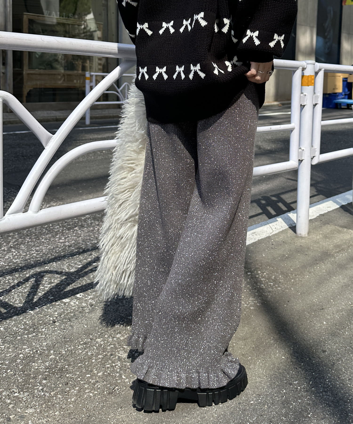 ・ラメ混素材のニットパンツでコーデを華やかにアップデートしてくれる1枚