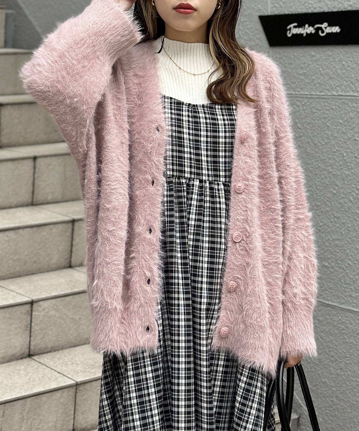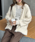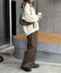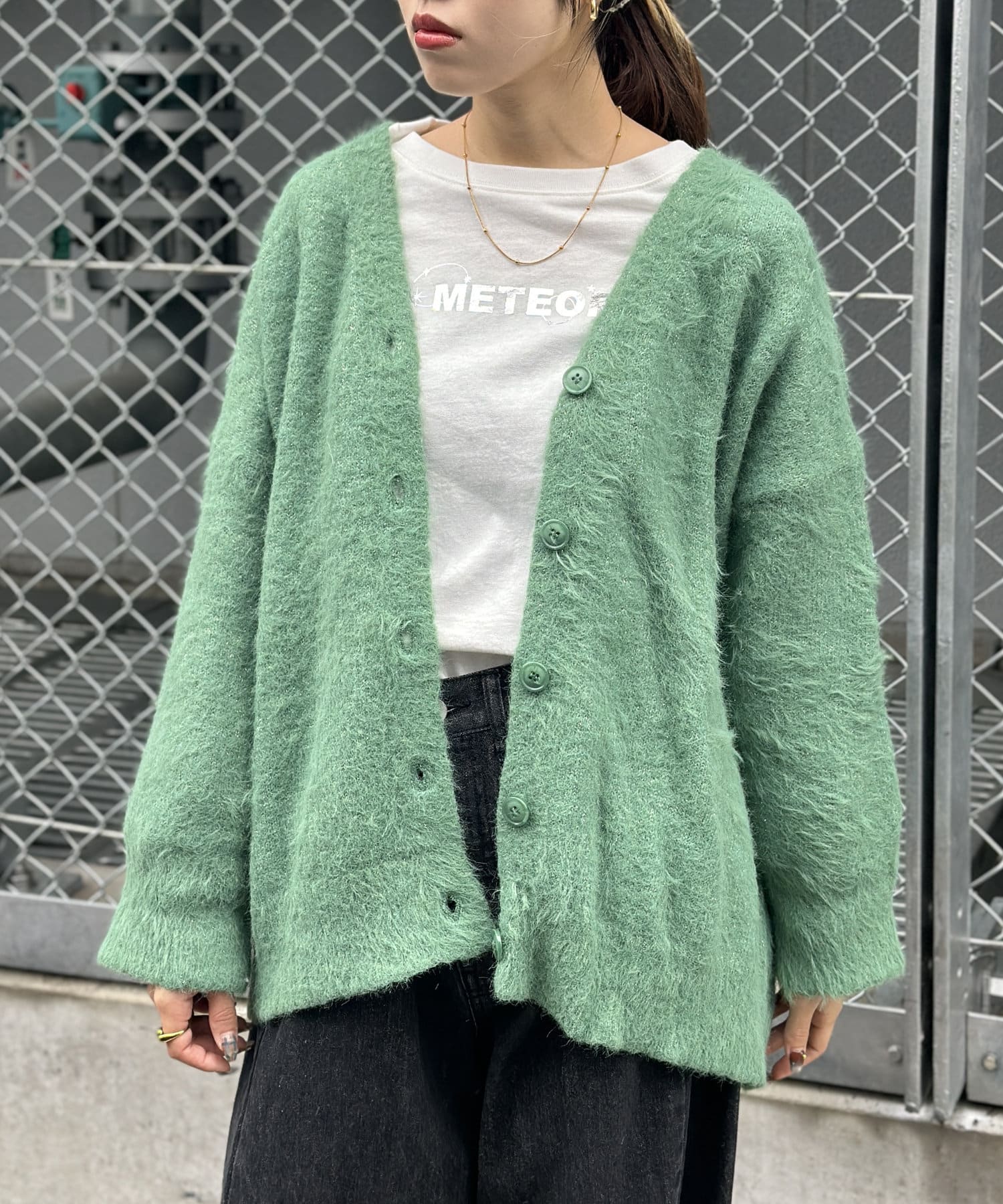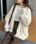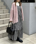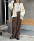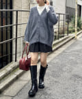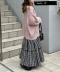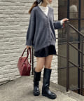 ・素材感のあるカーデなのでカーゴスカートやデニムなどシンプルなボトムスと合わせるのがおすすめです