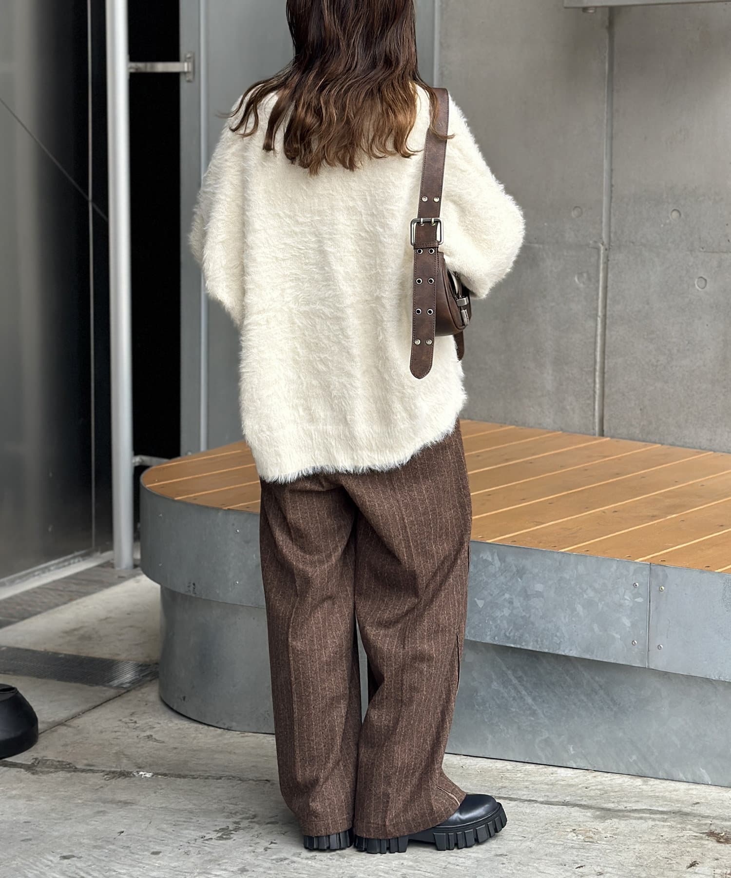 ・毛足の長いフェザーにラメ混素材を使用しているのでレディライクな印象に◎