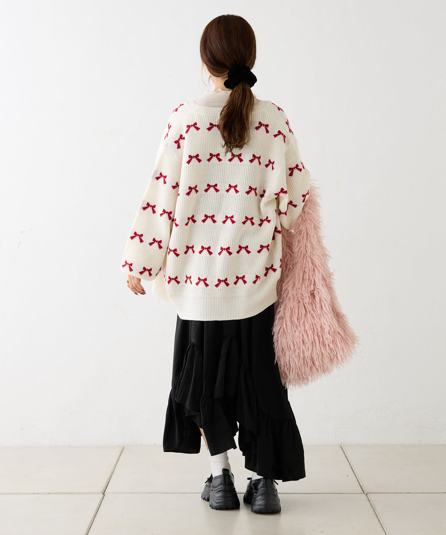 ・インパクトのある柄なので、全体はシンプルにまとめて、カーディガンを主役にするようなスタイリングが◎
