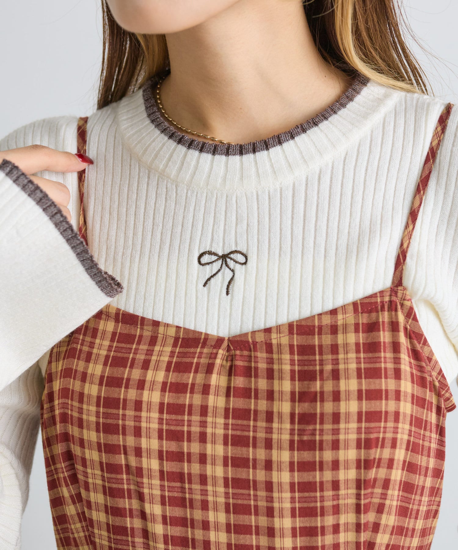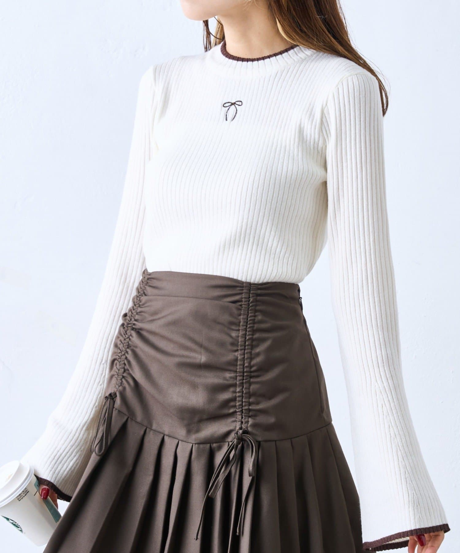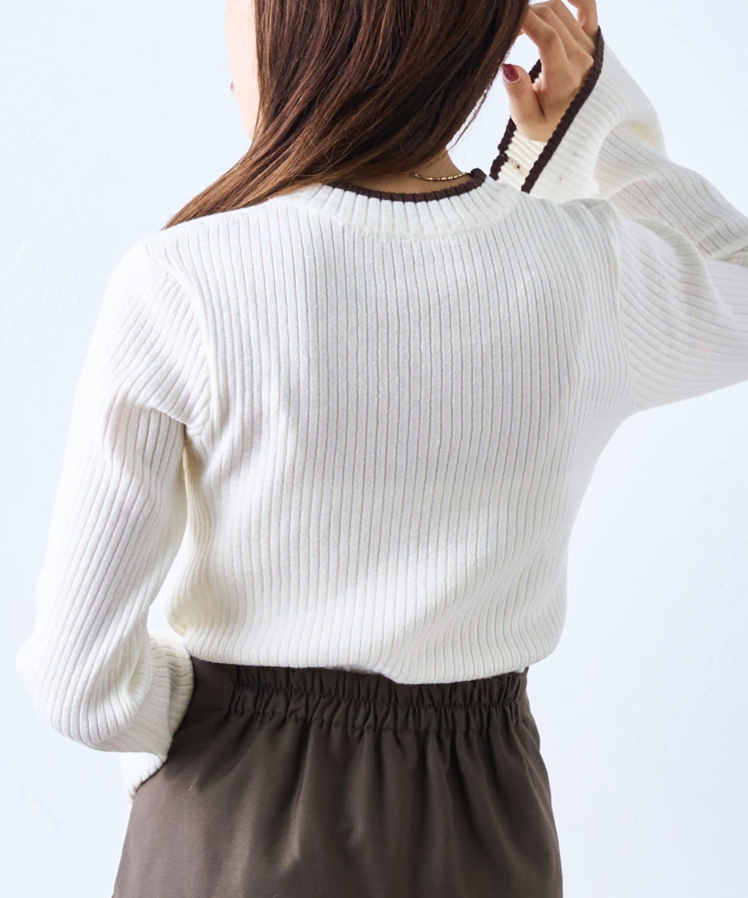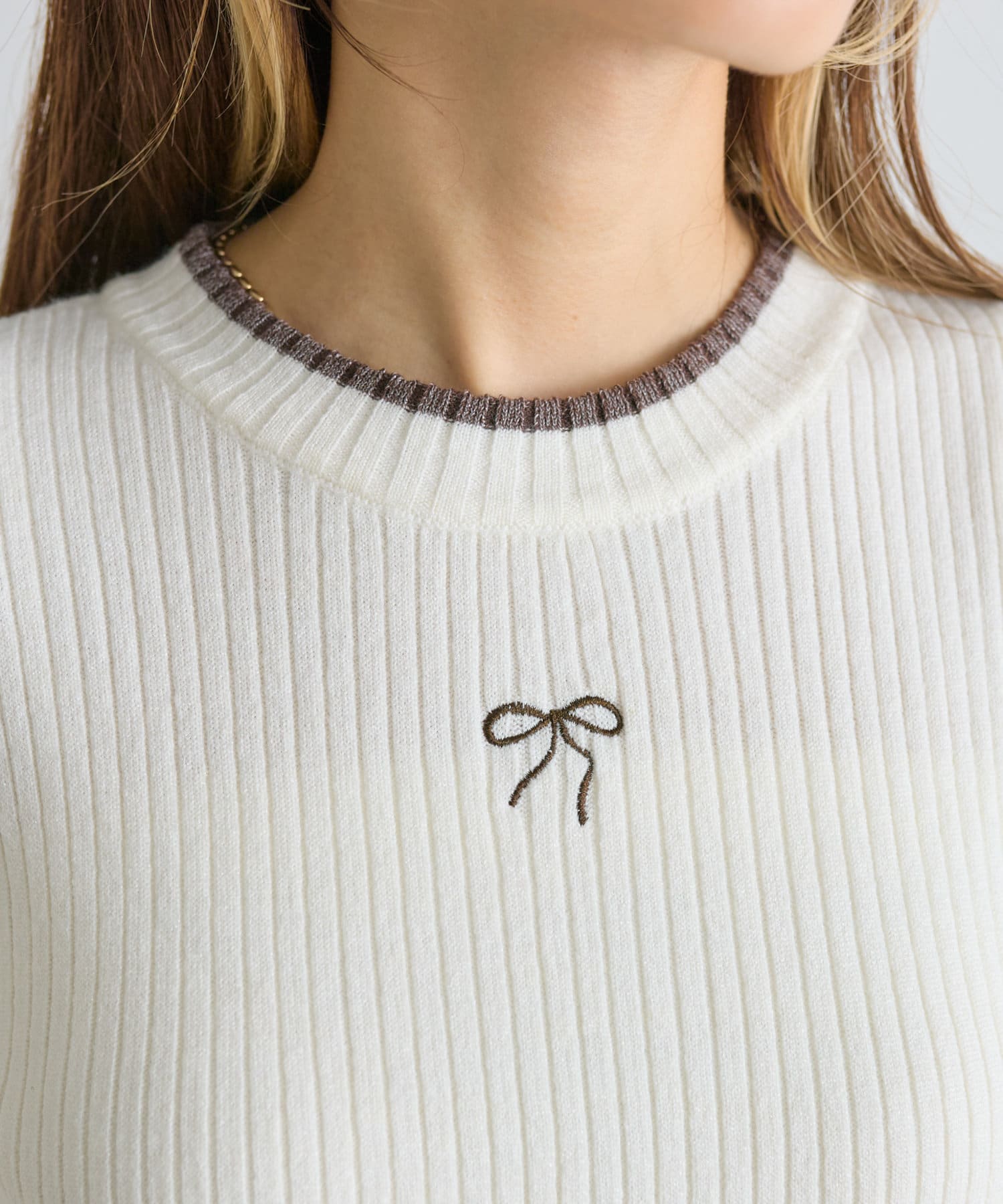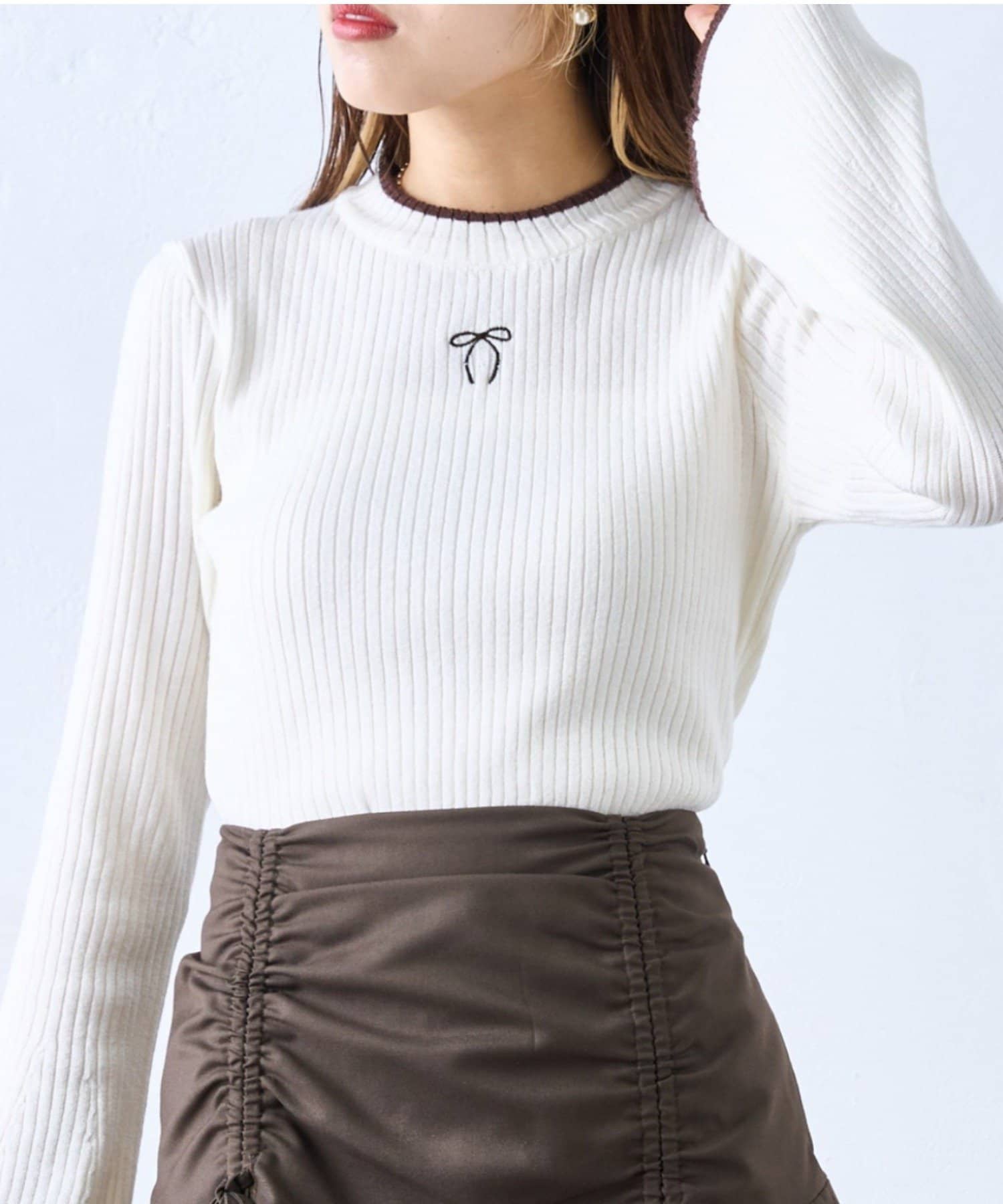 リボン刺繍リブニット