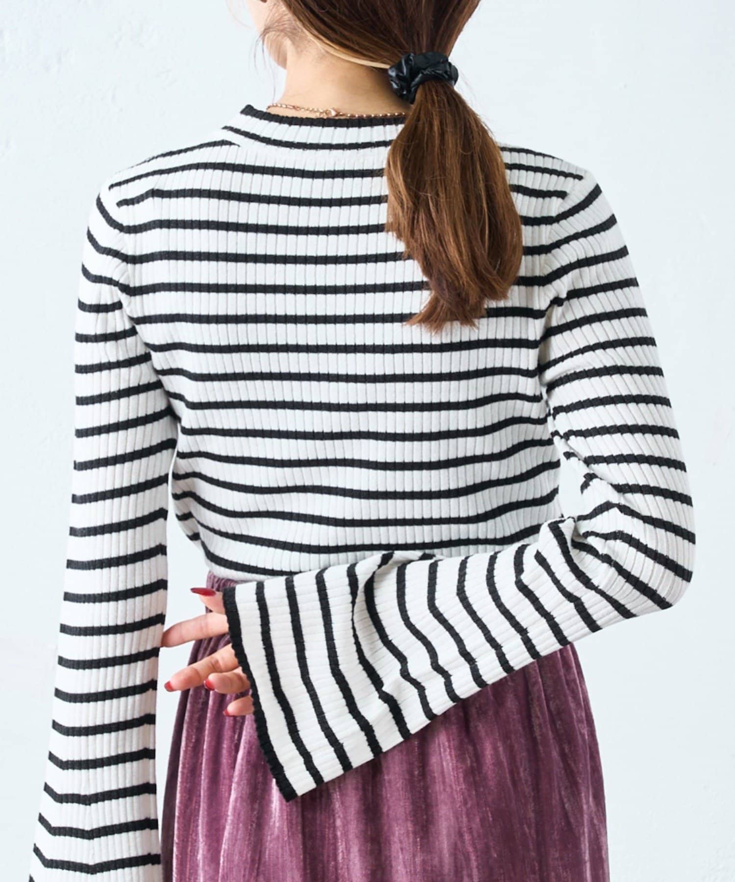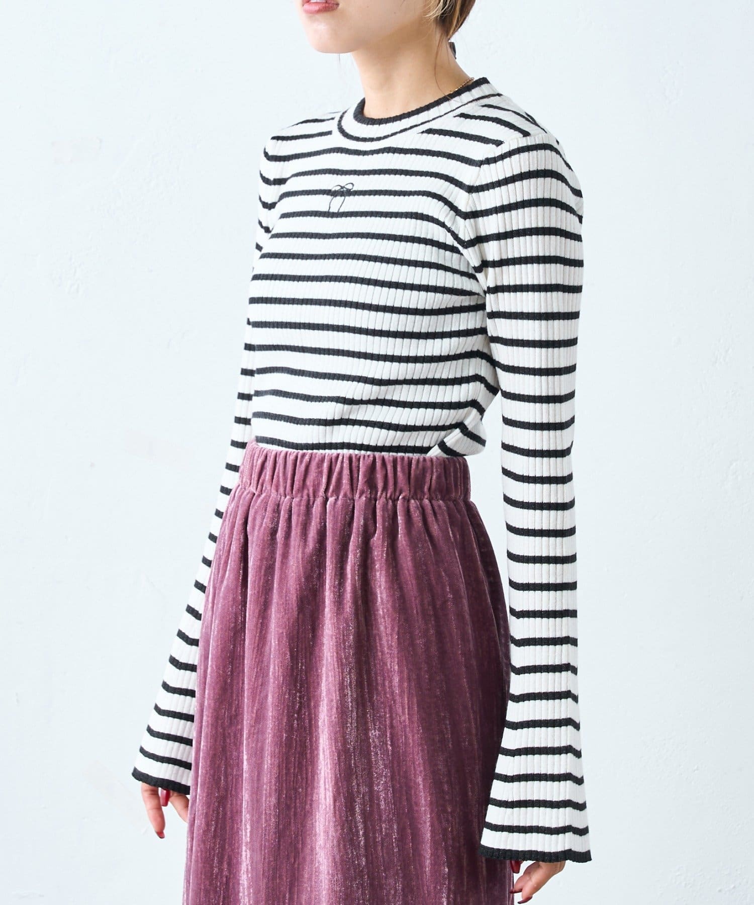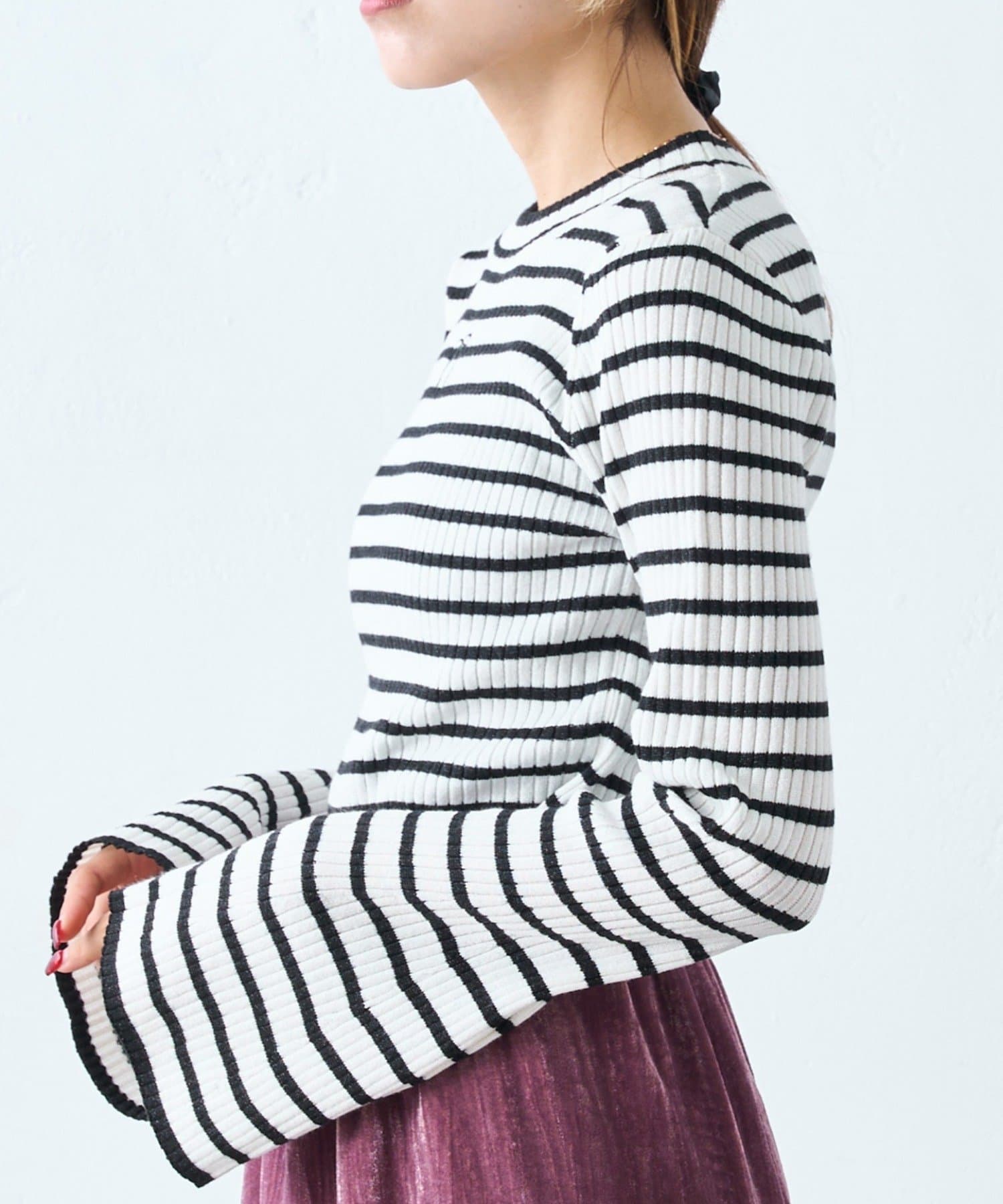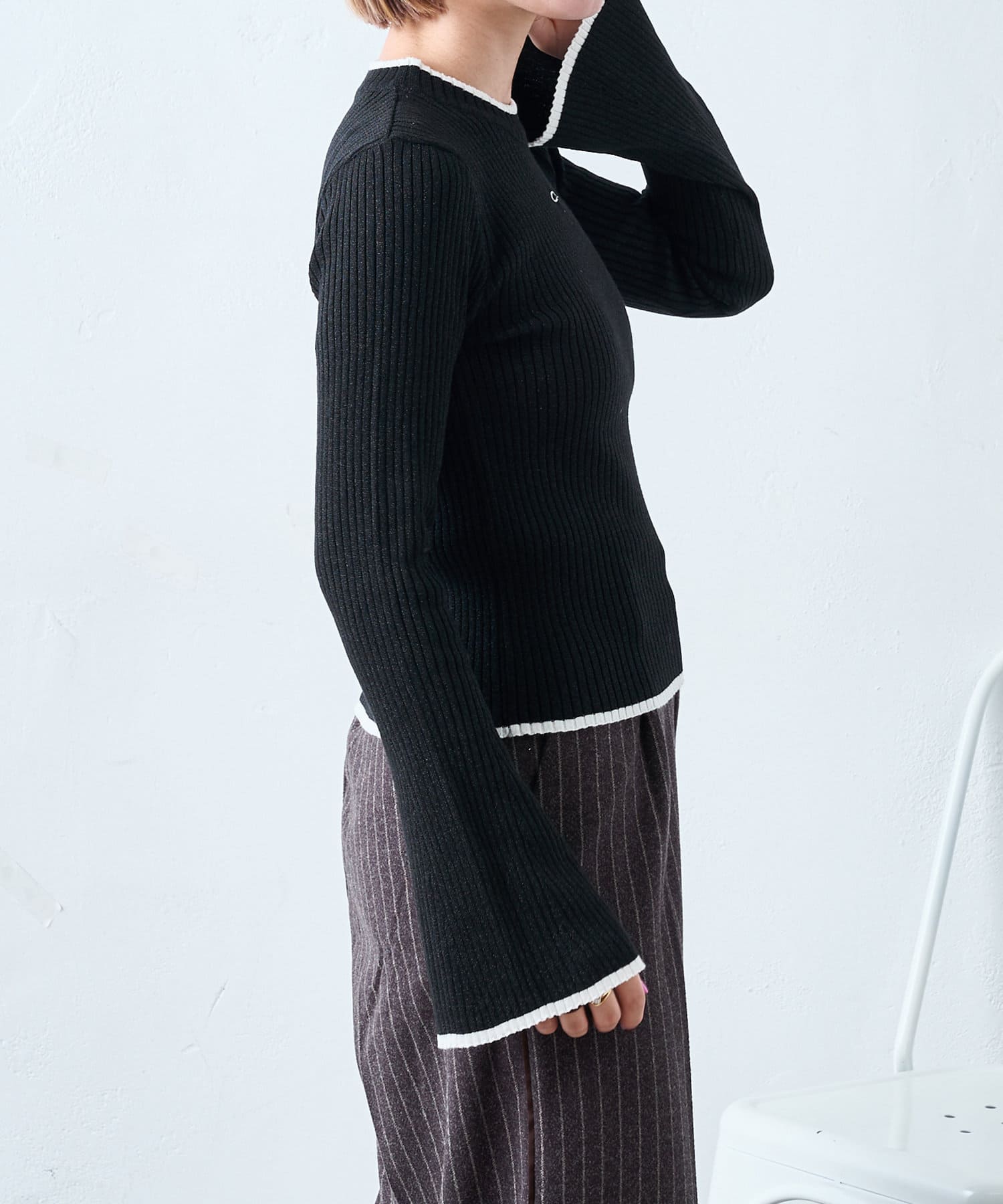 ・体にフィットするリブ素材に袖フレアデザインでメリハリのあるシルエット