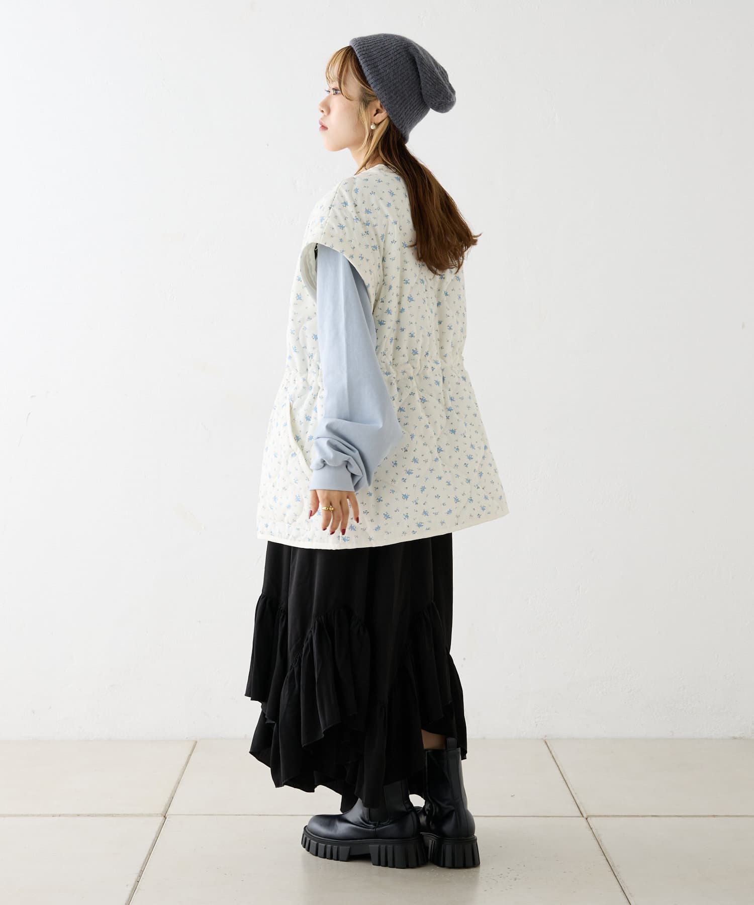 ・アームホームもゆるっとめなので厚手なニットやスウェットにも羽織りやすいサイズ感です