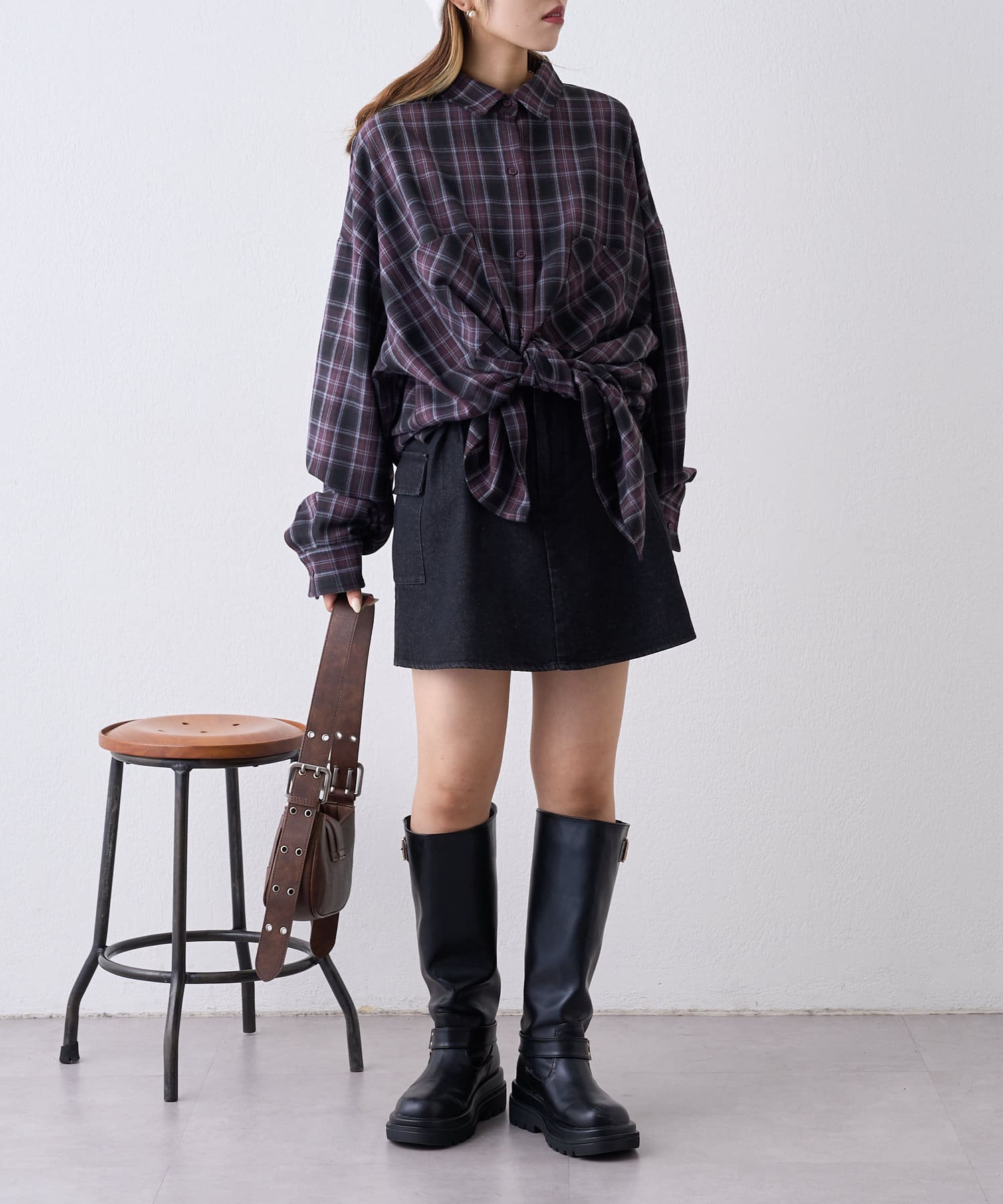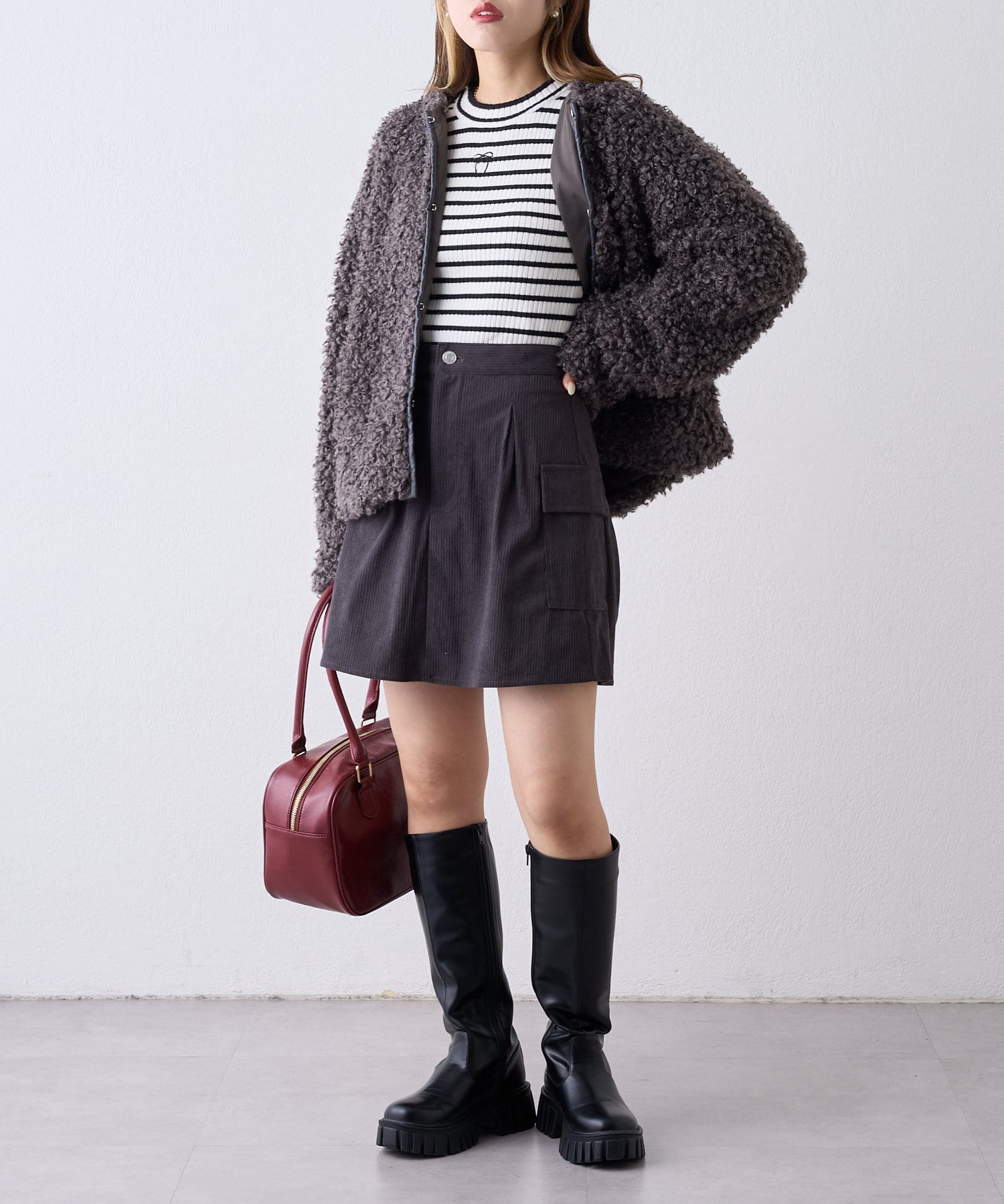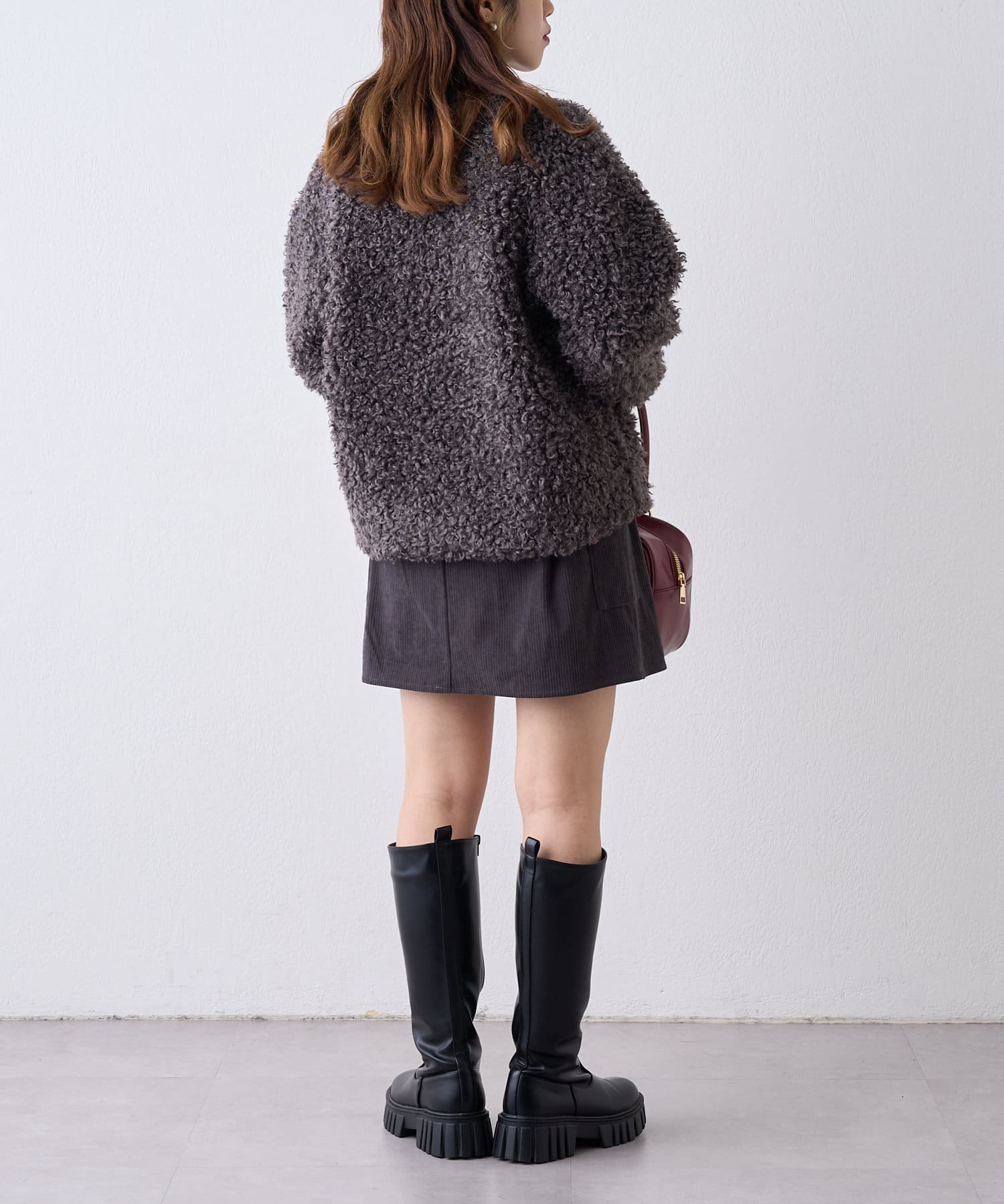・オーバーサイズのアウターを合わせて足元はロングブーツを合わせると冬のお出かけコーデが完成します