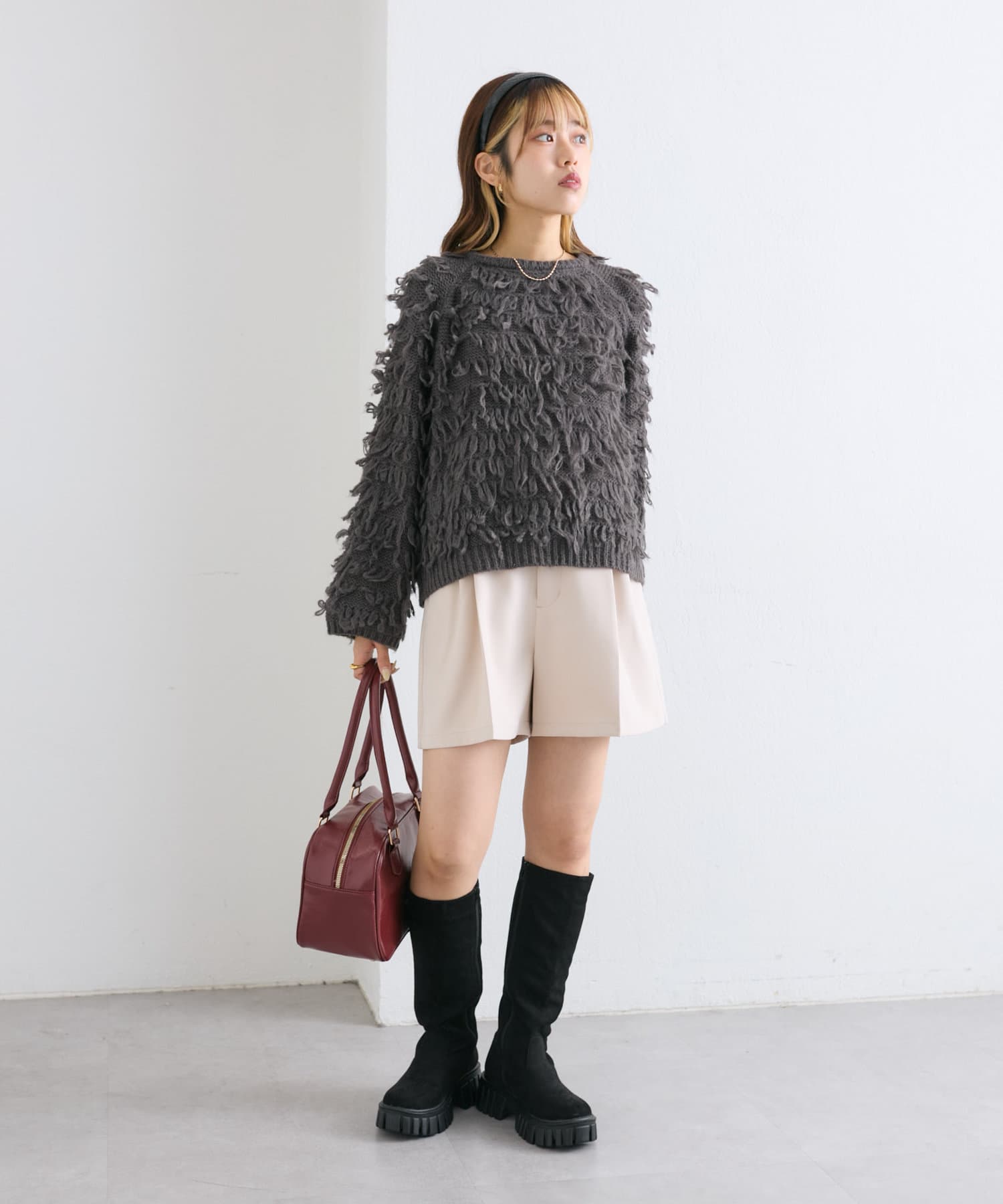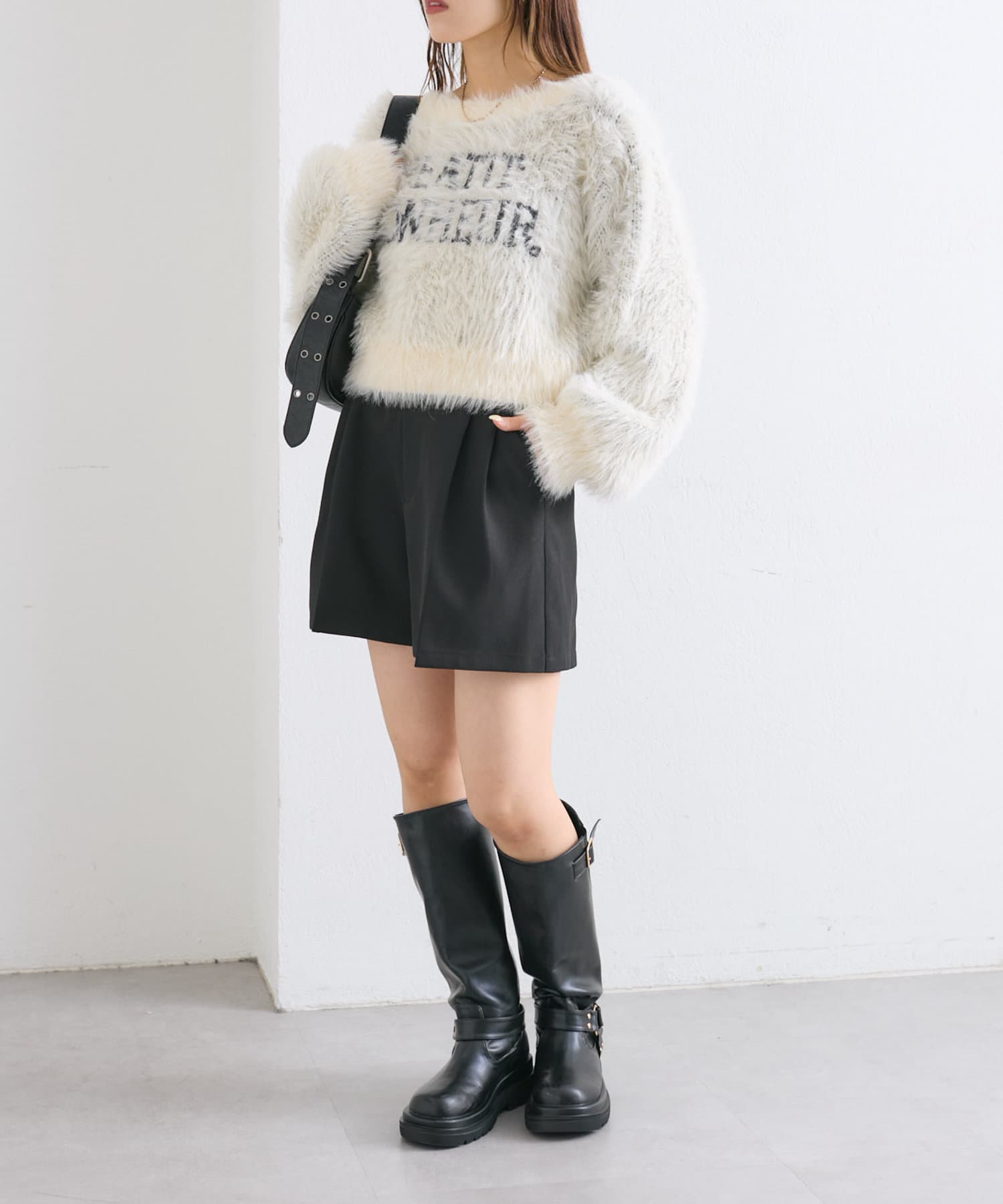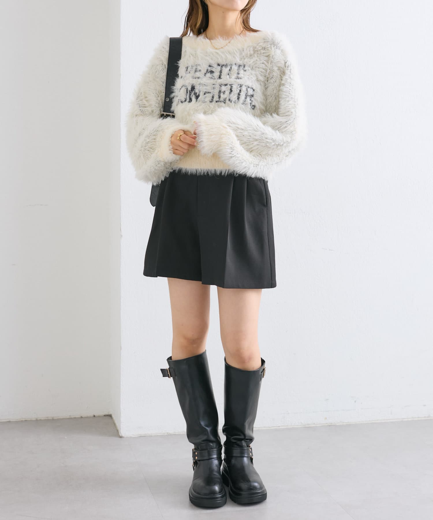 ・クロップド丈のニットを合わせたスッキリとした着こなしが今っぽくて可愛い!