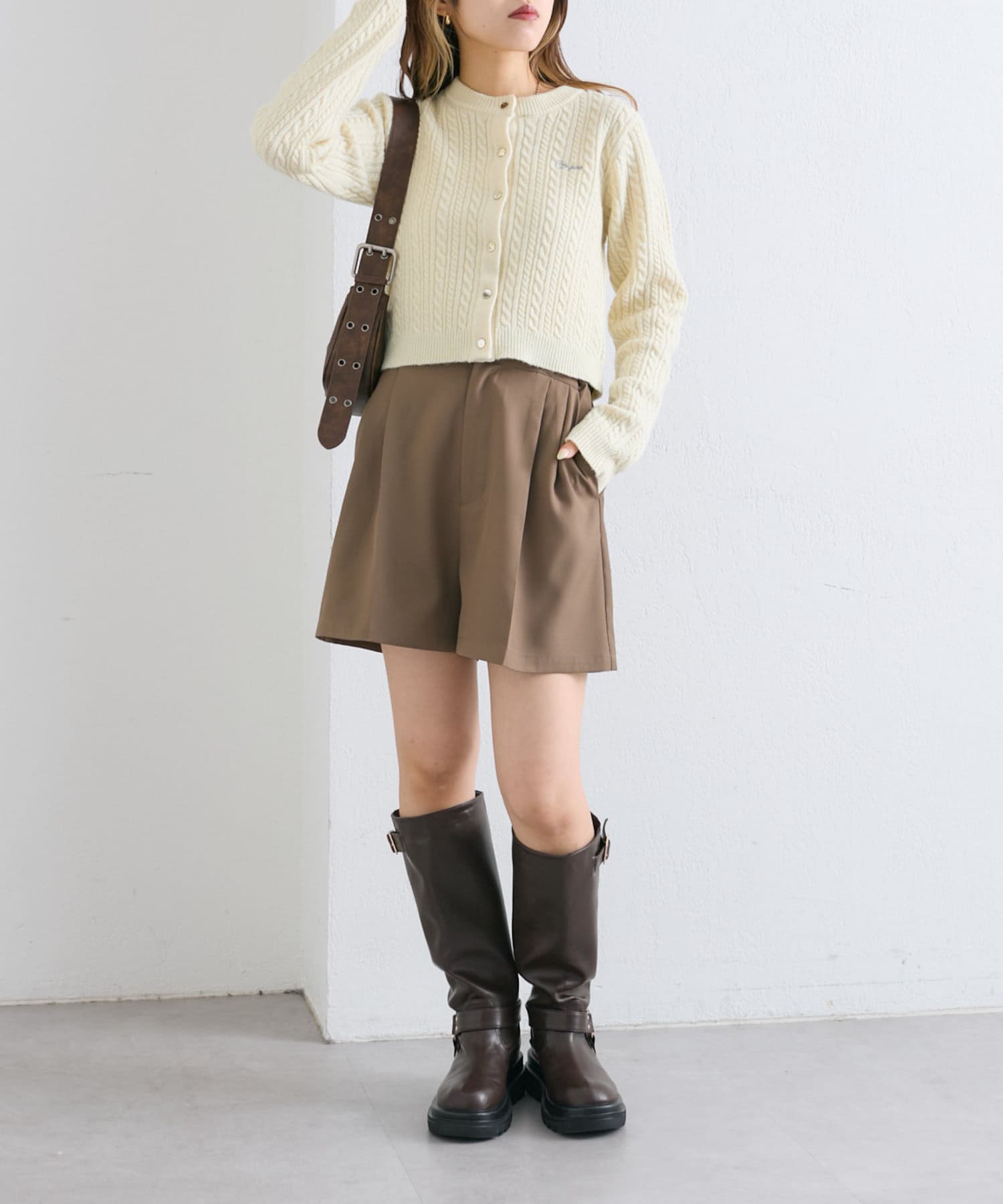 ・クロップド丈のニットを合わせたスッキリとした着こなしが今っぽくて可愛い!
