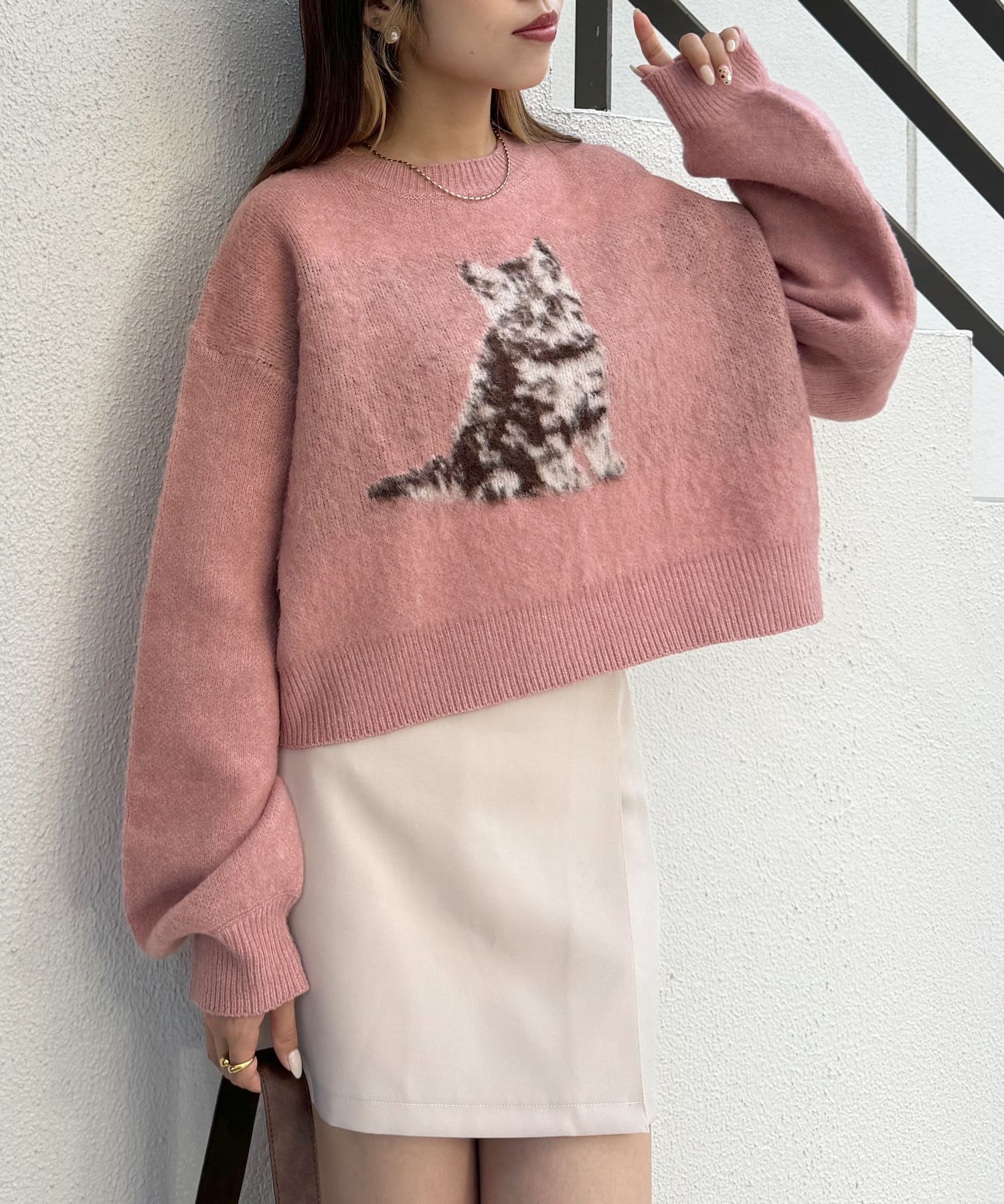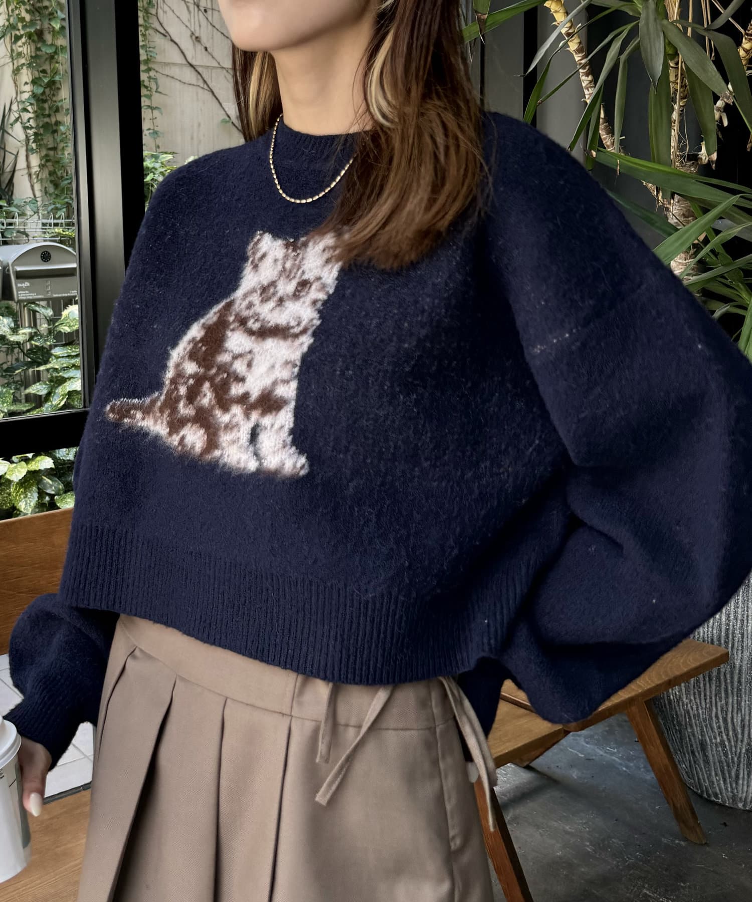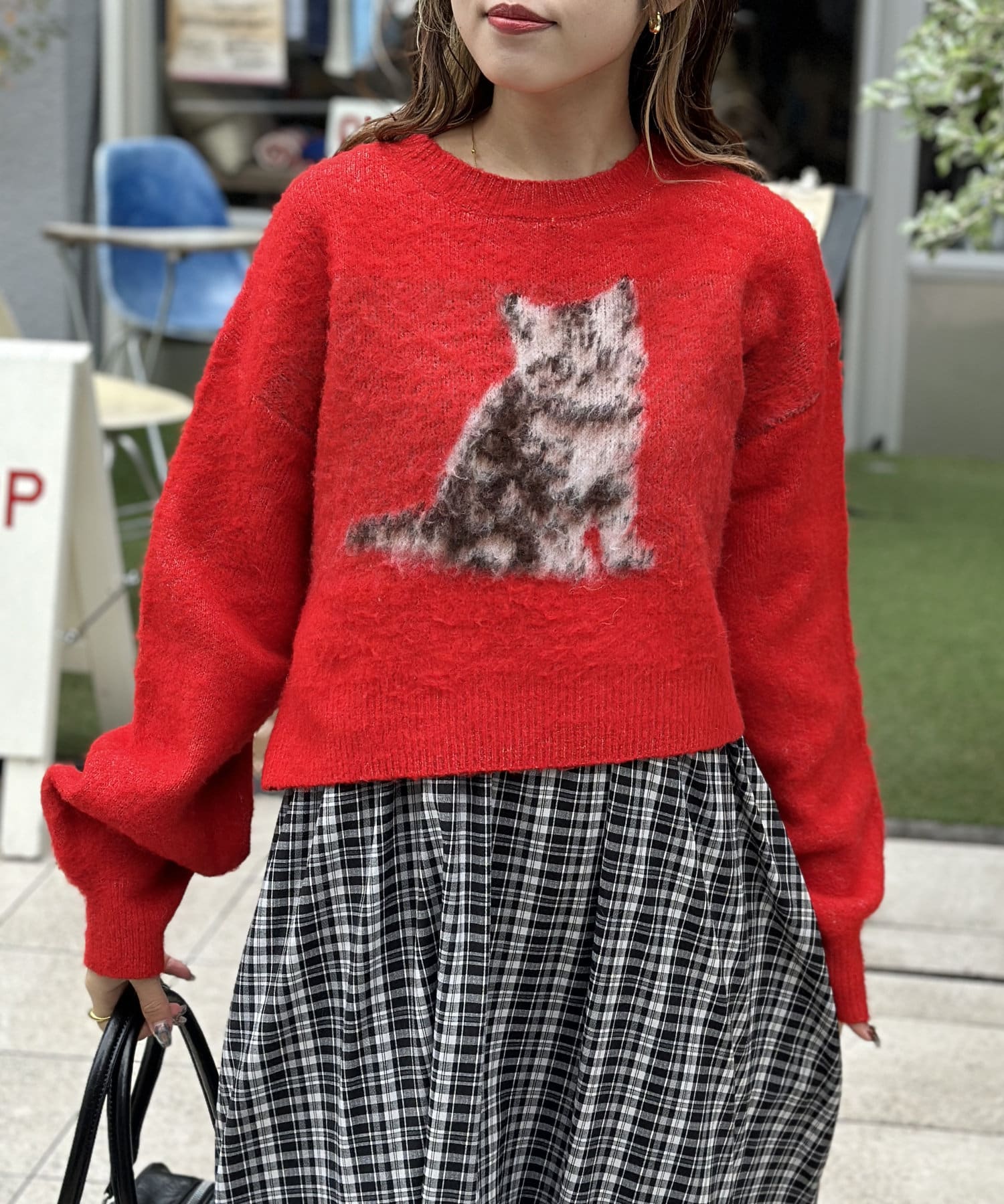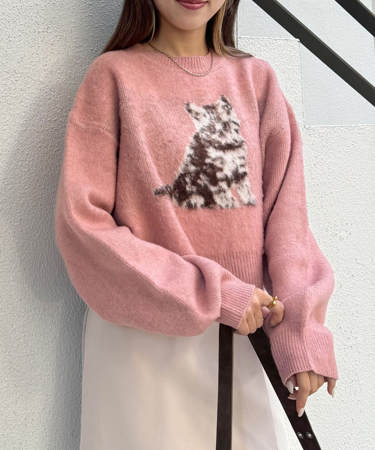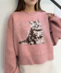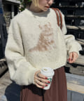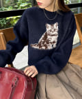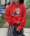 ネコちゃんがキュートなフェミニン×カジュアルニット◎