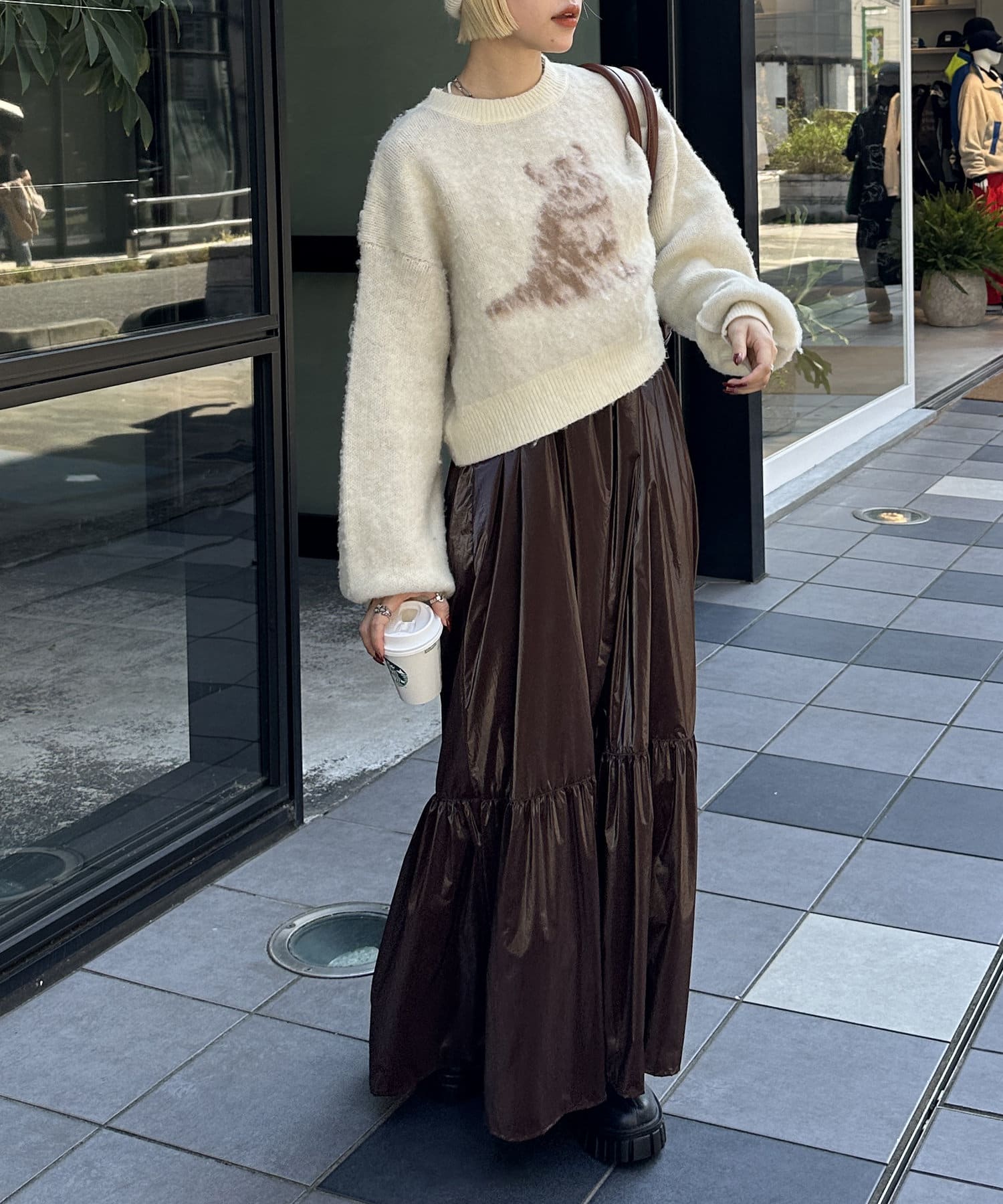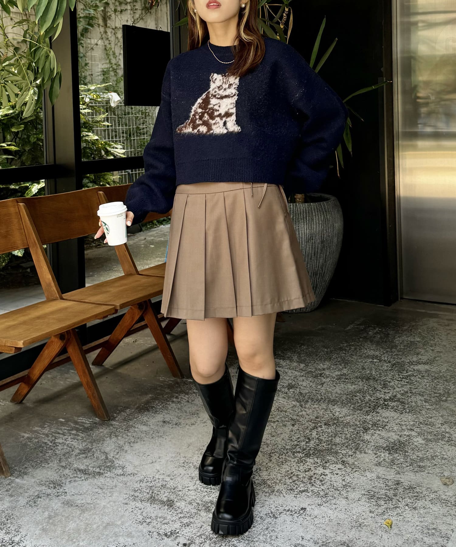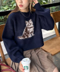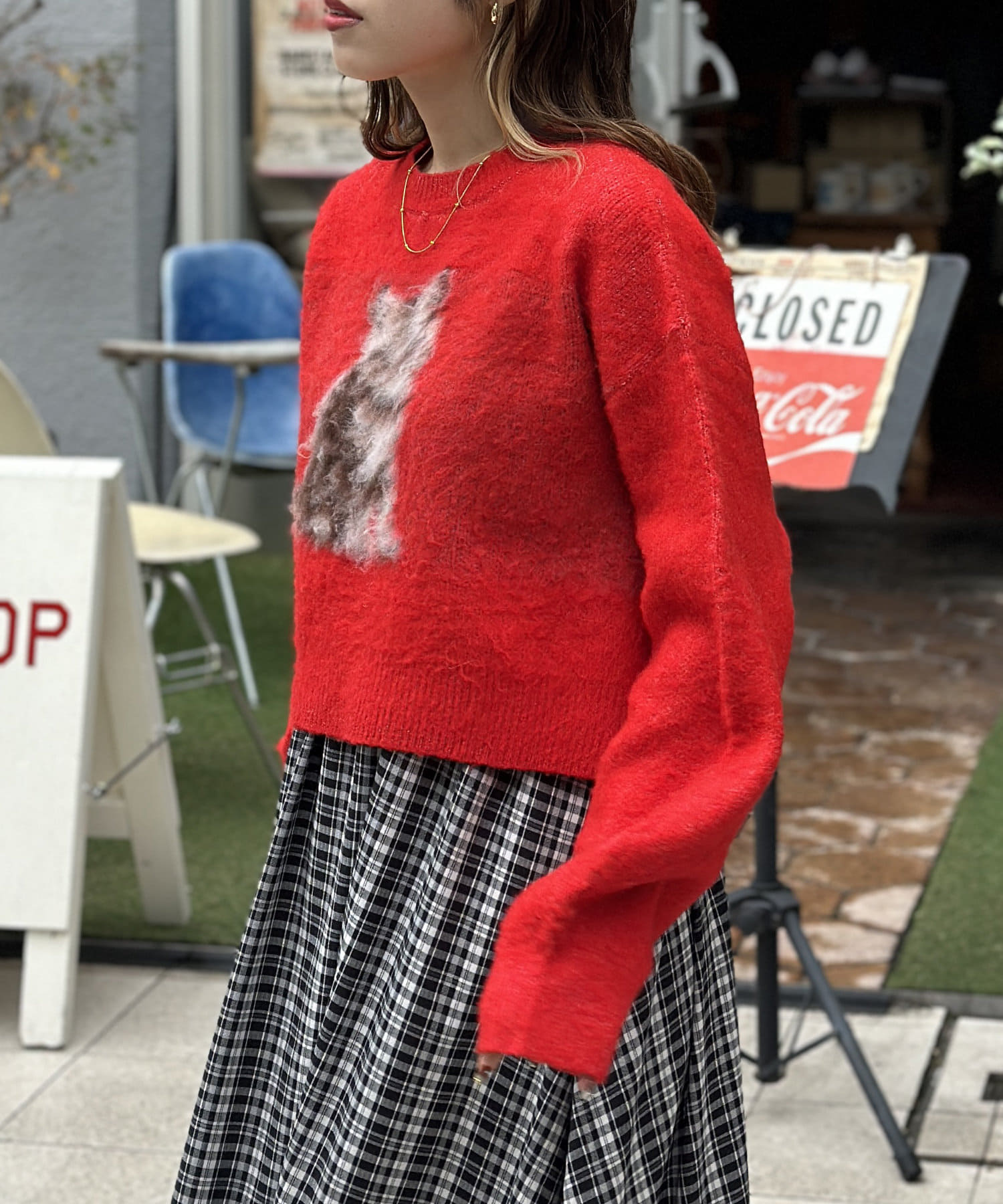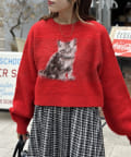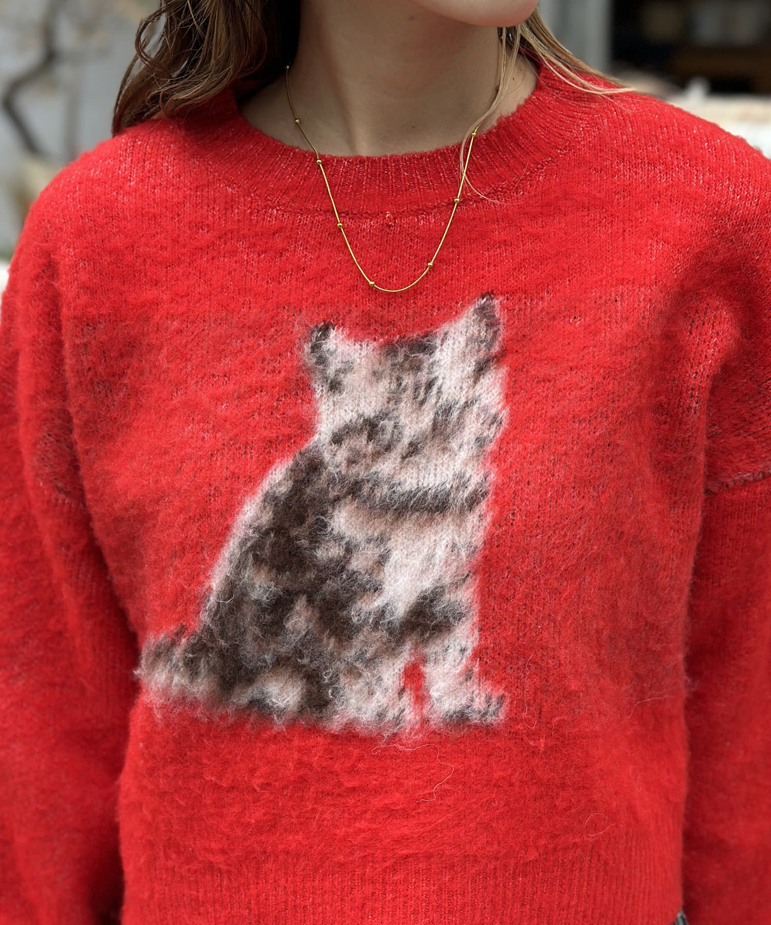 ネコちゃんがキュートなフェミニン×カジュアルニット◎