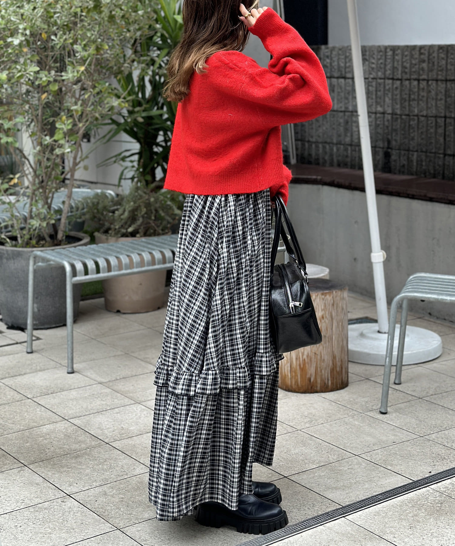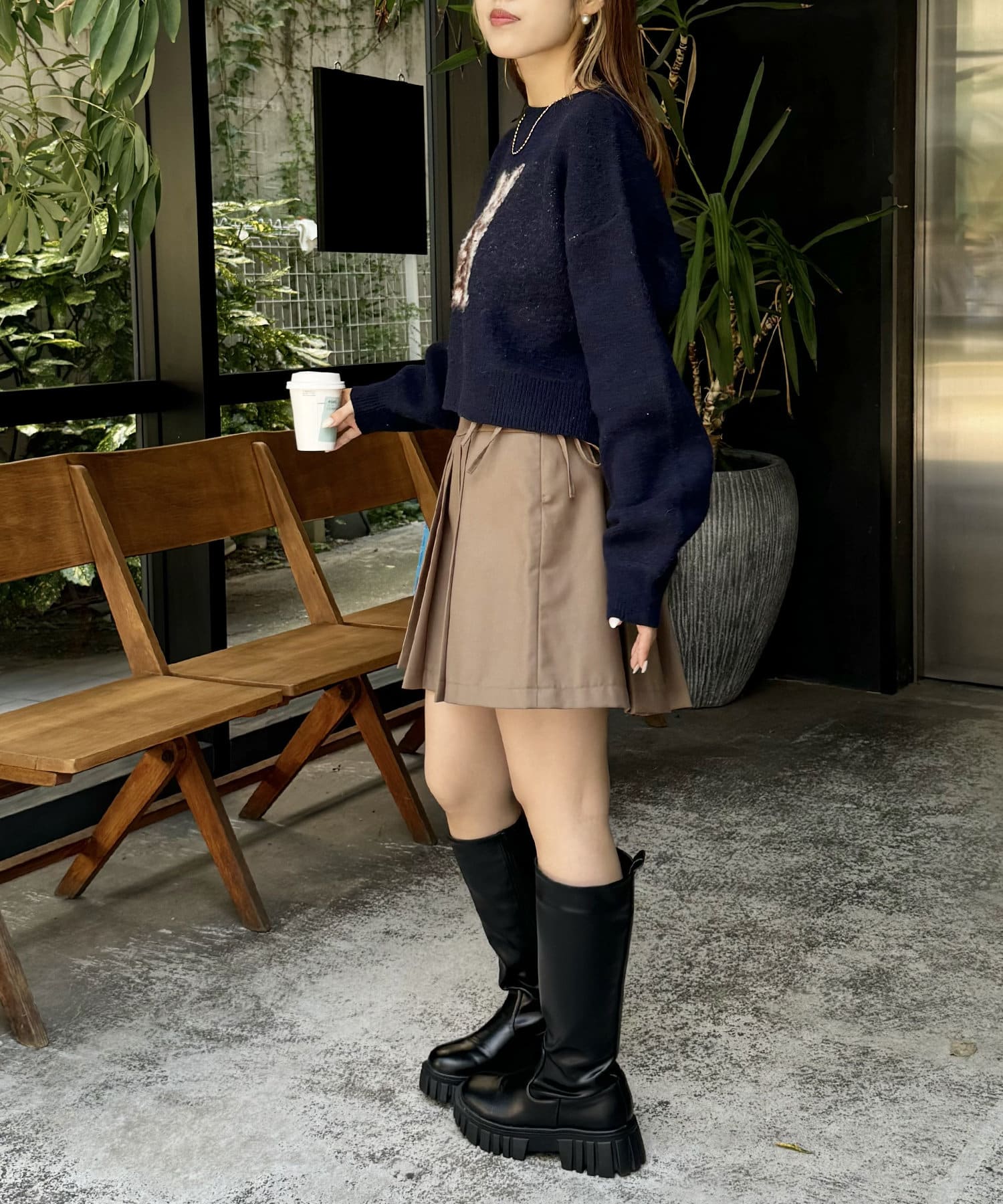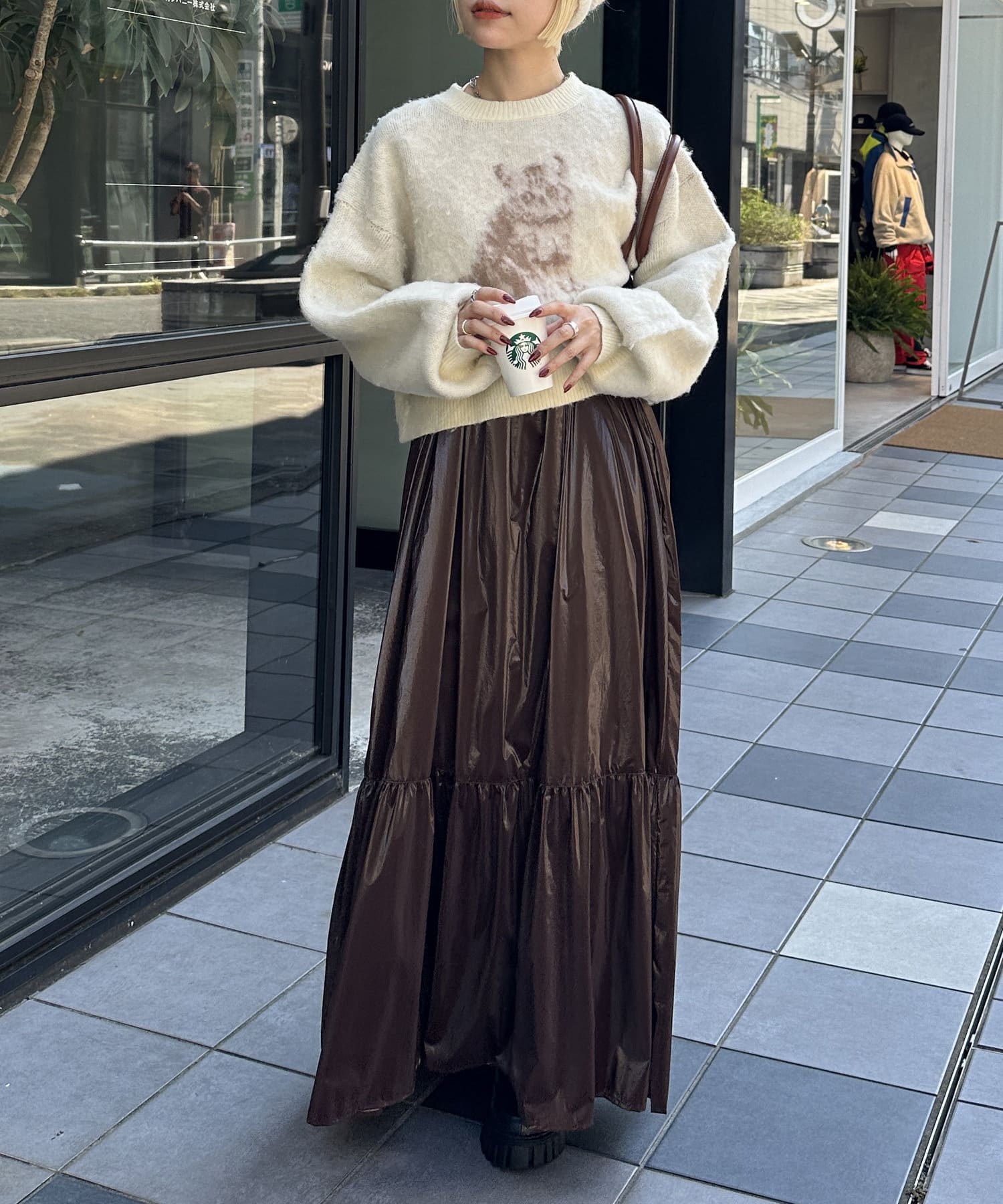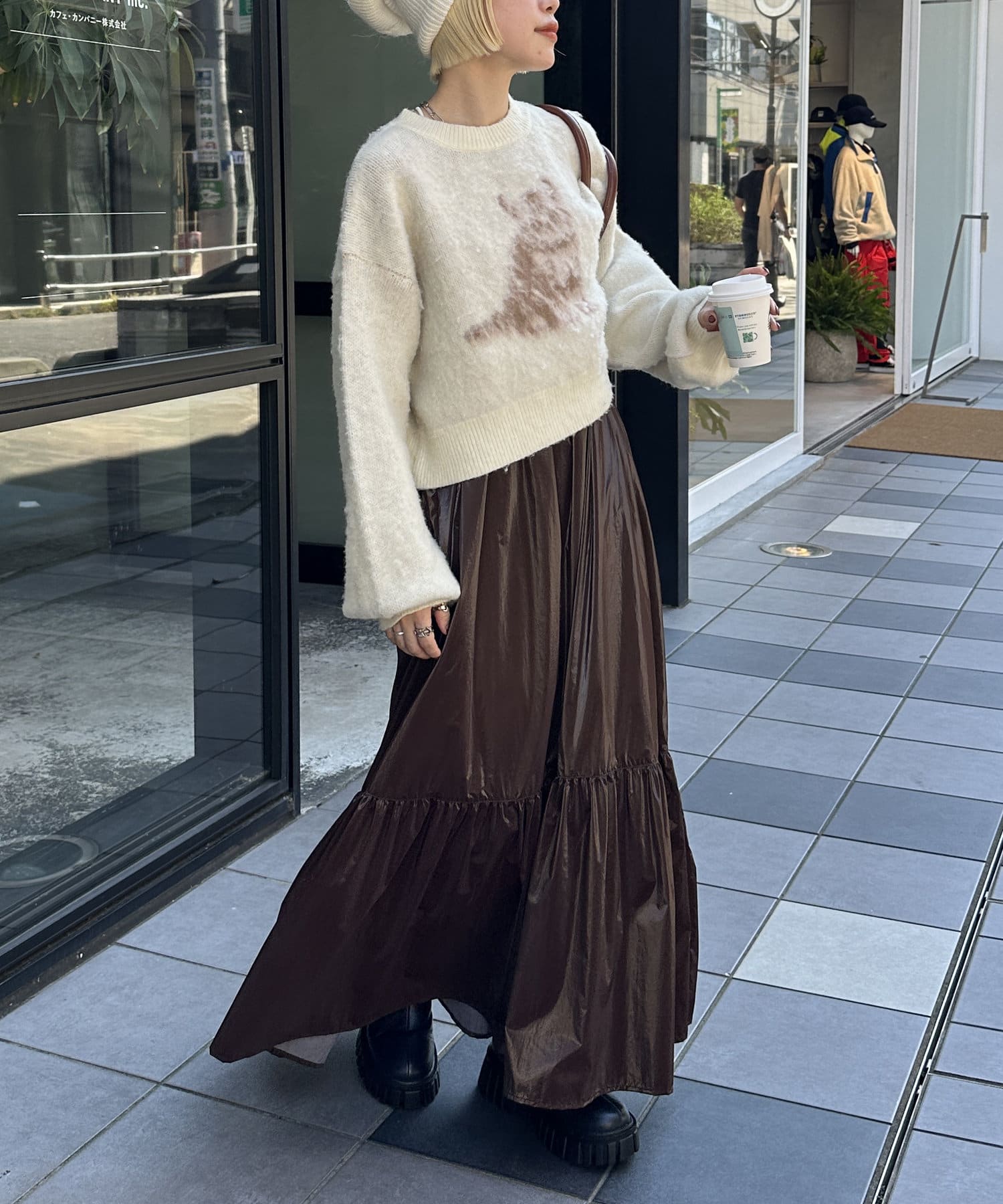 ネコちゃんがキュートなフェミニン×カジュアルニット◎