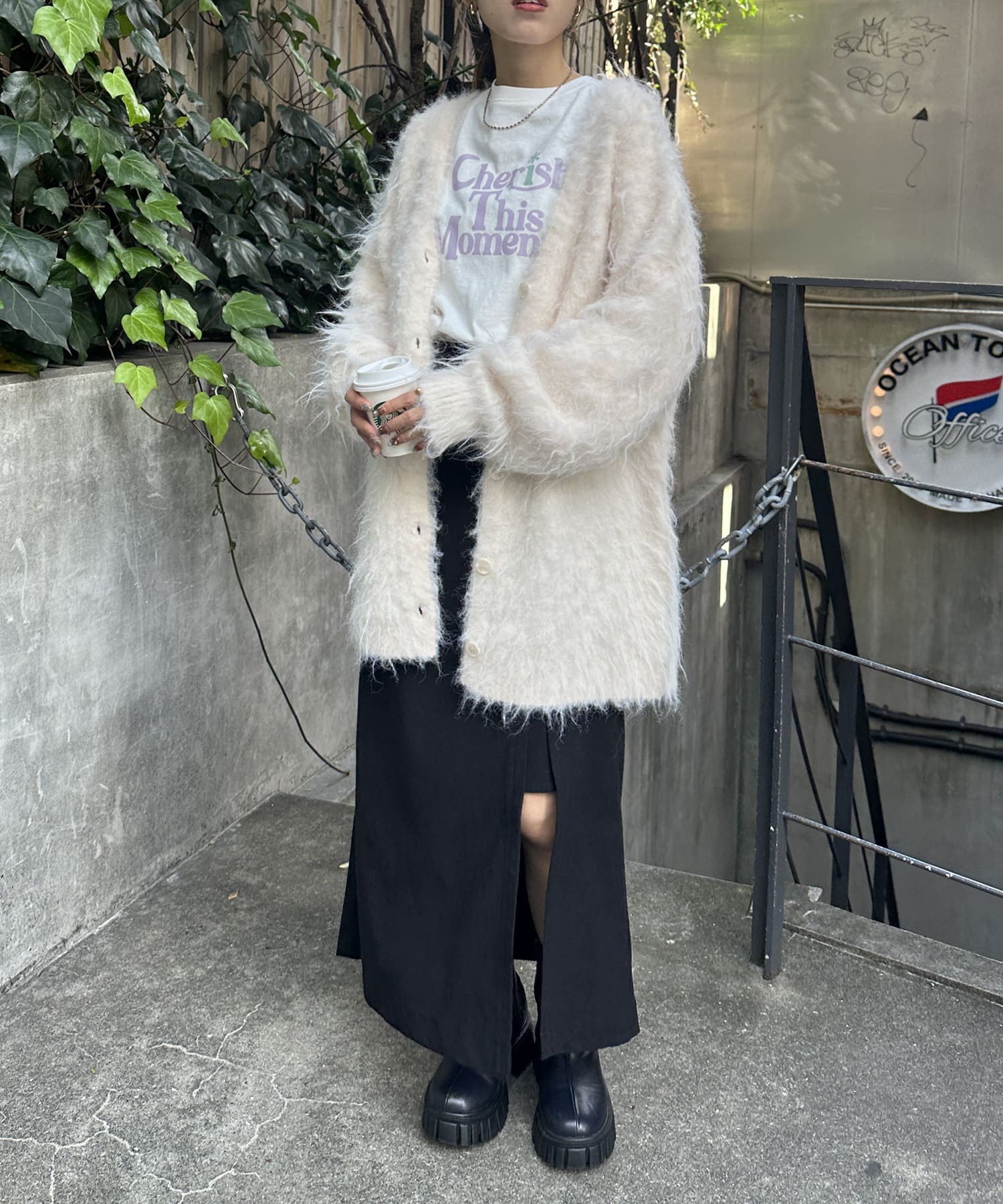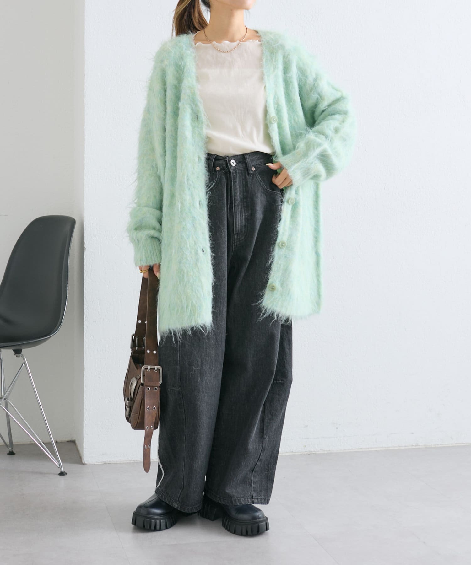 MIX感が可愛い存在感のあるシャギーカーデ◎
