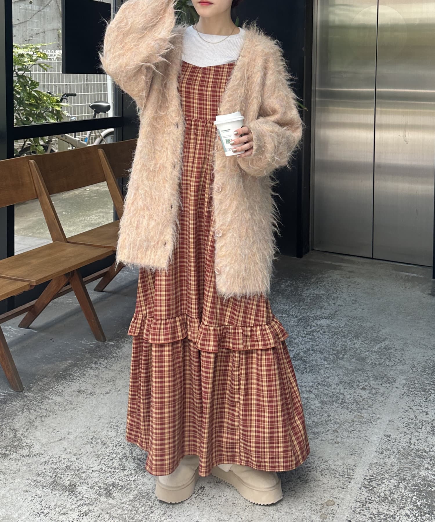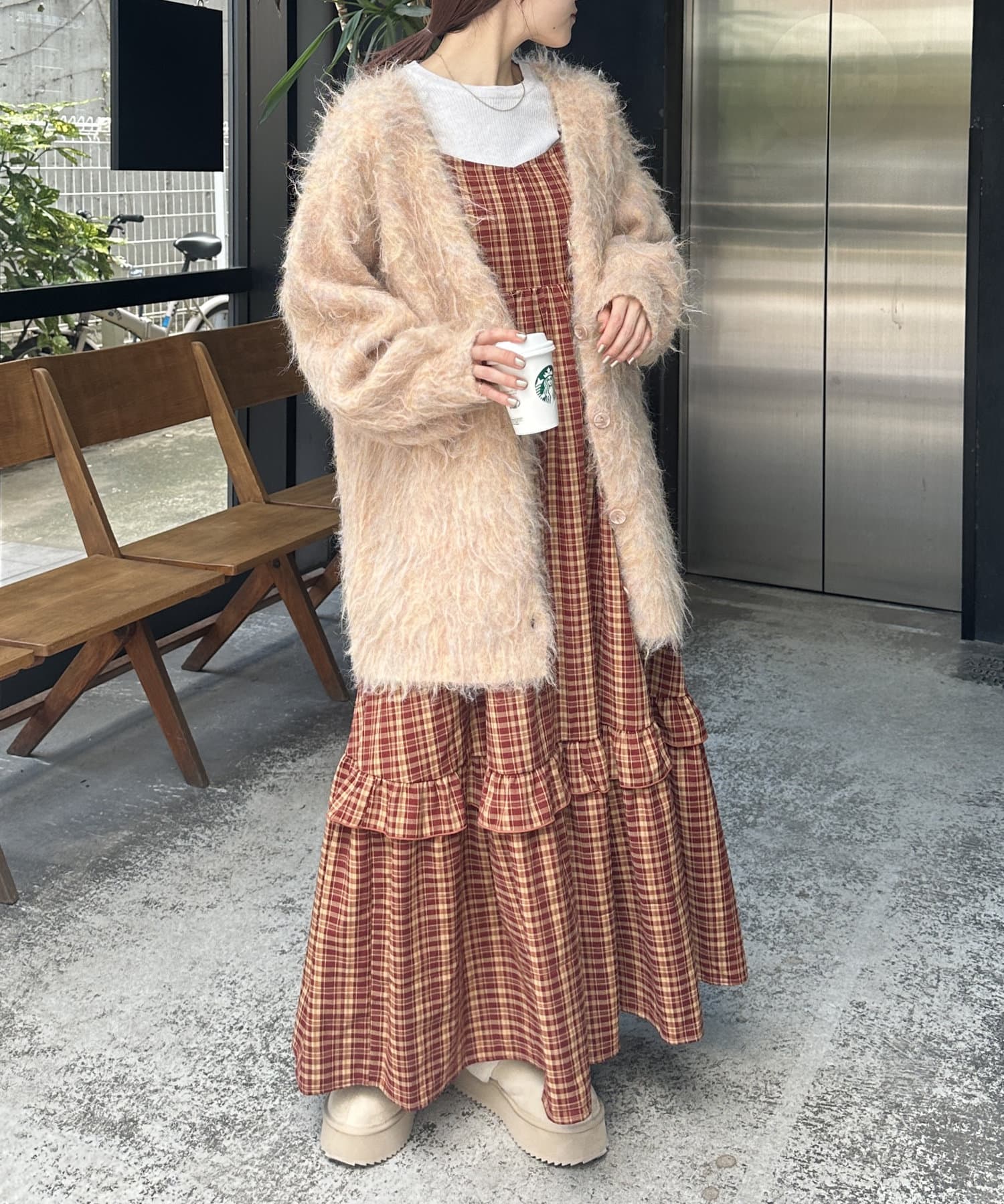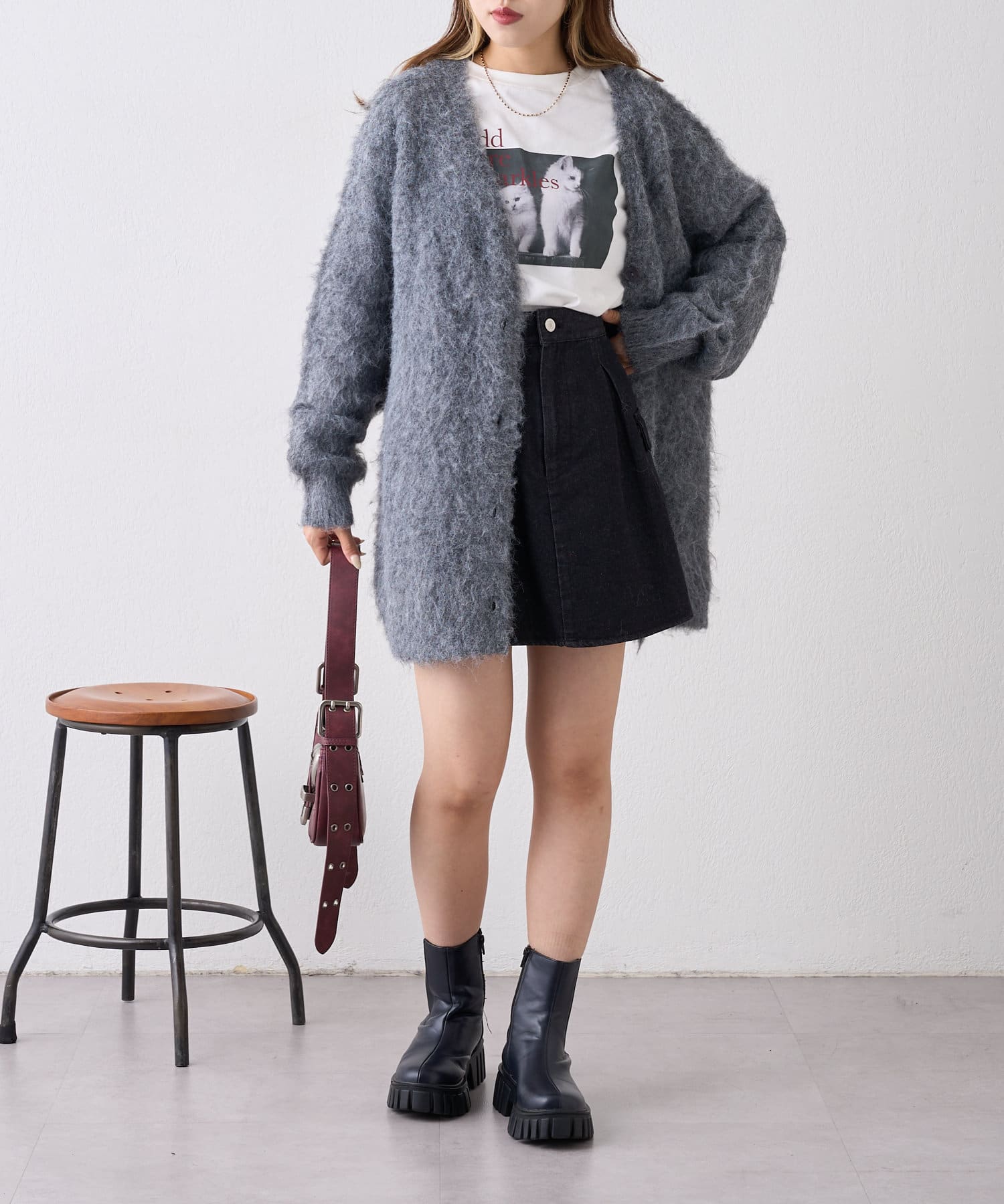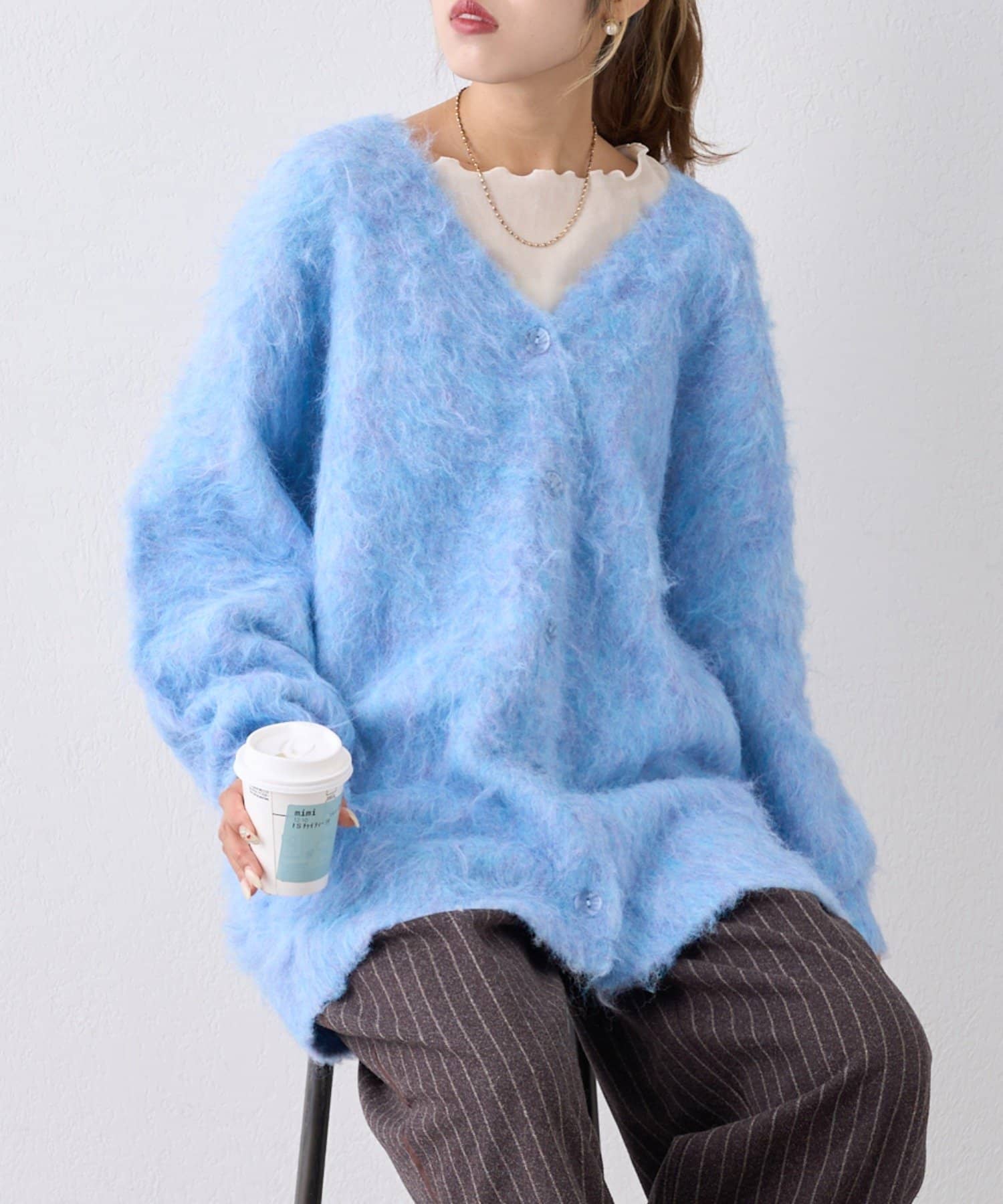 MIX感が可愛い存在感のあるシャギーカーデ◎