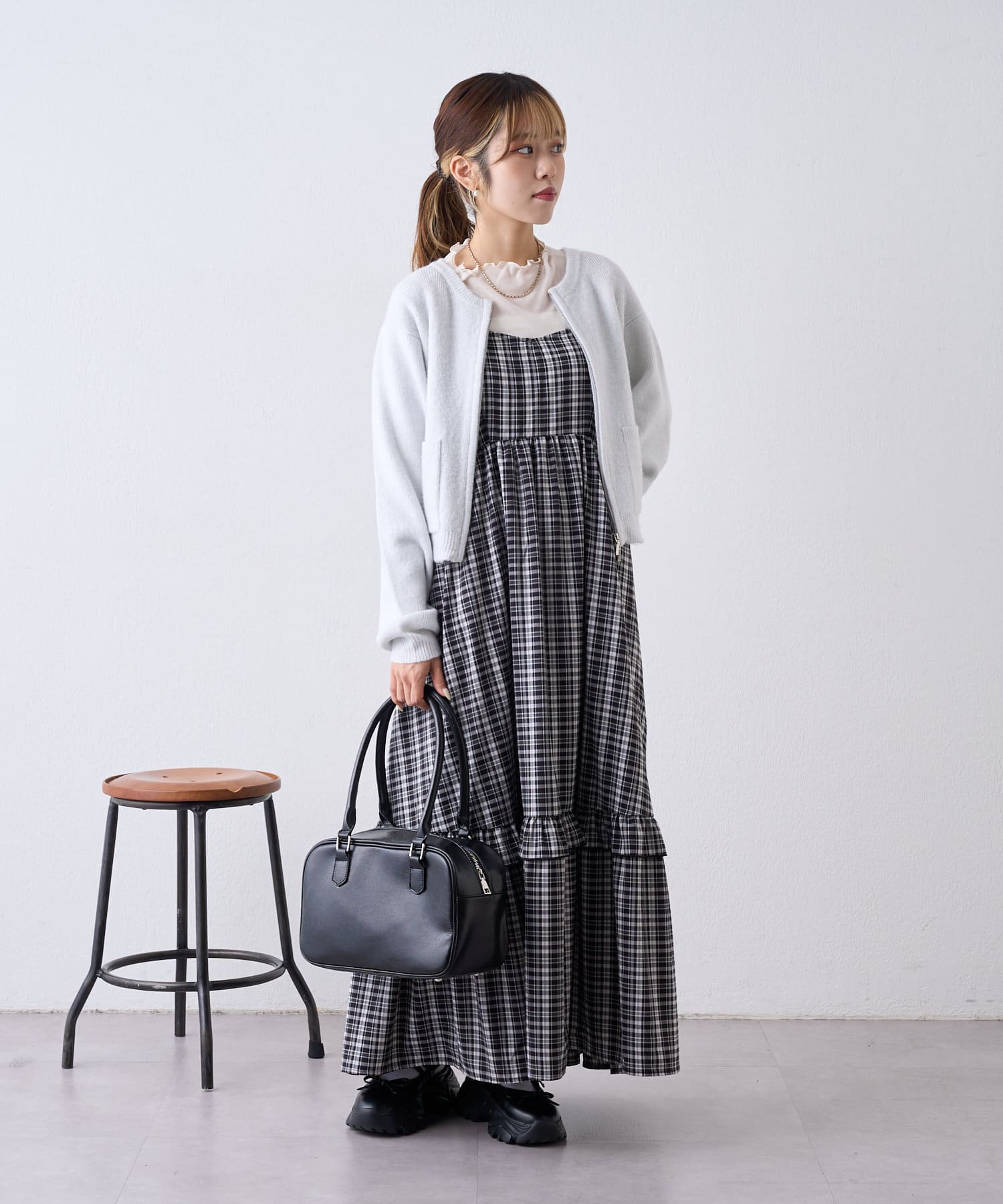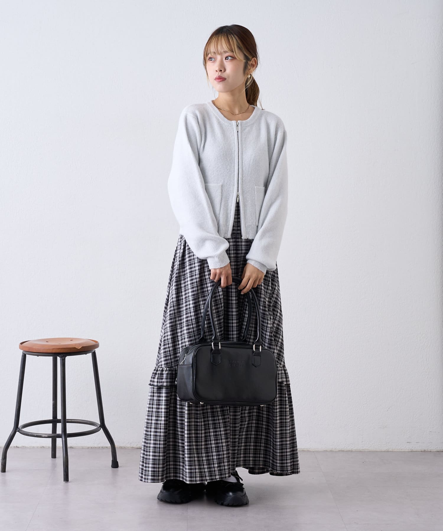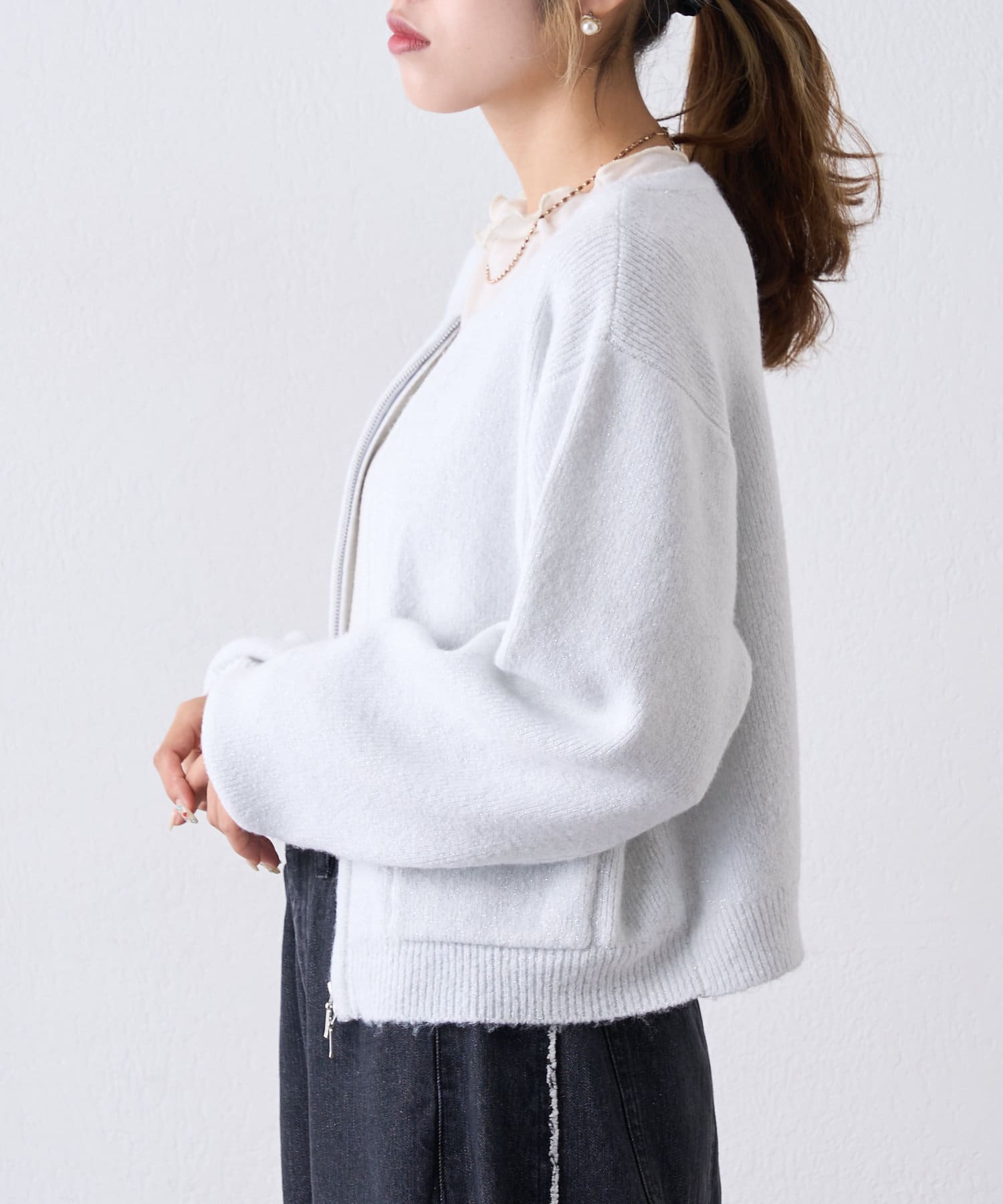 甘さとカジュアルさをミックスしたダブルジップカーデ