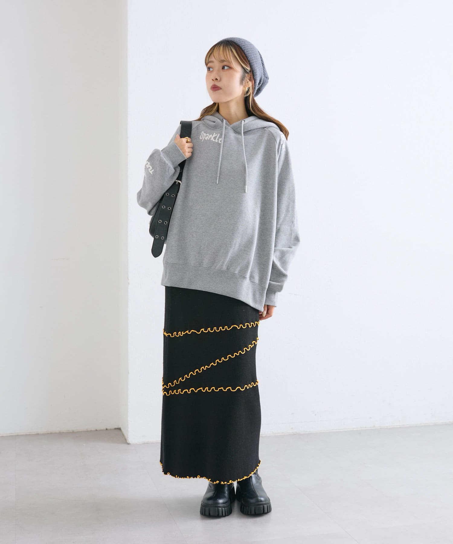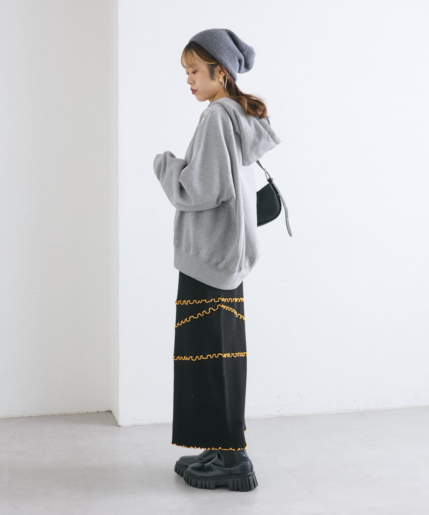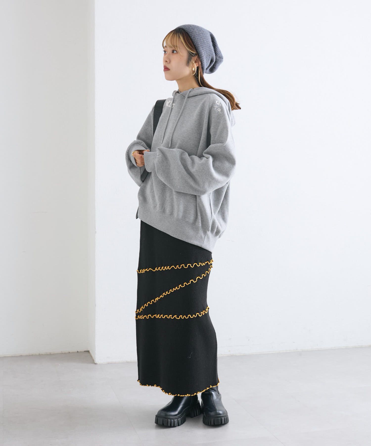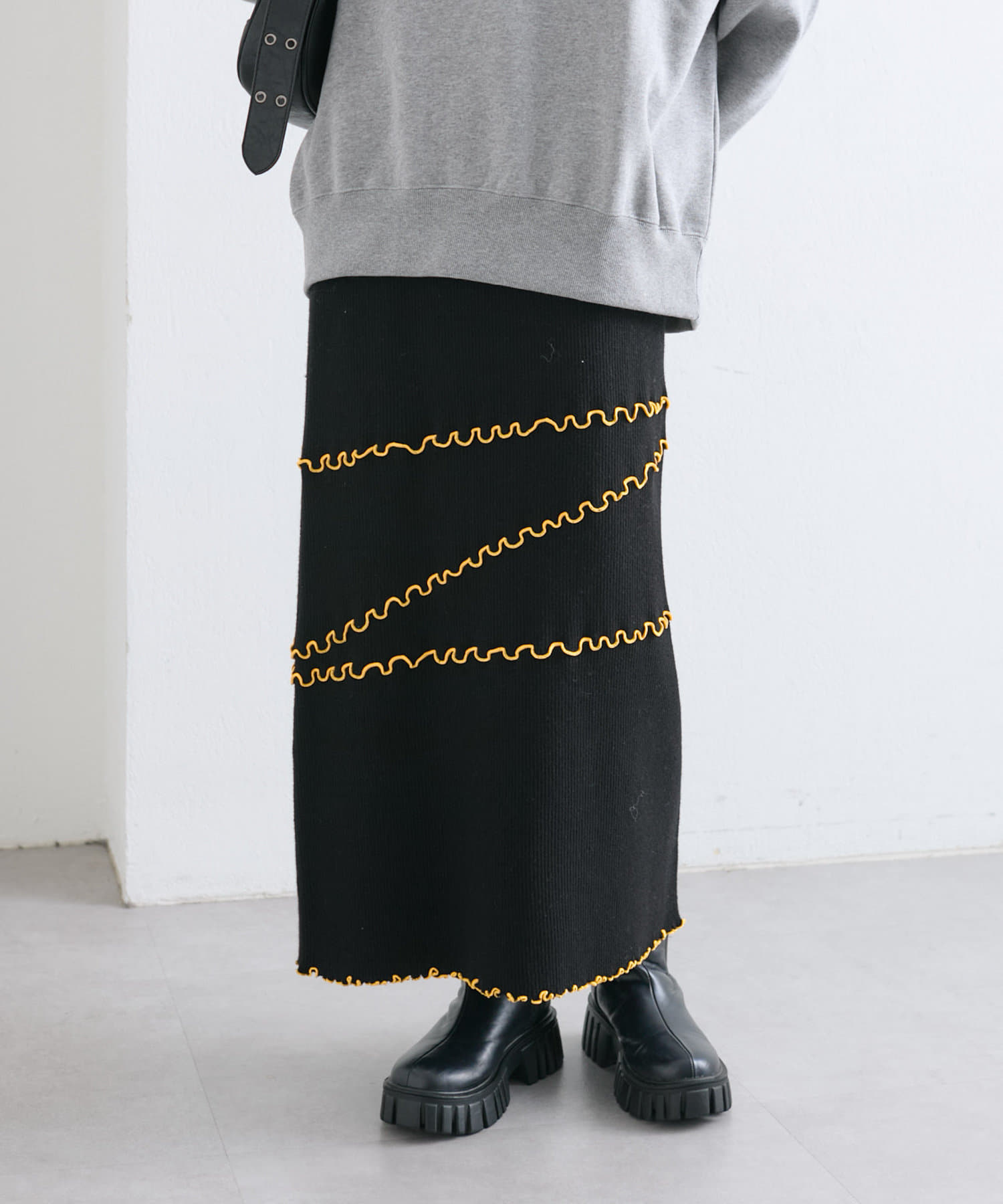 メローデザインが目を惹くニットスカート