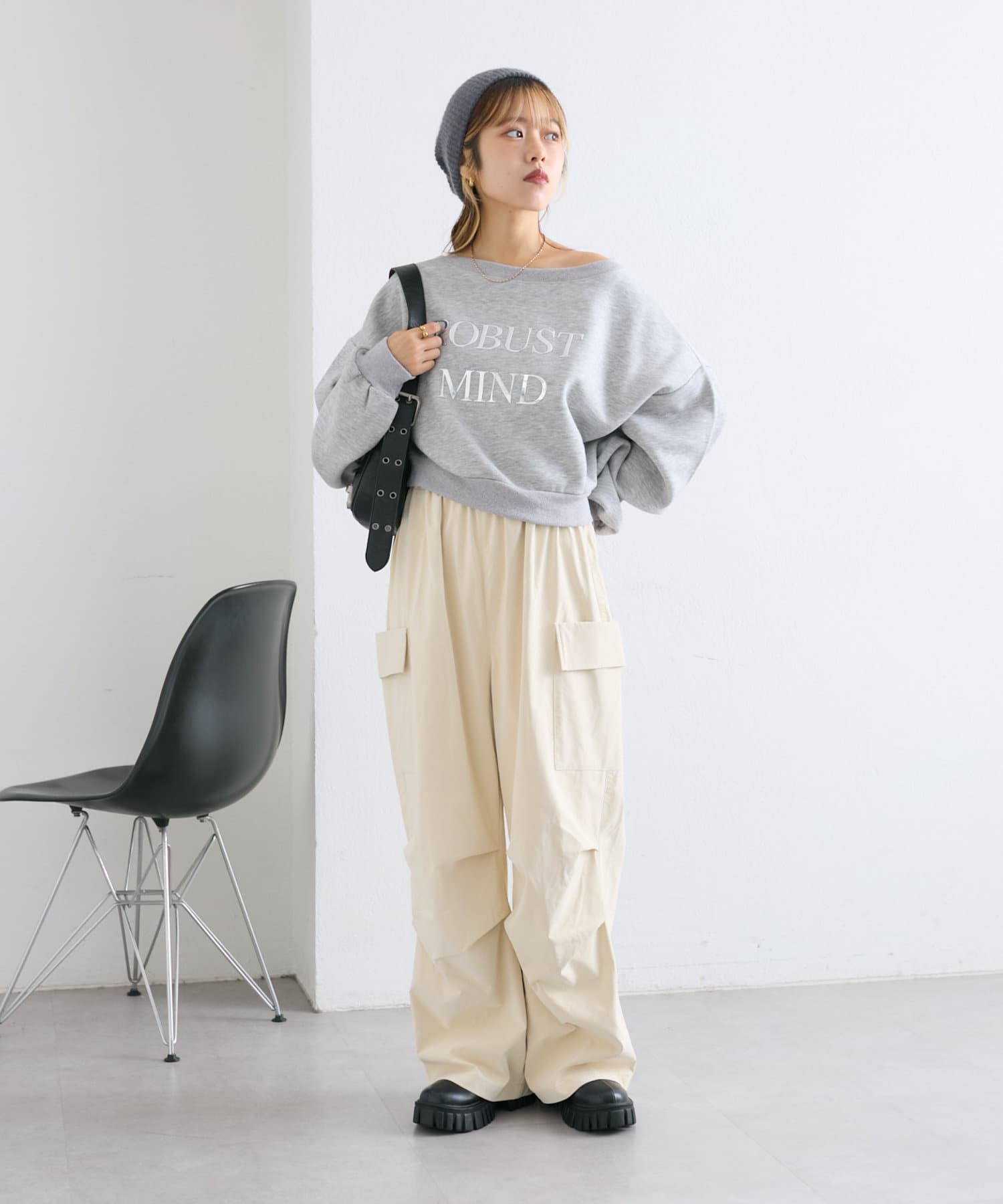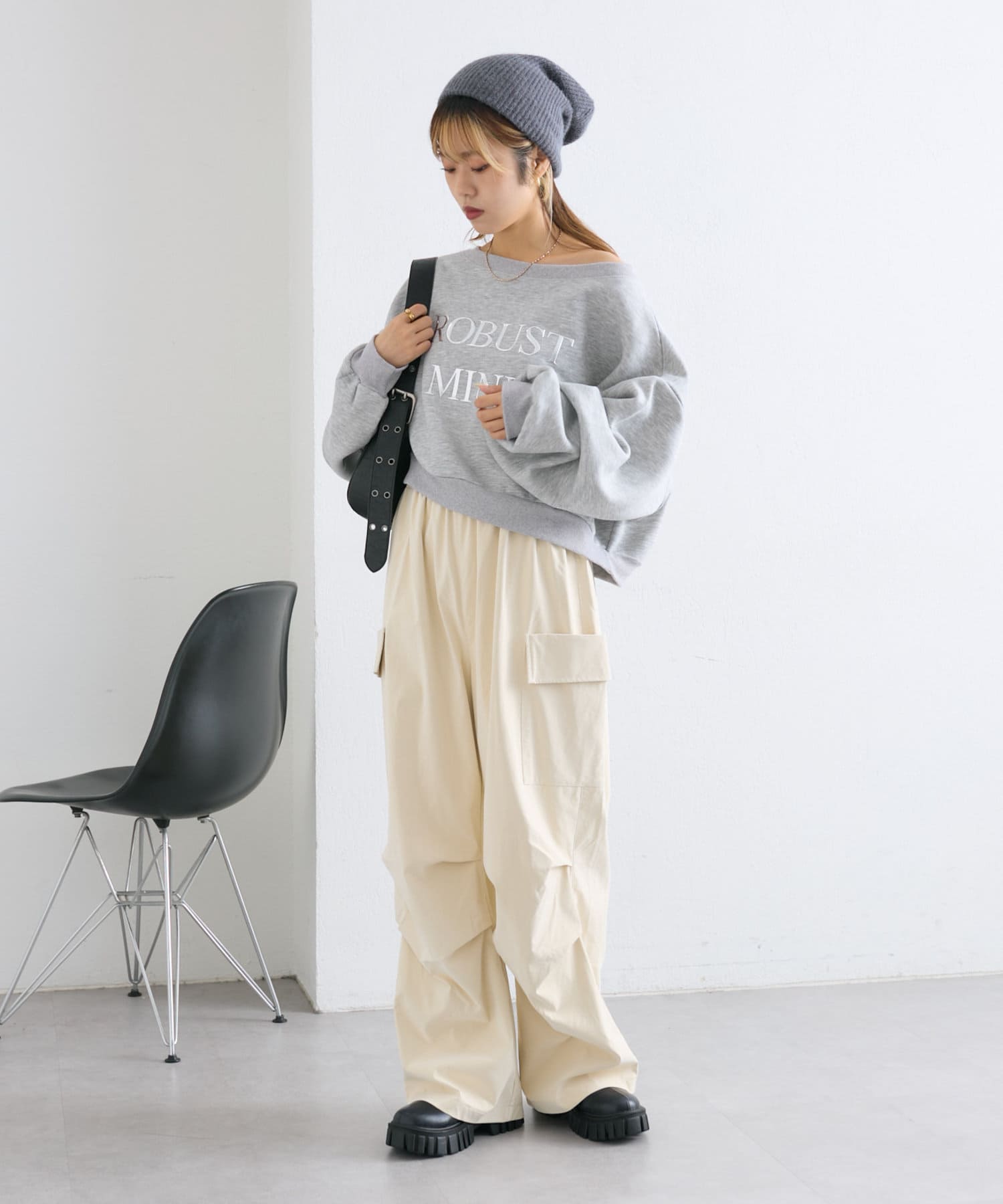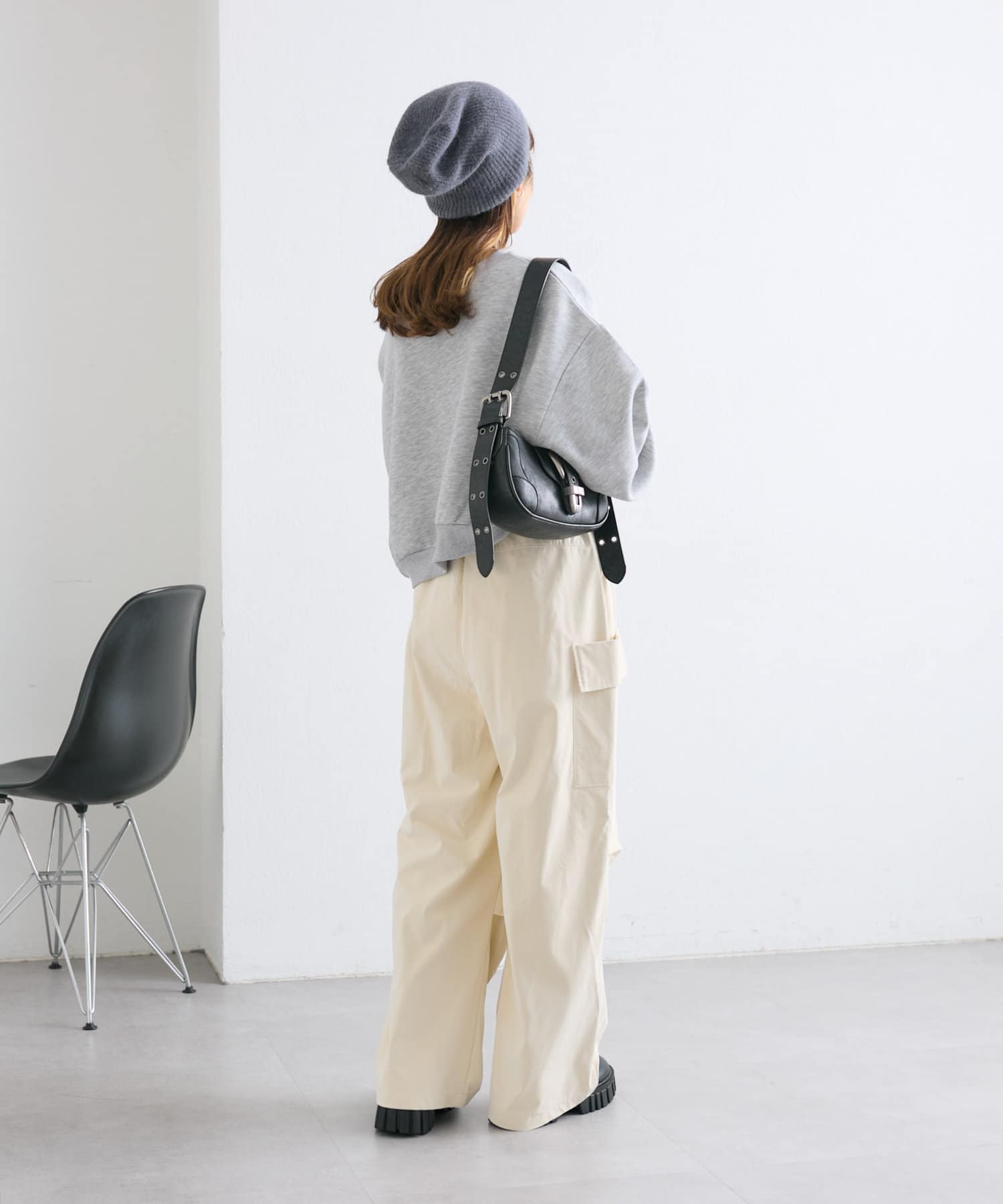 ・ゆるっとしたスエットを合わせて抜け感をプラスするとバランスよく着こなせます