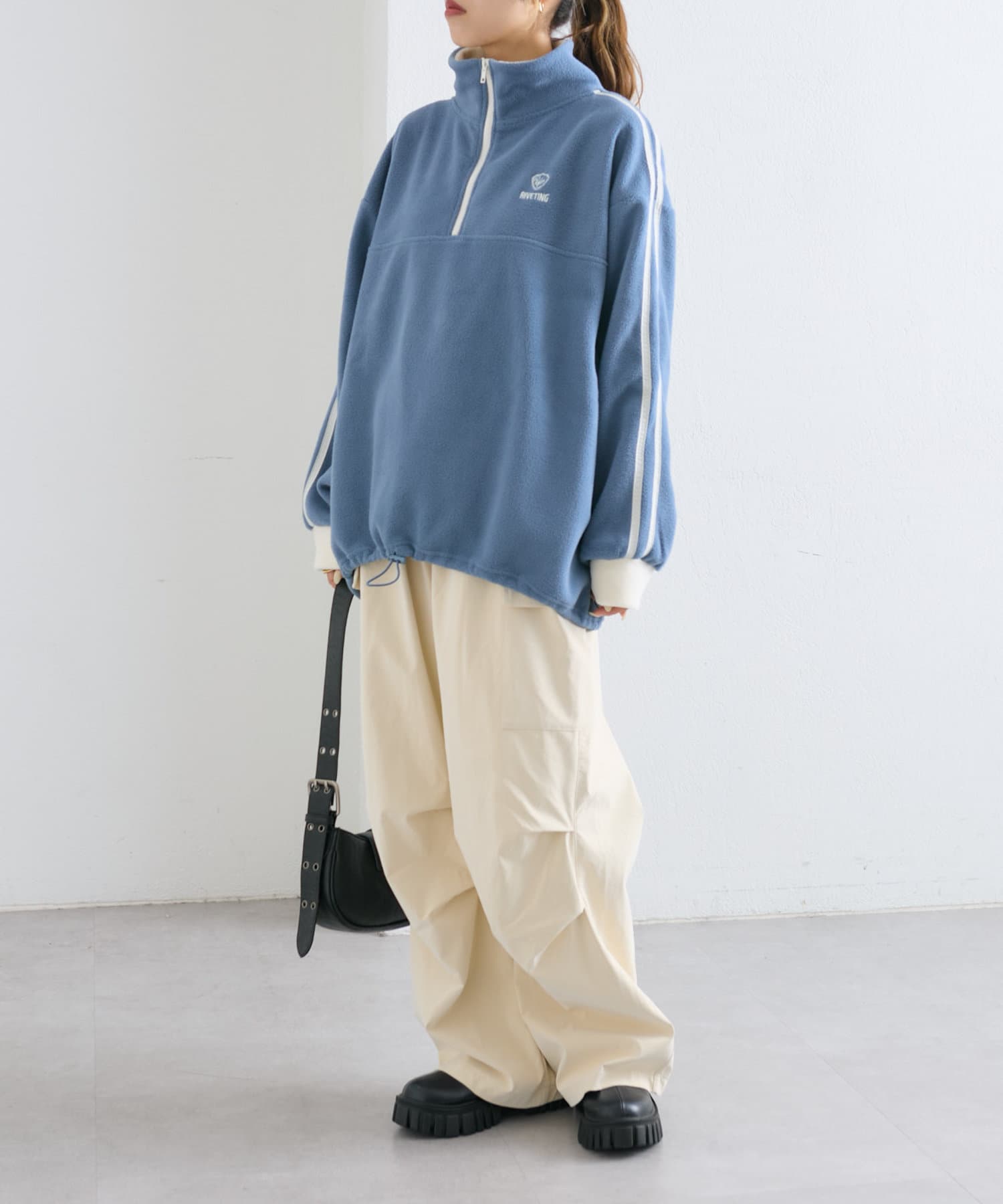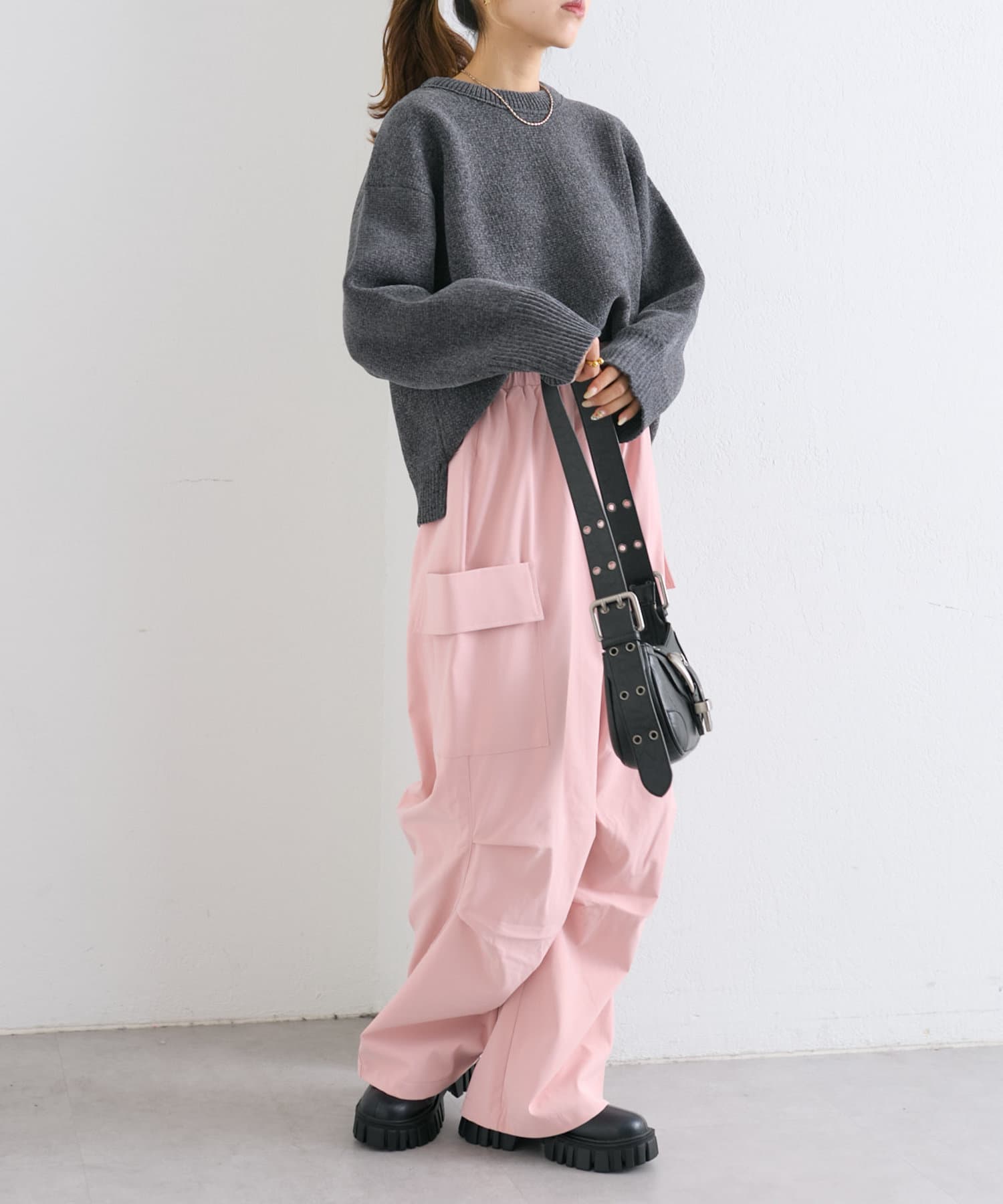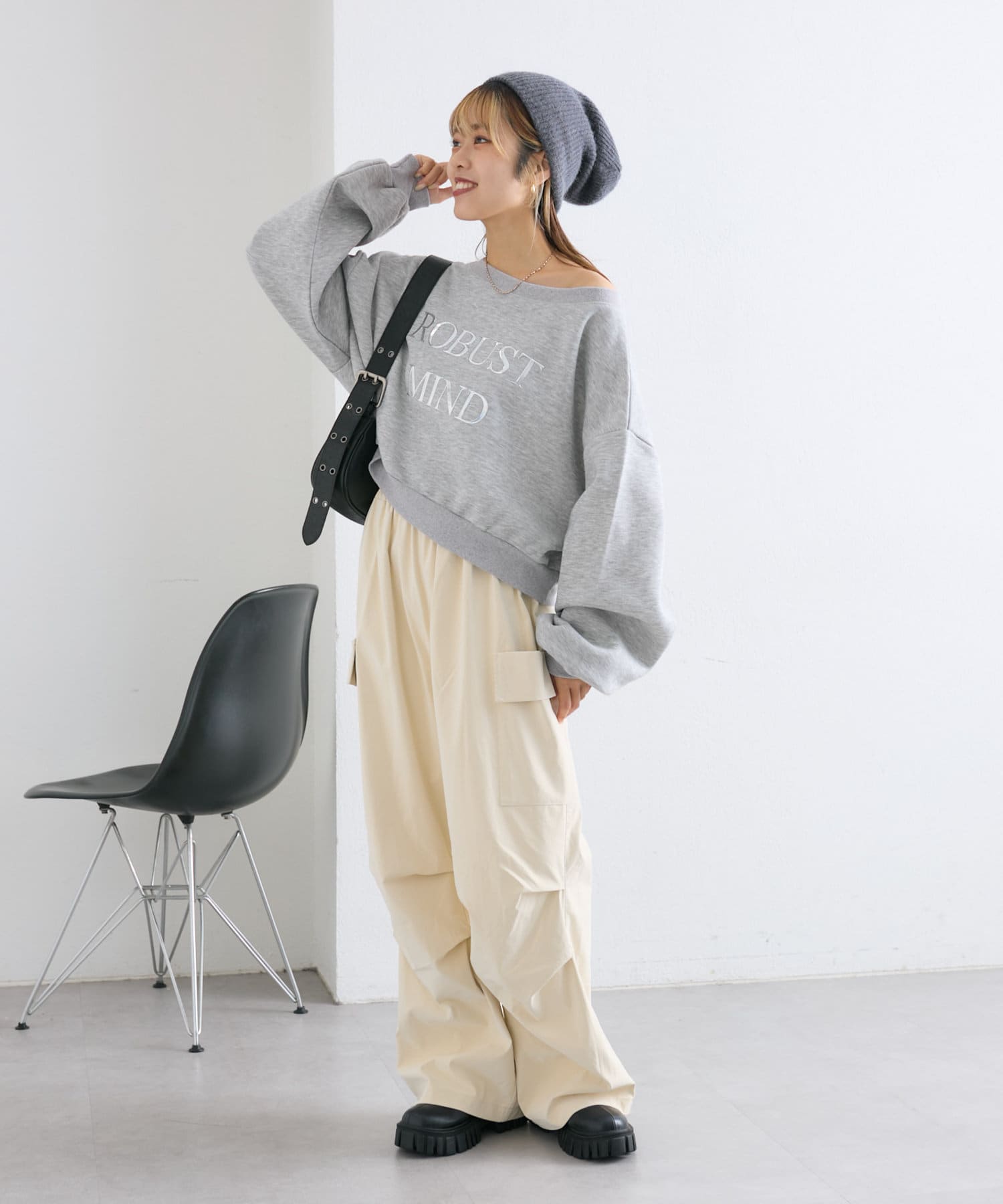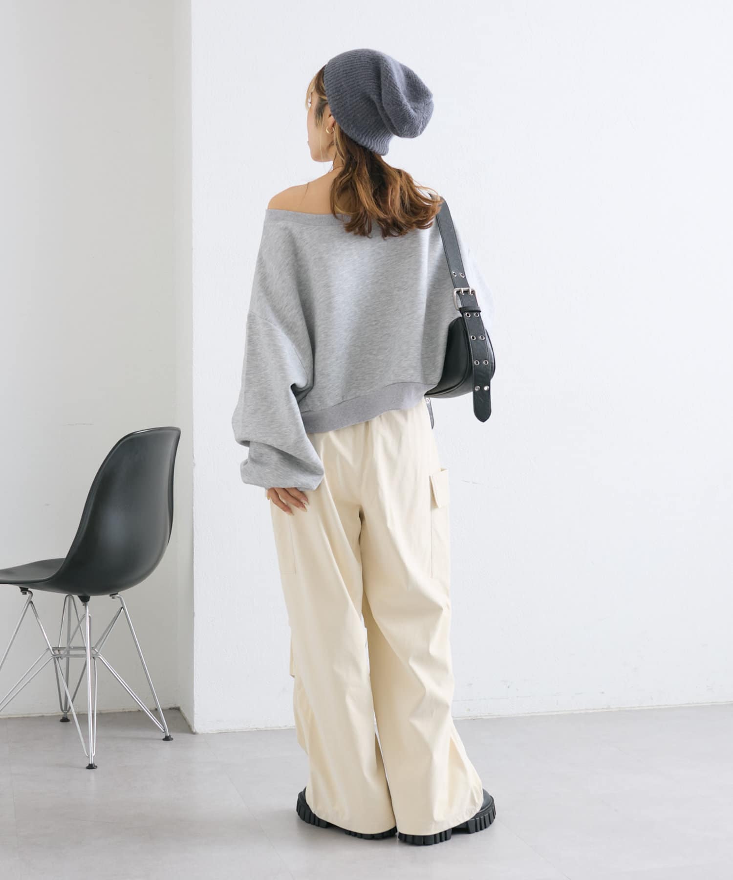 ・ゆるっとしたスエットを合わせて抜け感をプラスするとバランスよく着こなせます