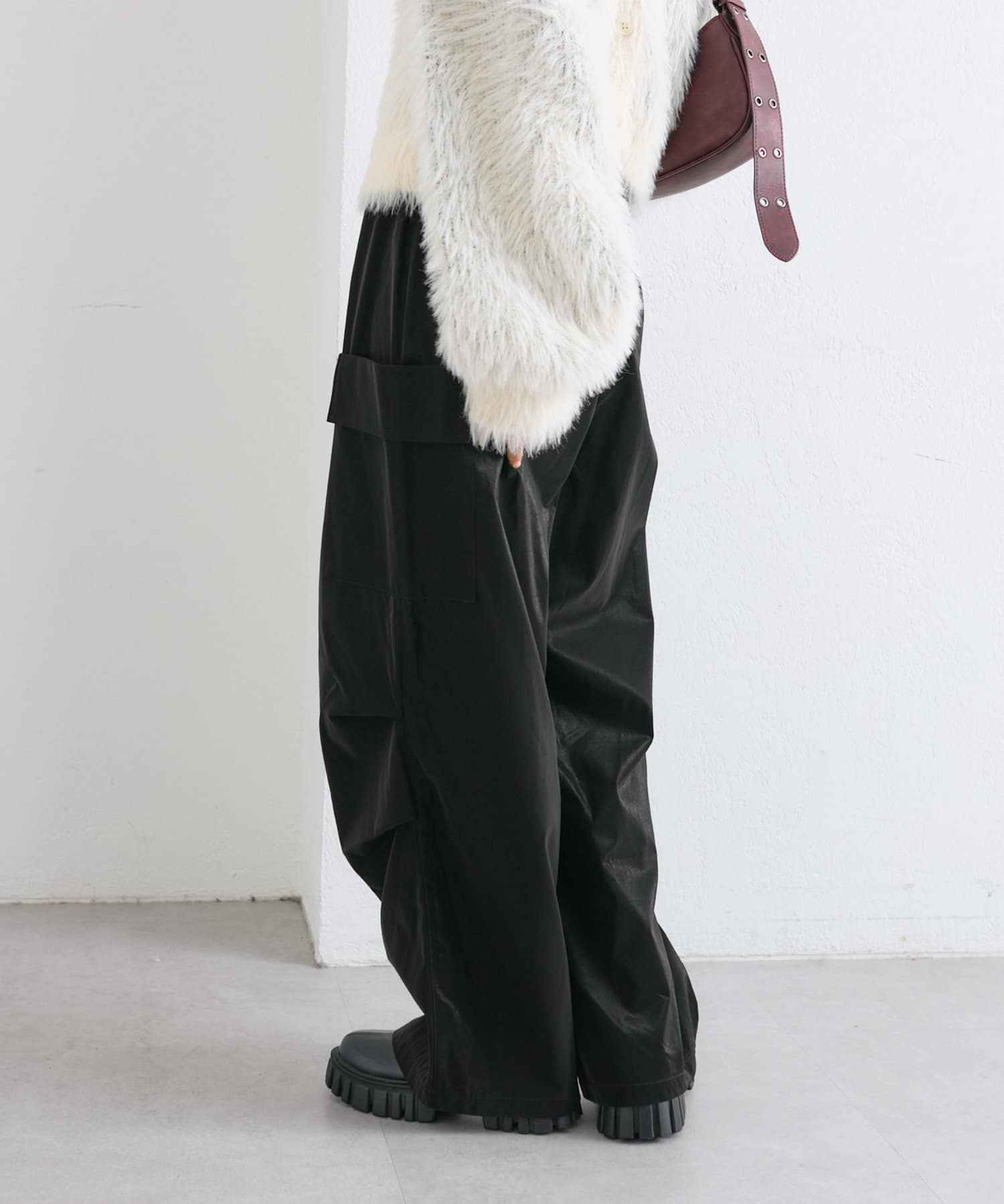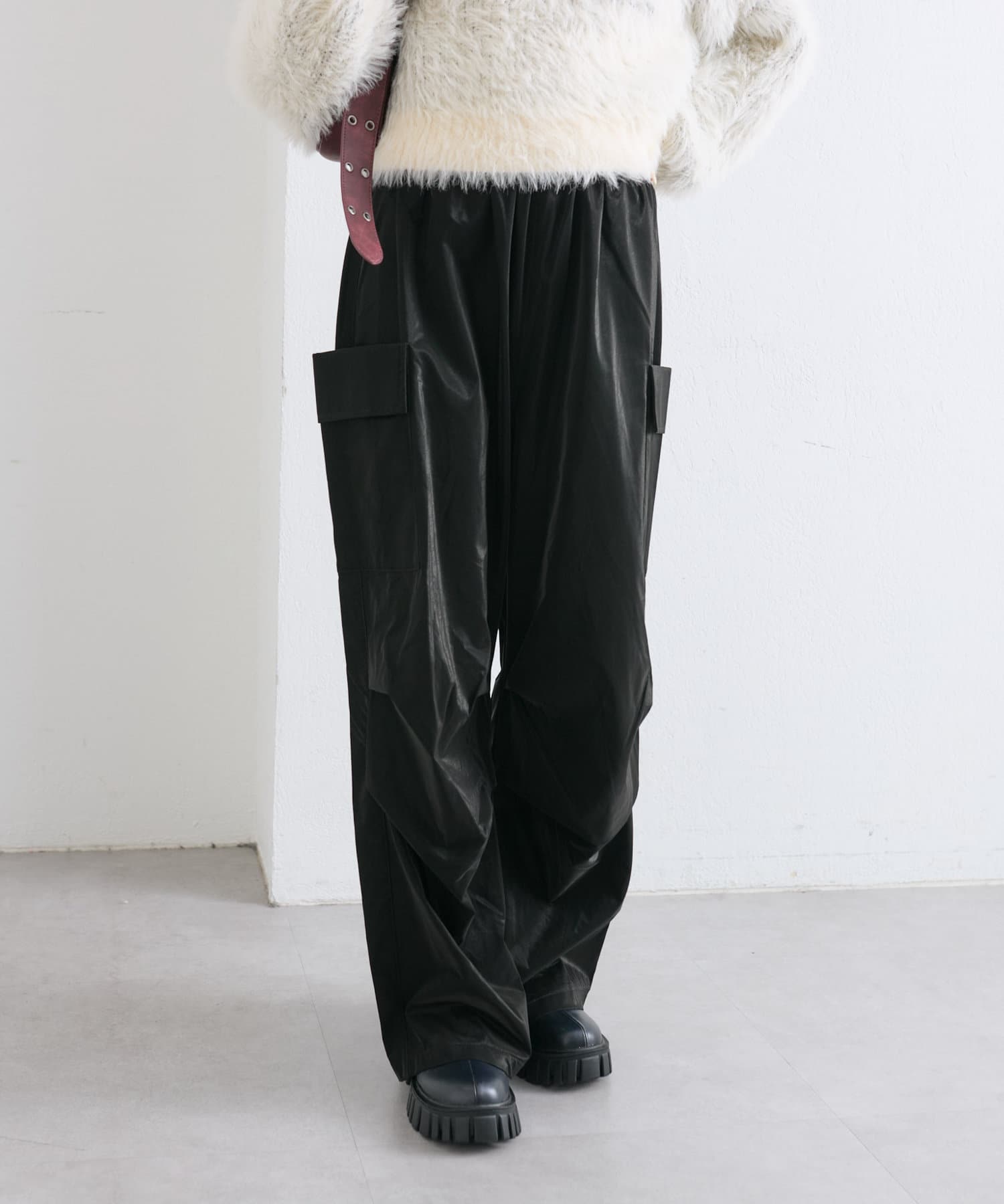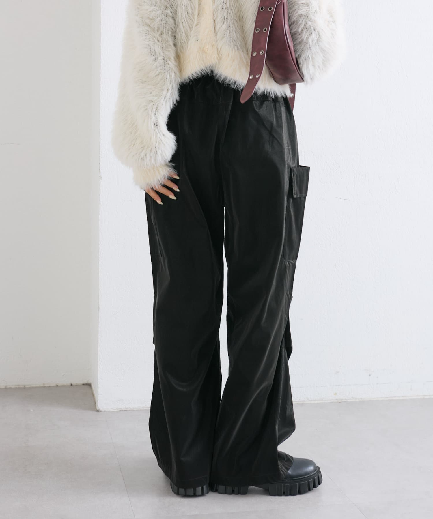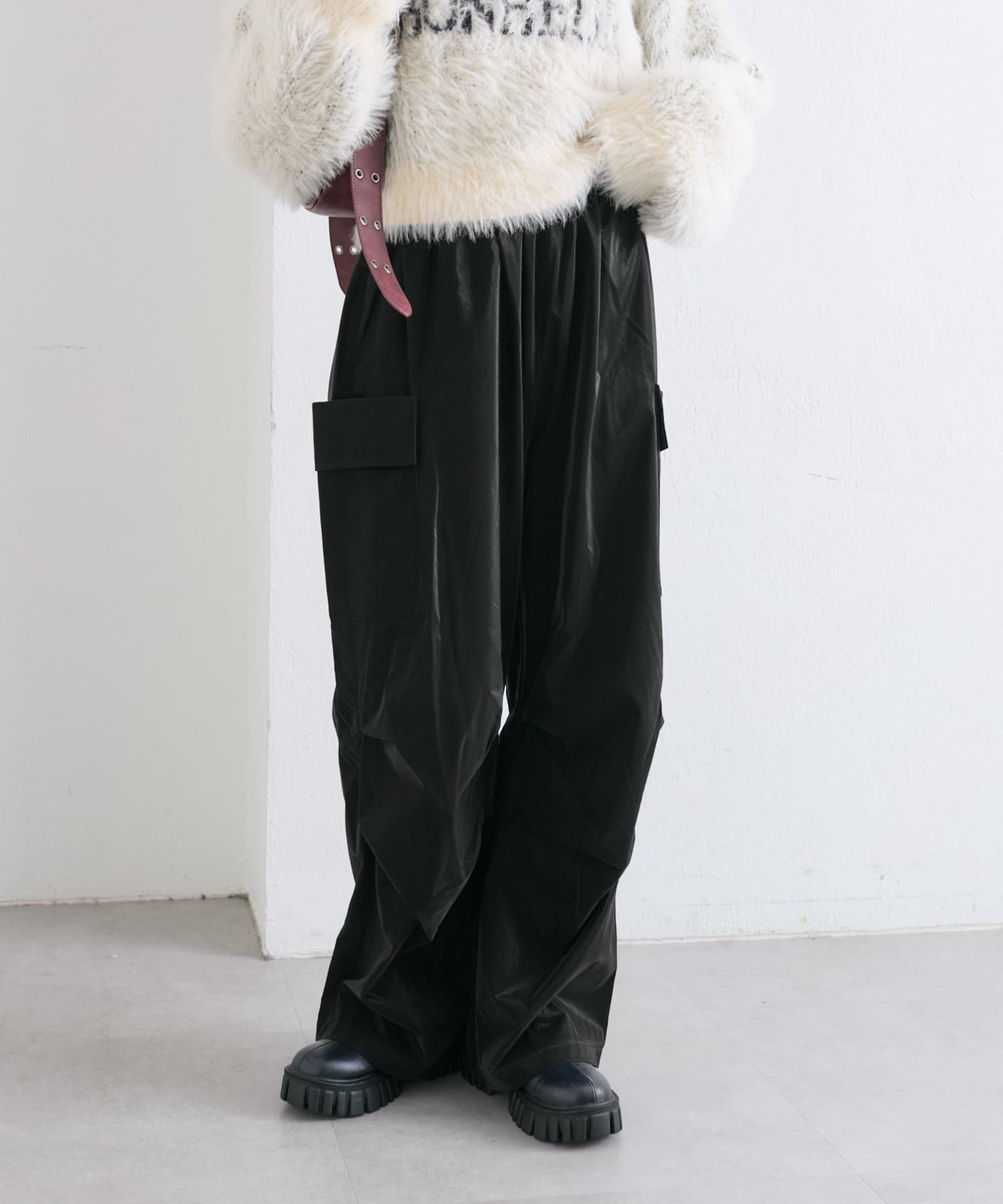 落ち感のあるレザーライクの生地がクールなカーゴパンツ
