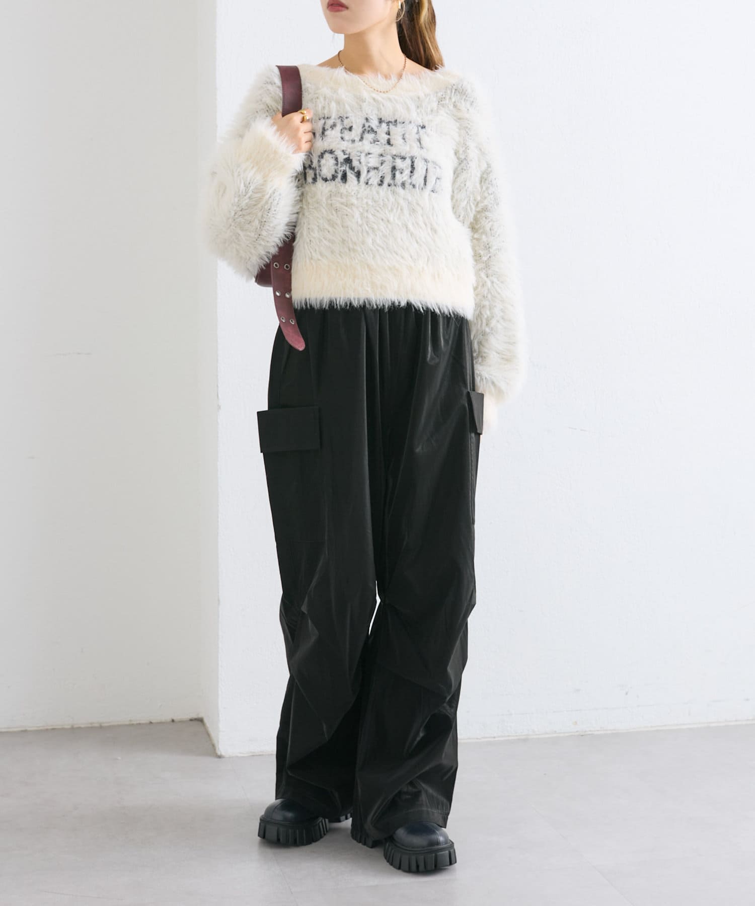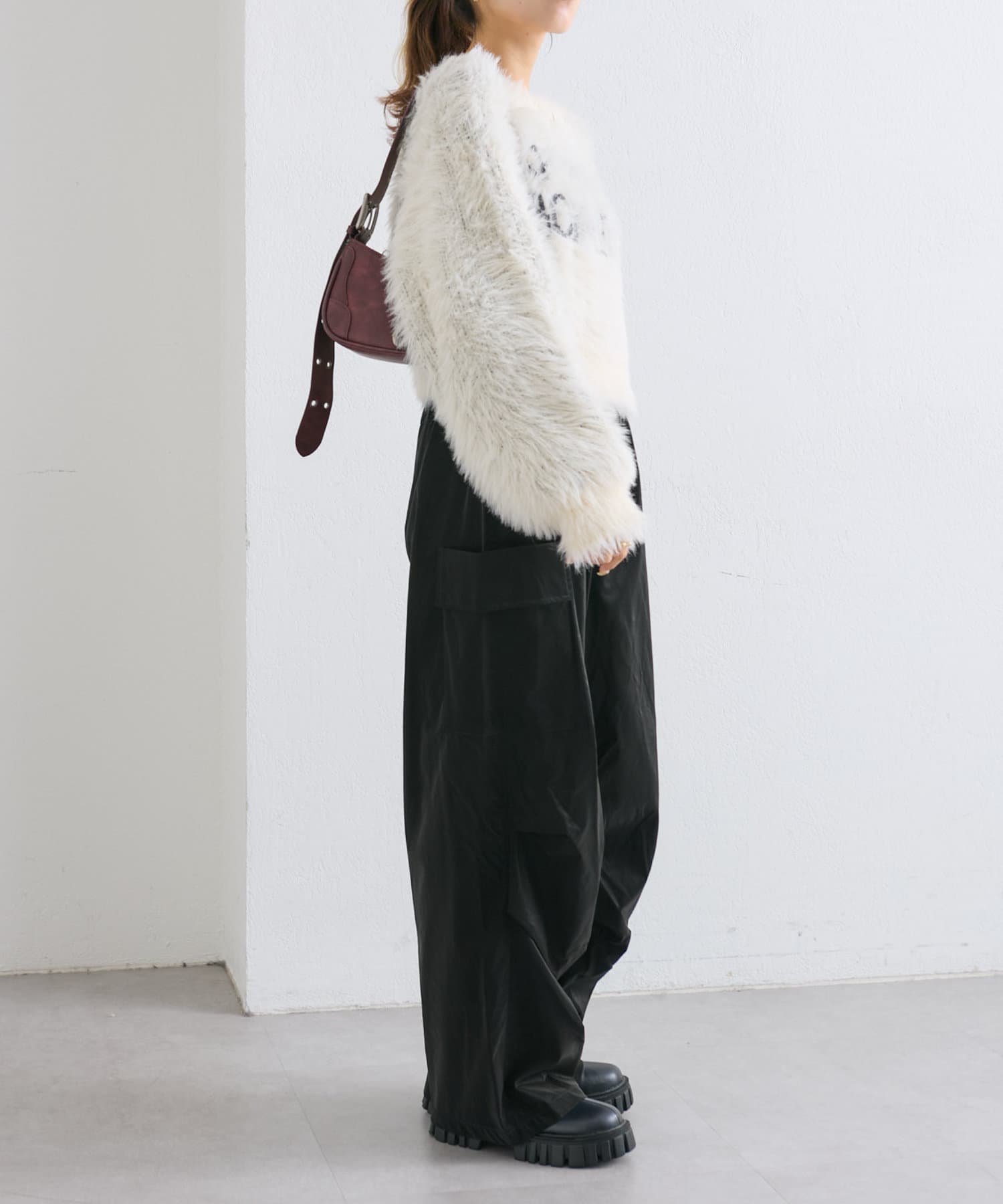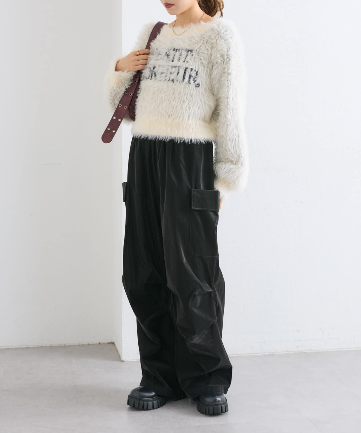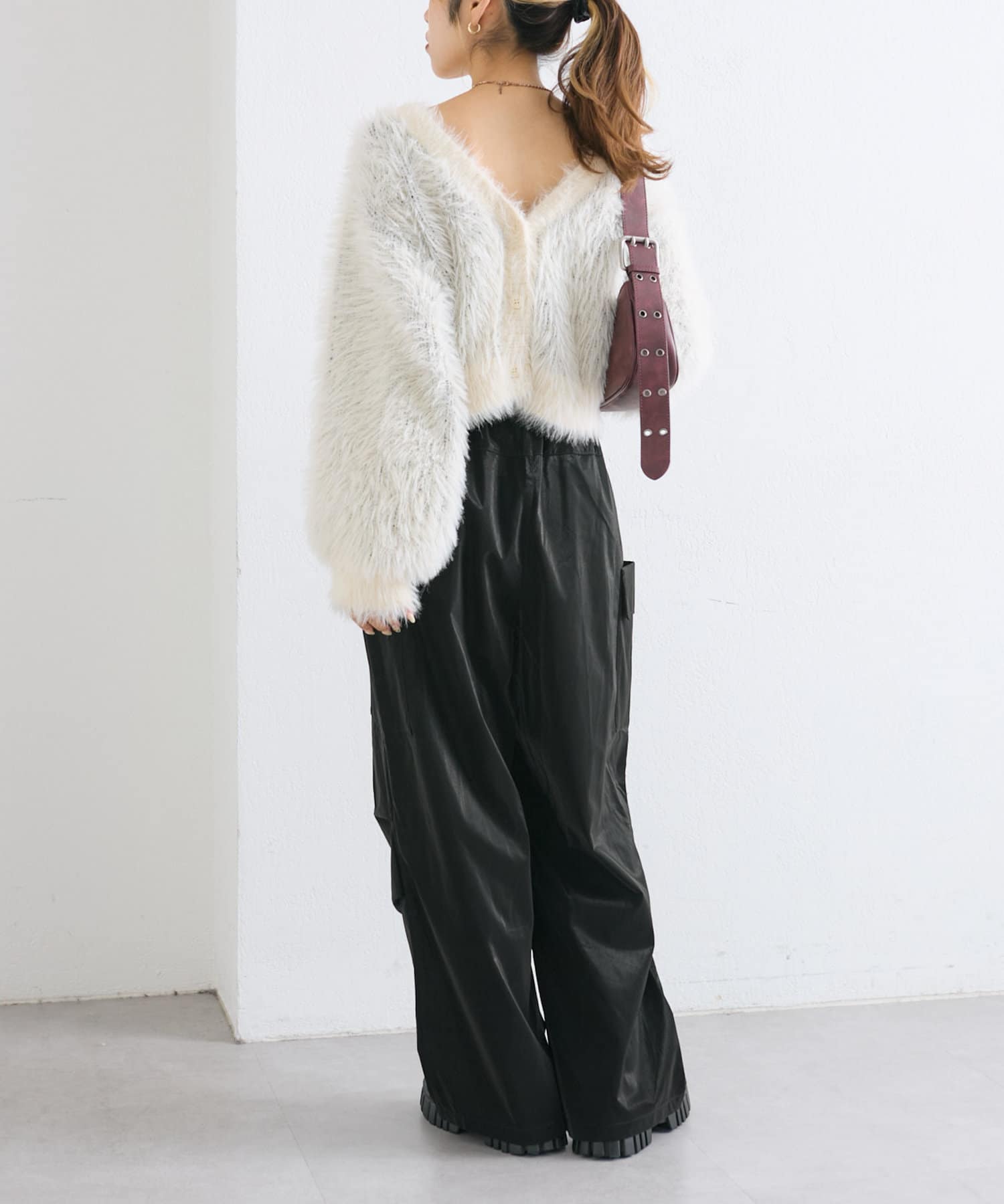 落ち感のあるレザーライクの生地がクールなカーゴパンツ
