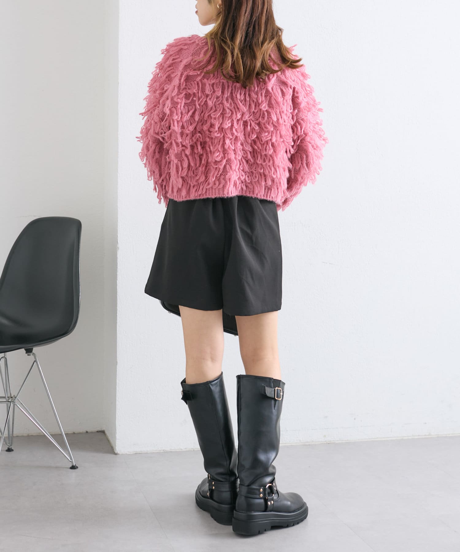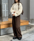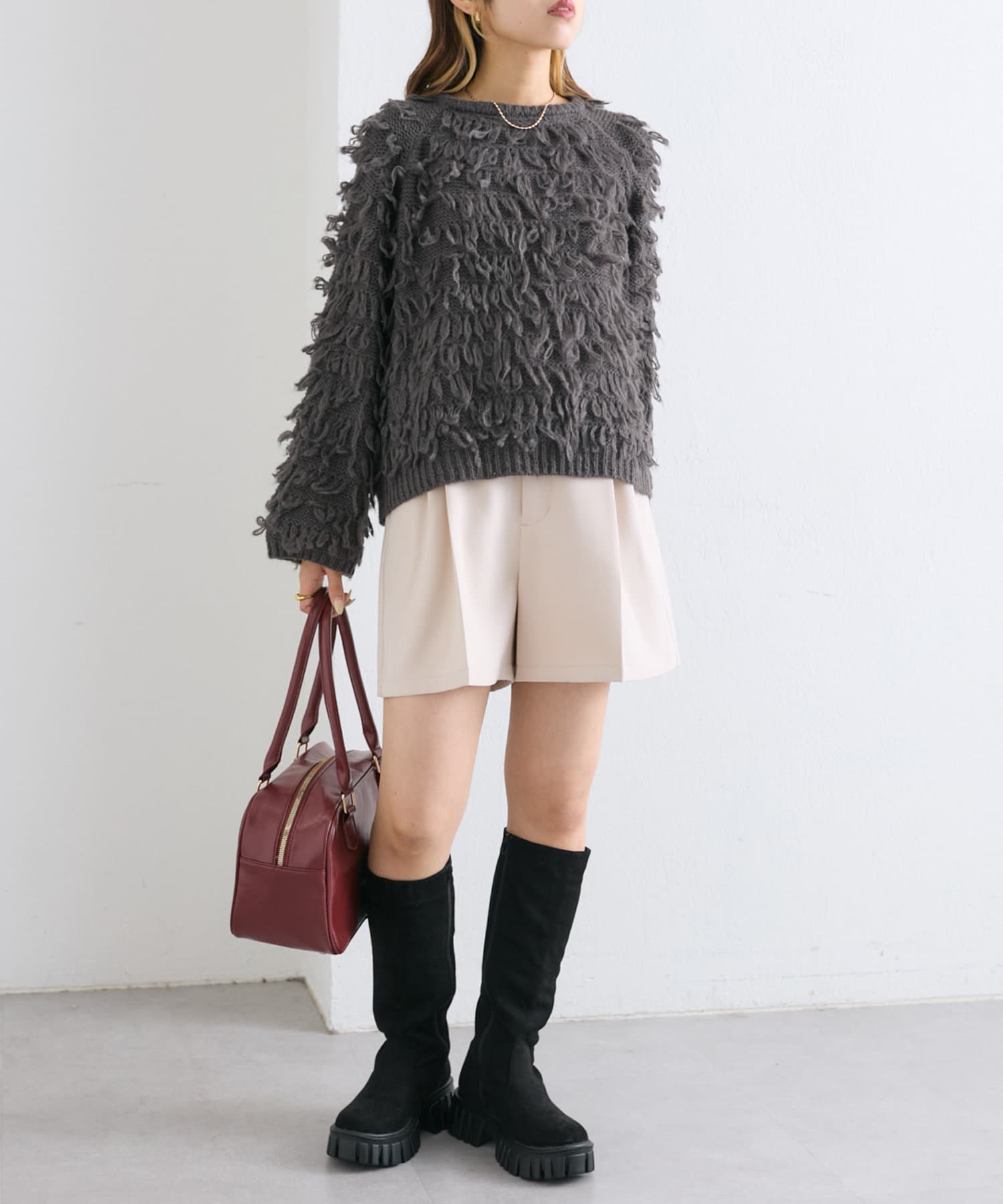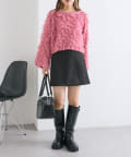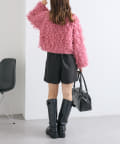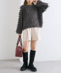 ・ショート丈のボトムスにロングブーツを合わせたレディライクな着こなしも可愛いです!
