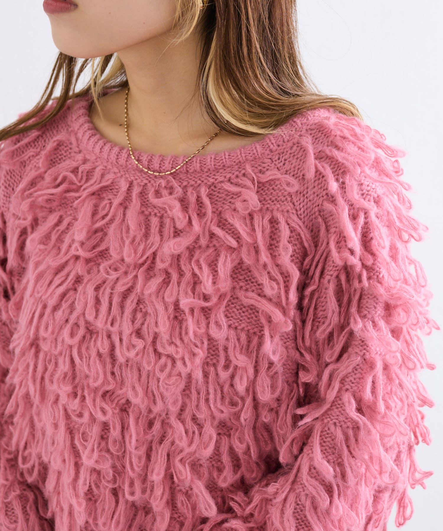 ・大きな編み目が空気の層をつくって温もりを感じる着心地