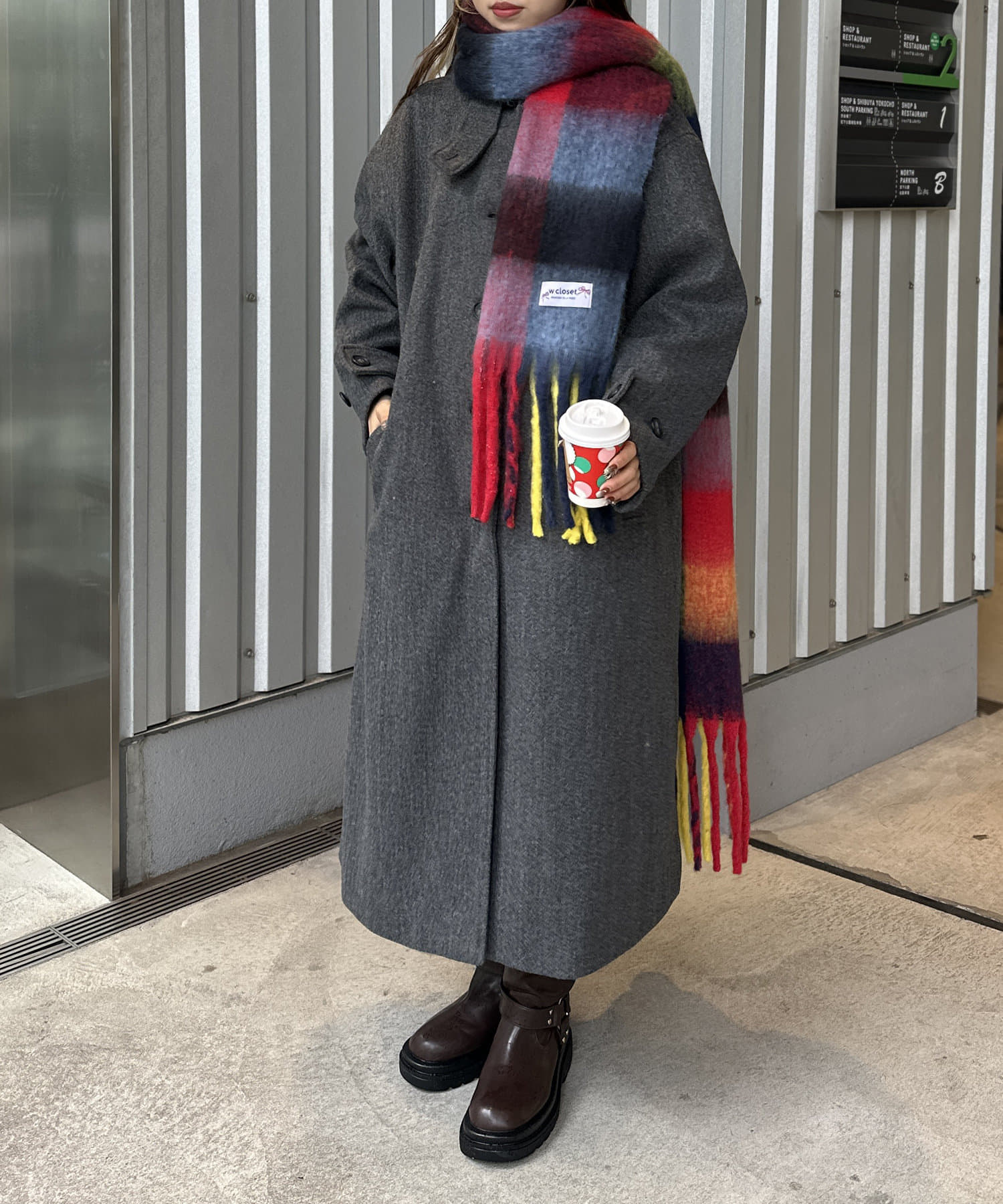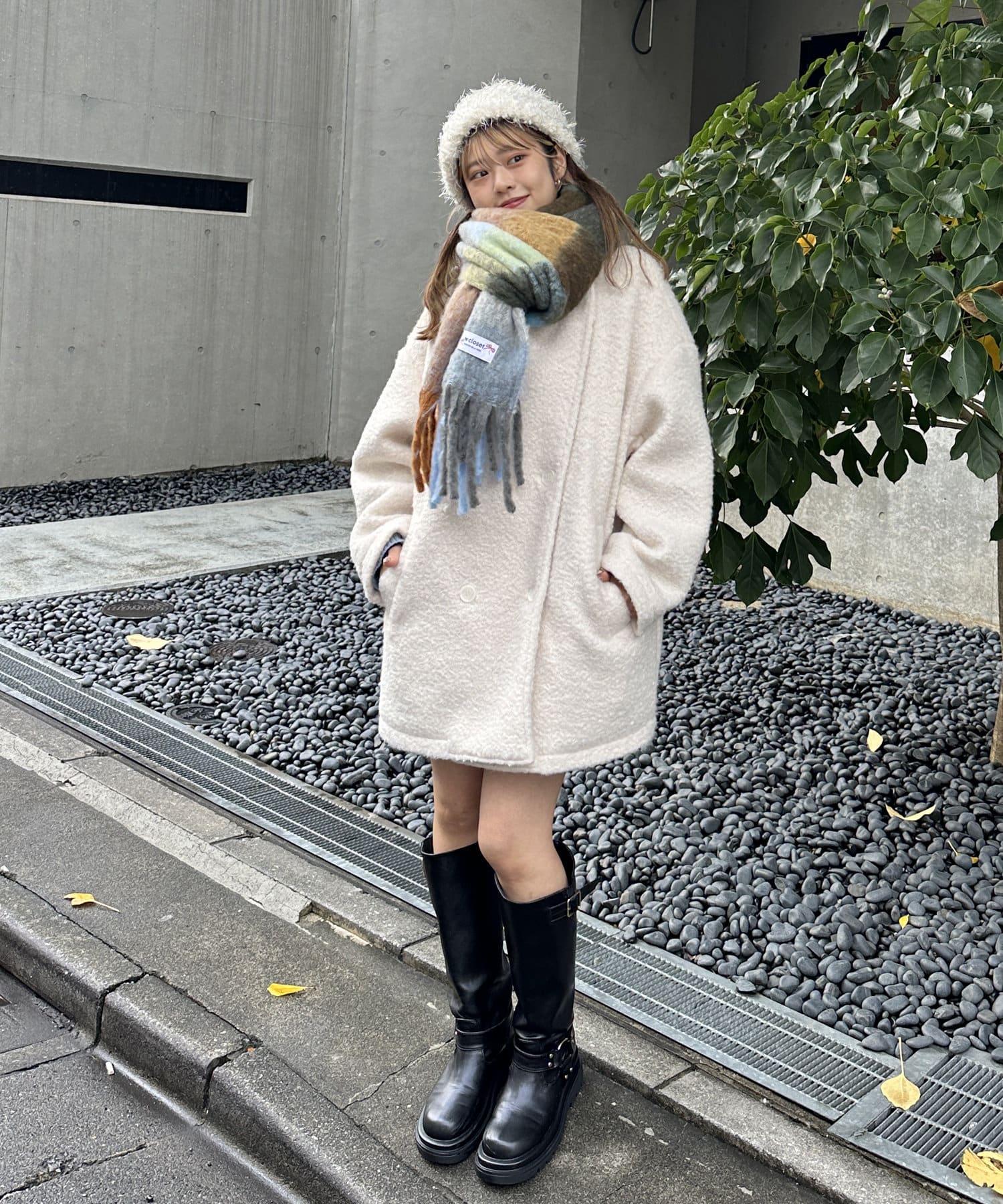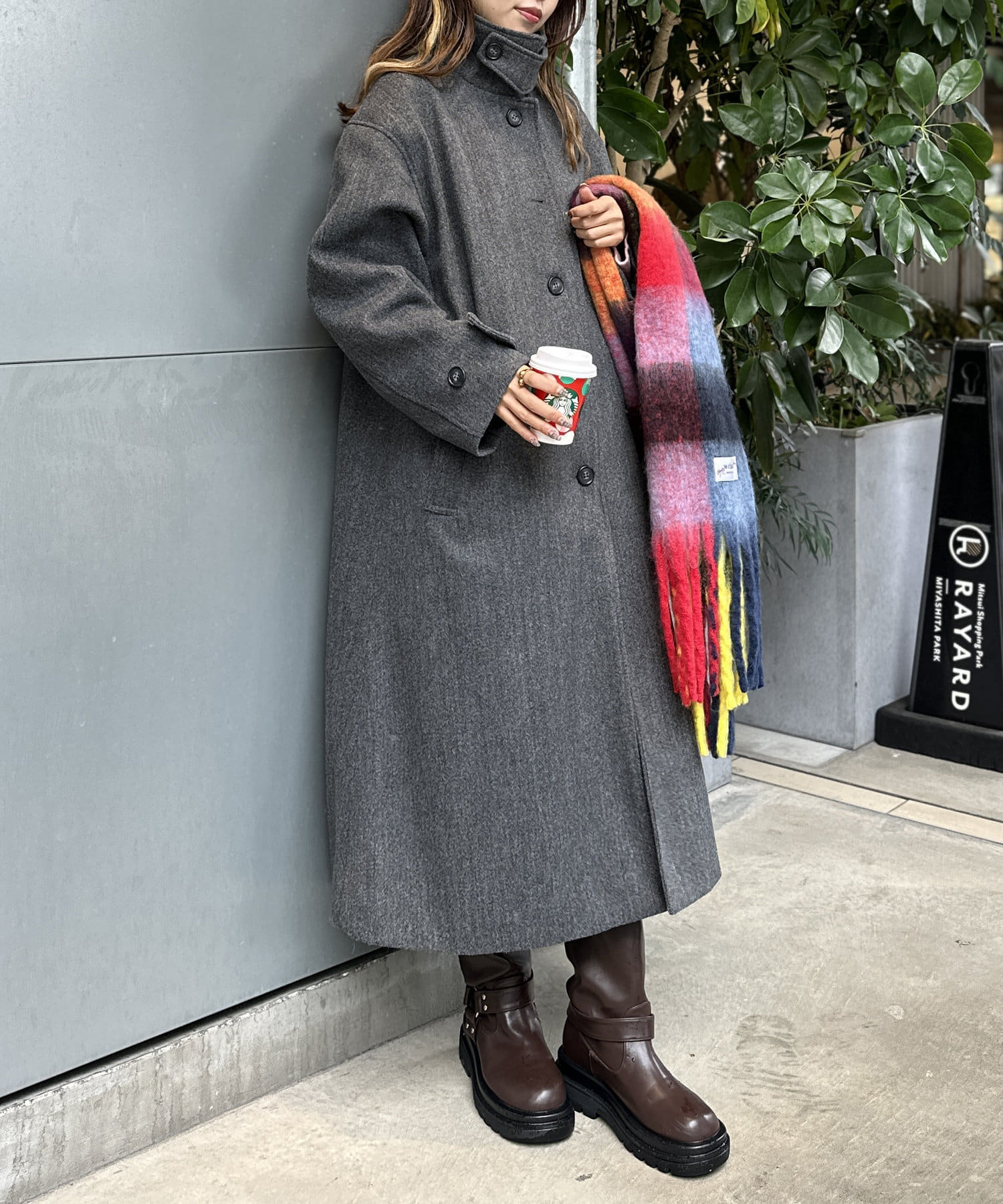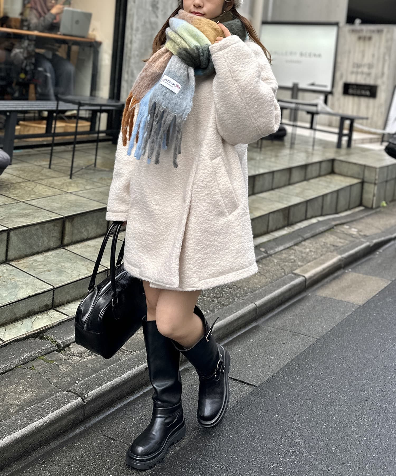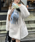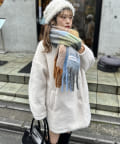 ・顔まわりを覆うボリュームのあるマフラーは小顔効果も◎