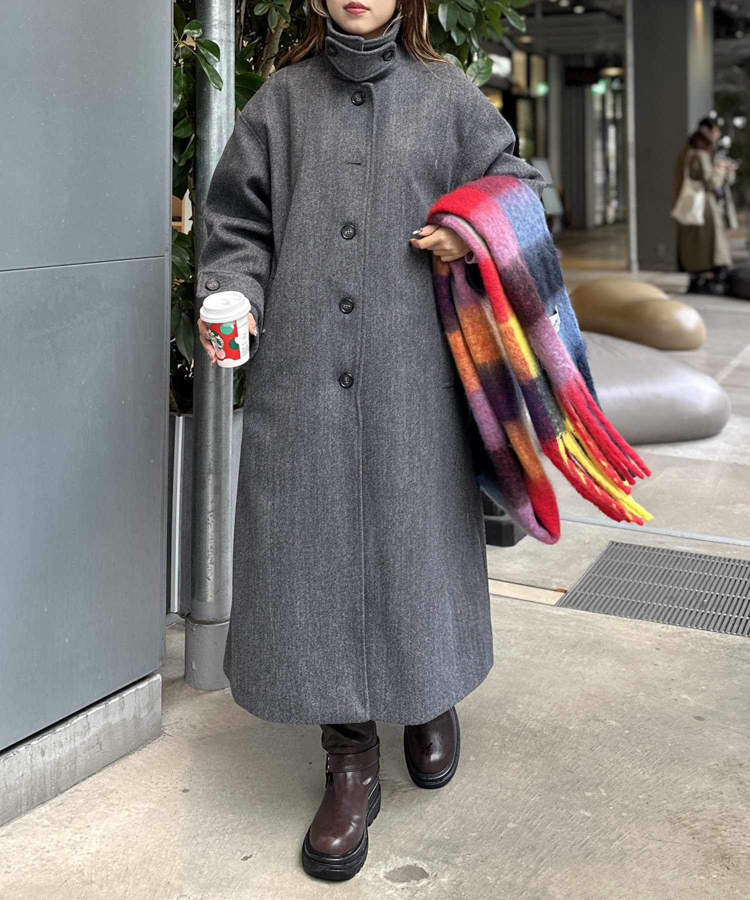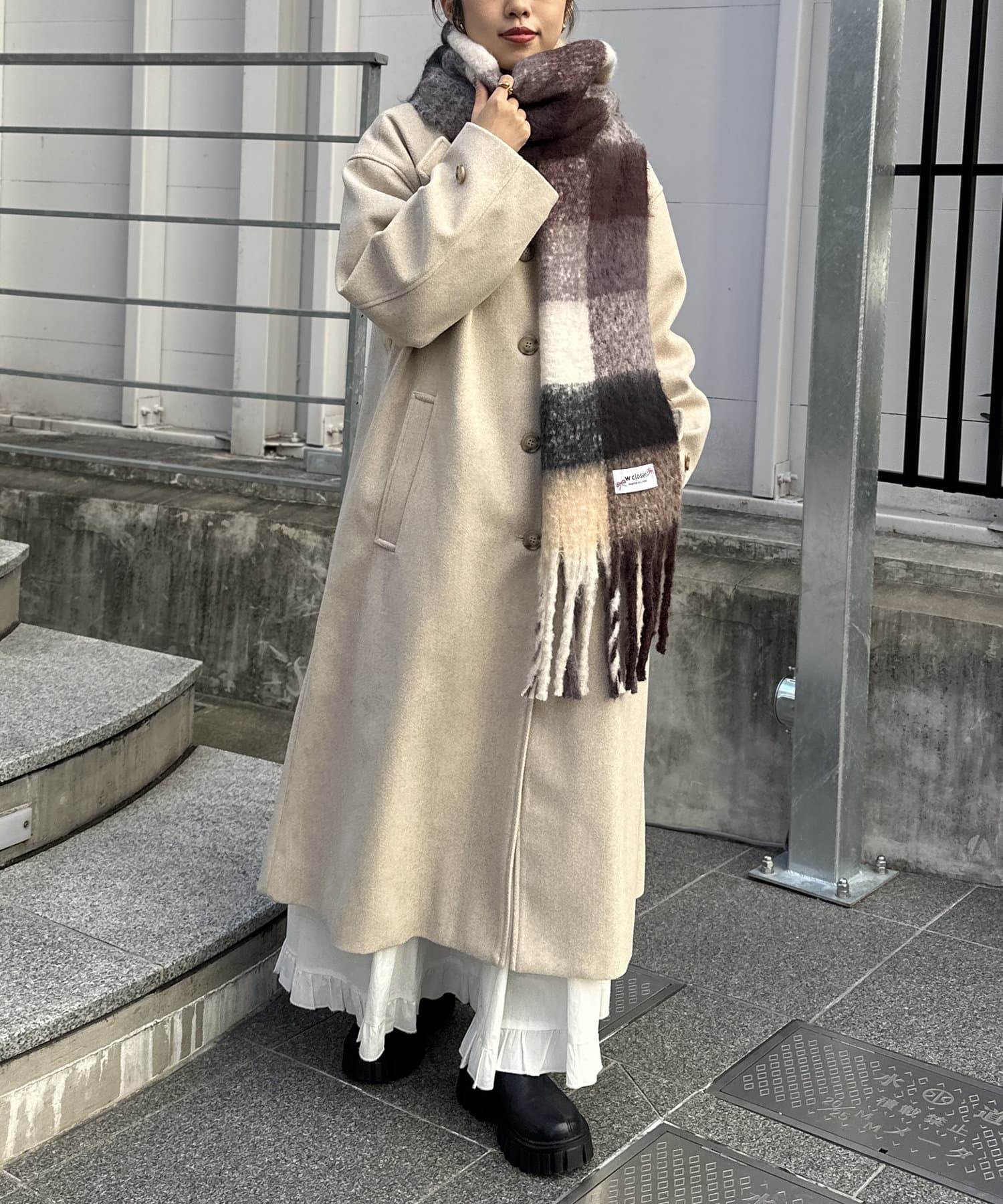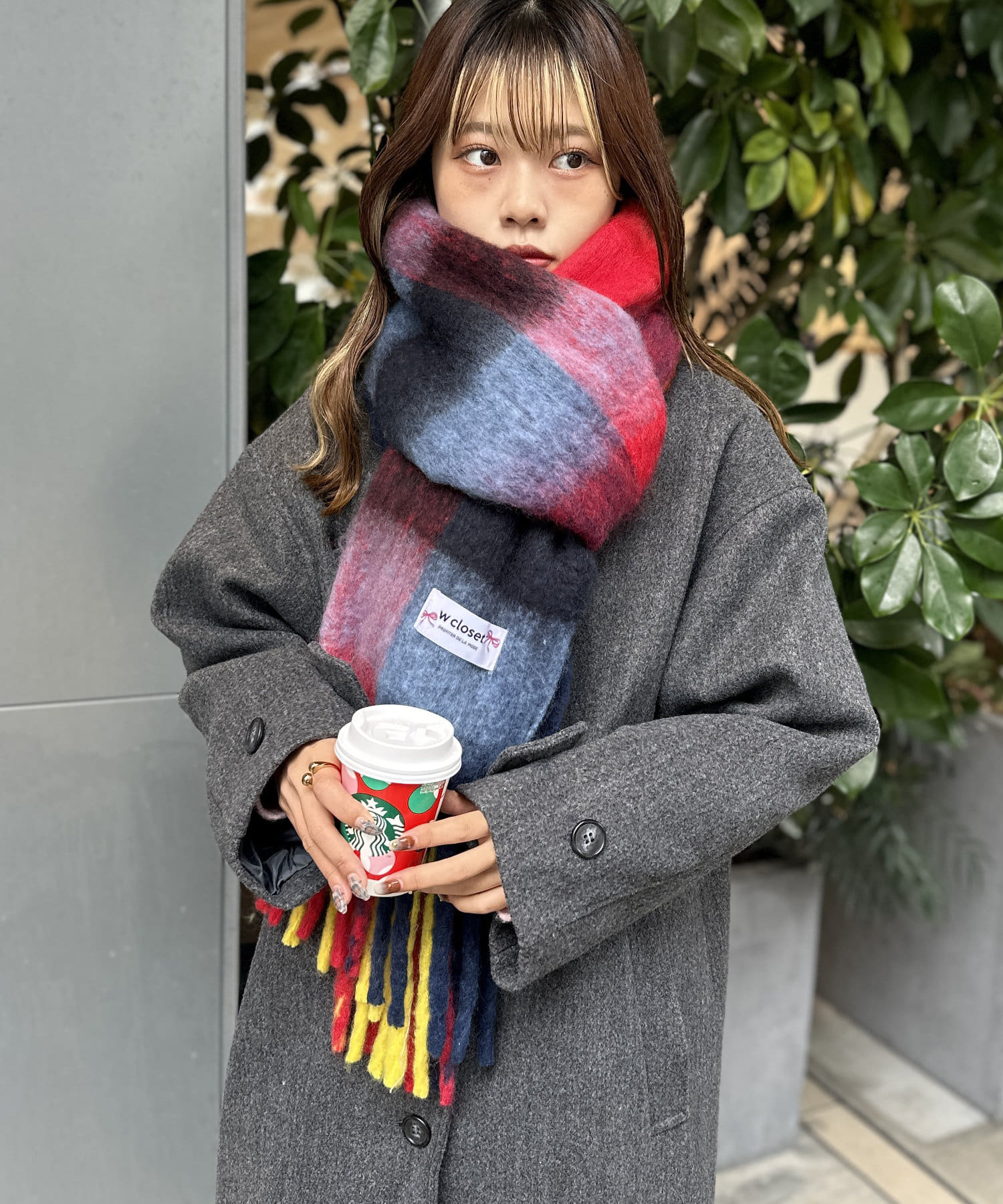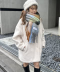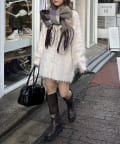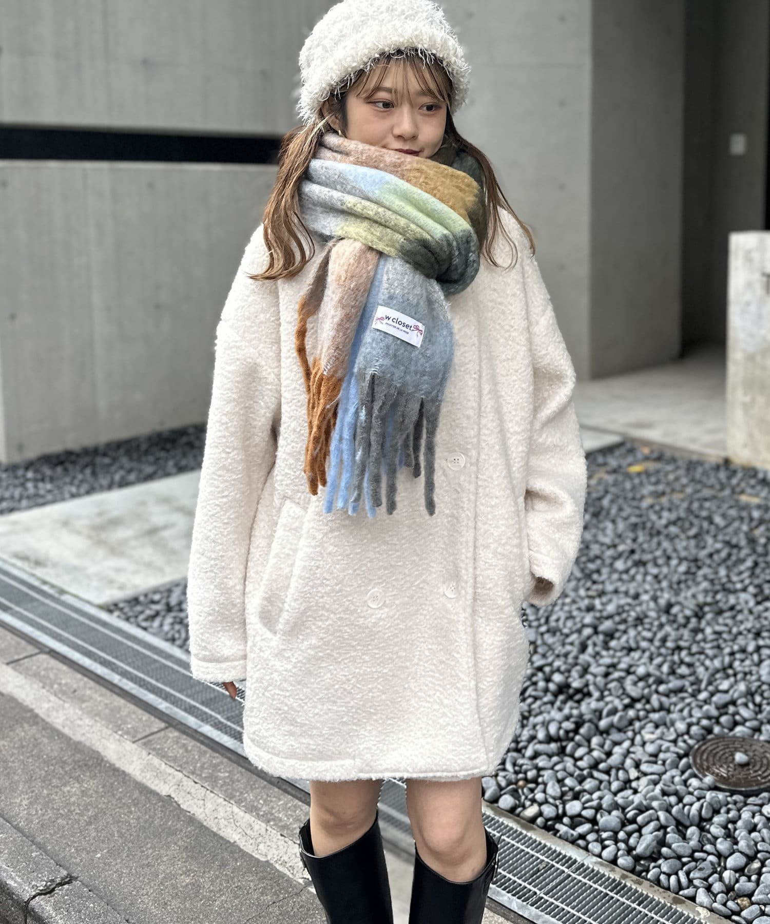 ・顔まわりを覆うボリュームのあるマフラーは小顔効果も◎